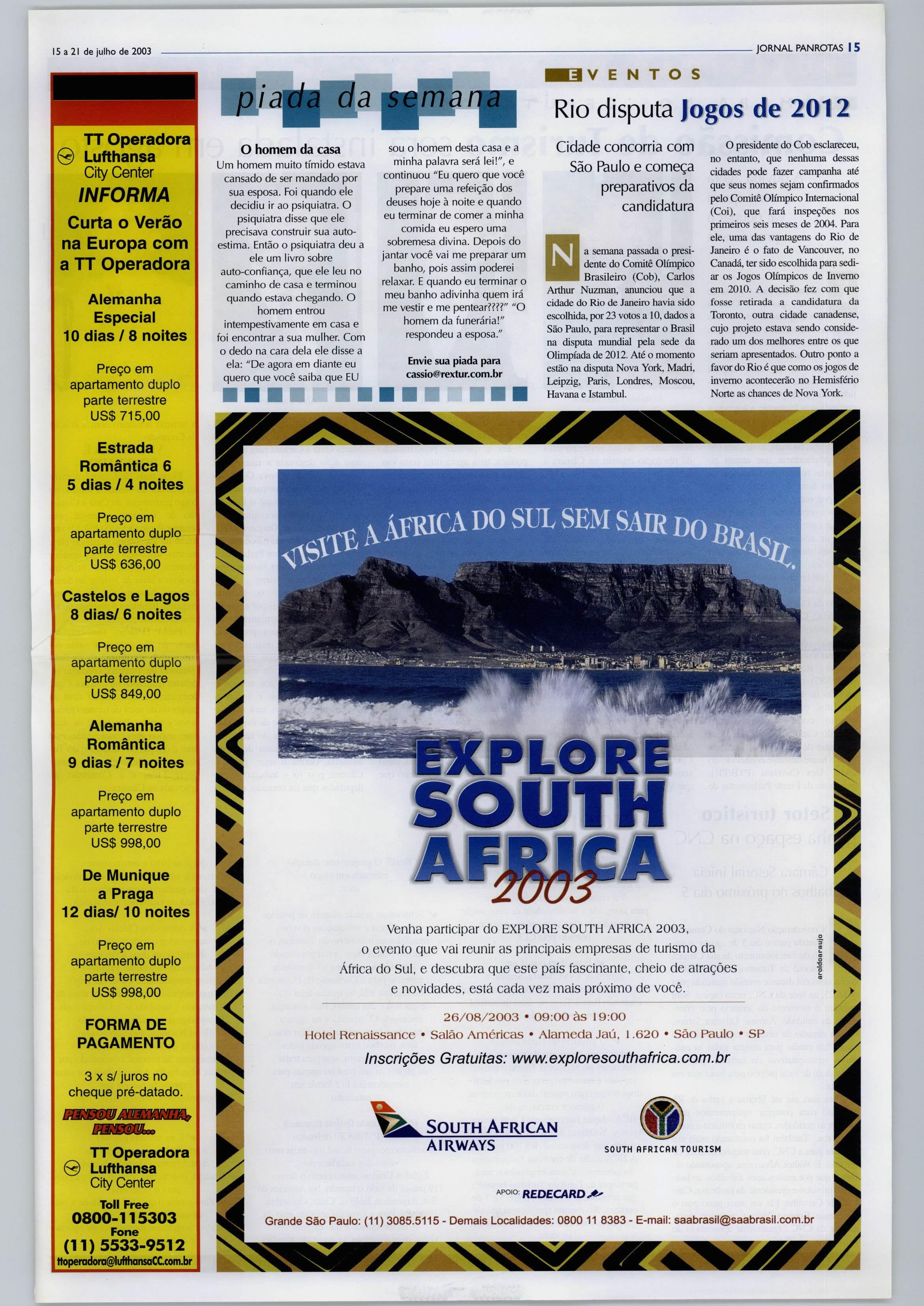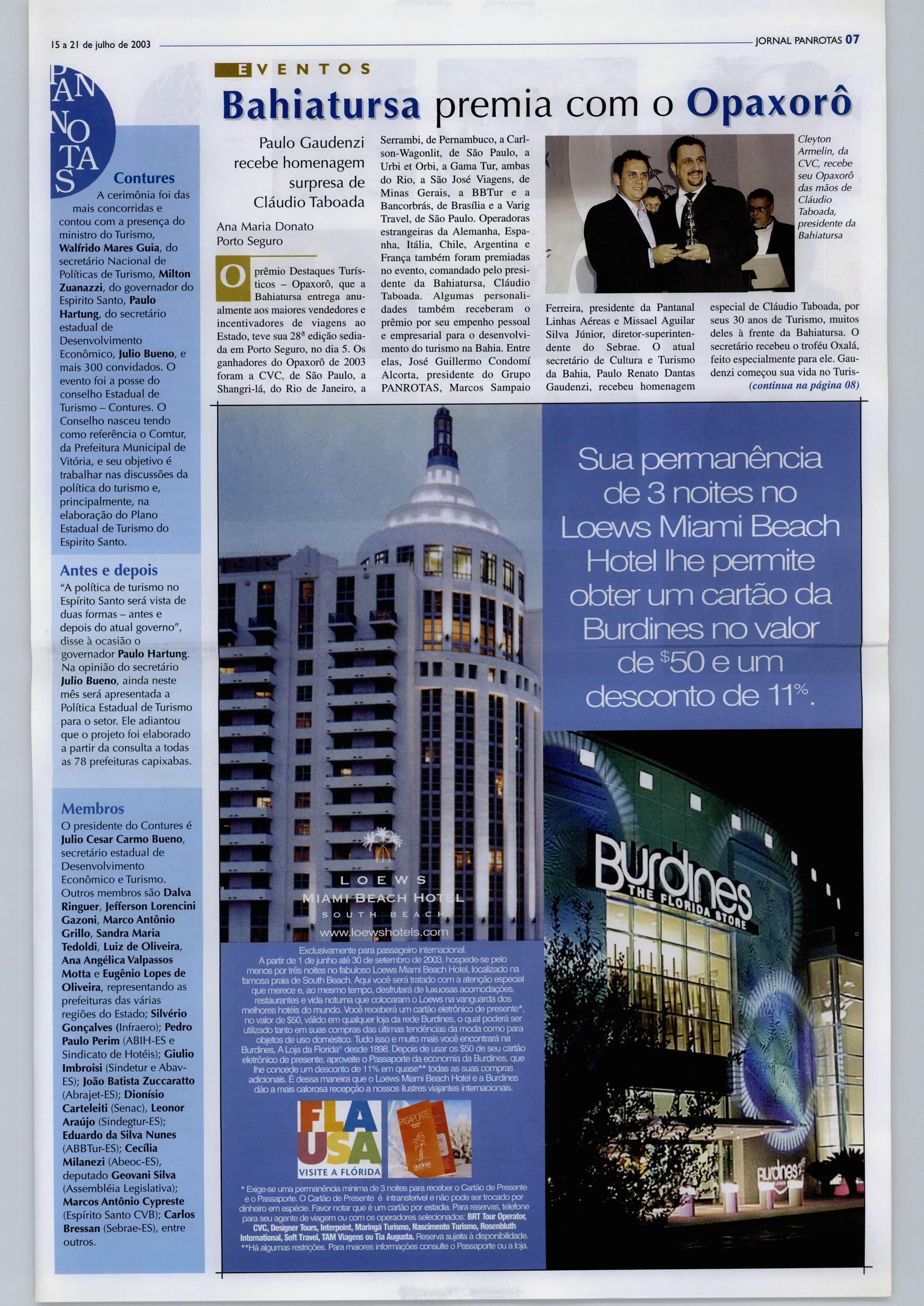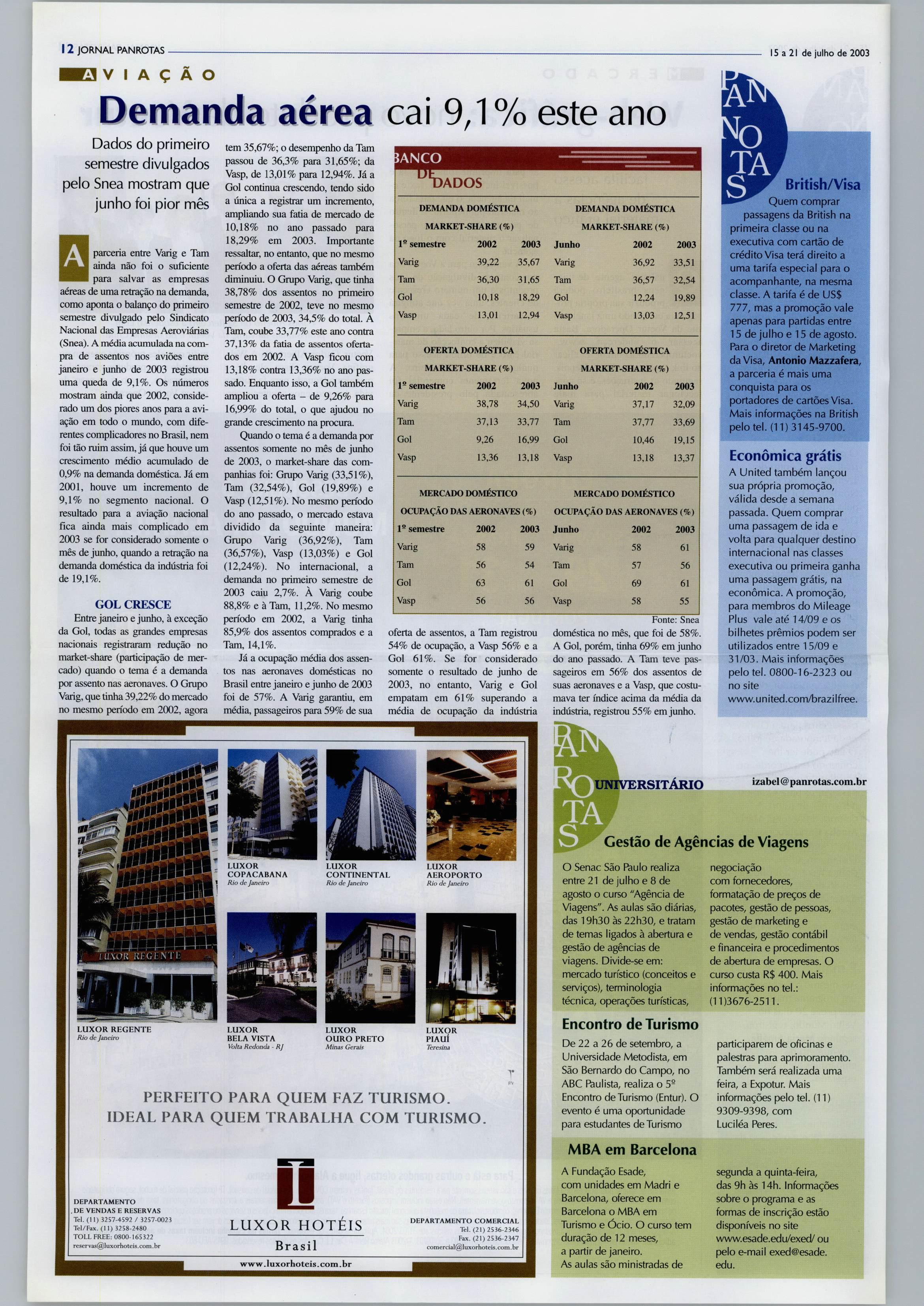 de julho a 26 de setembro de 2003" i -jTgiiTTMTirinTr^r'~~~''rirnnrwrTTiMMM izabel @panrotas.coiii.br JORNAL PANROTAS 19 A- G - I N' D- A