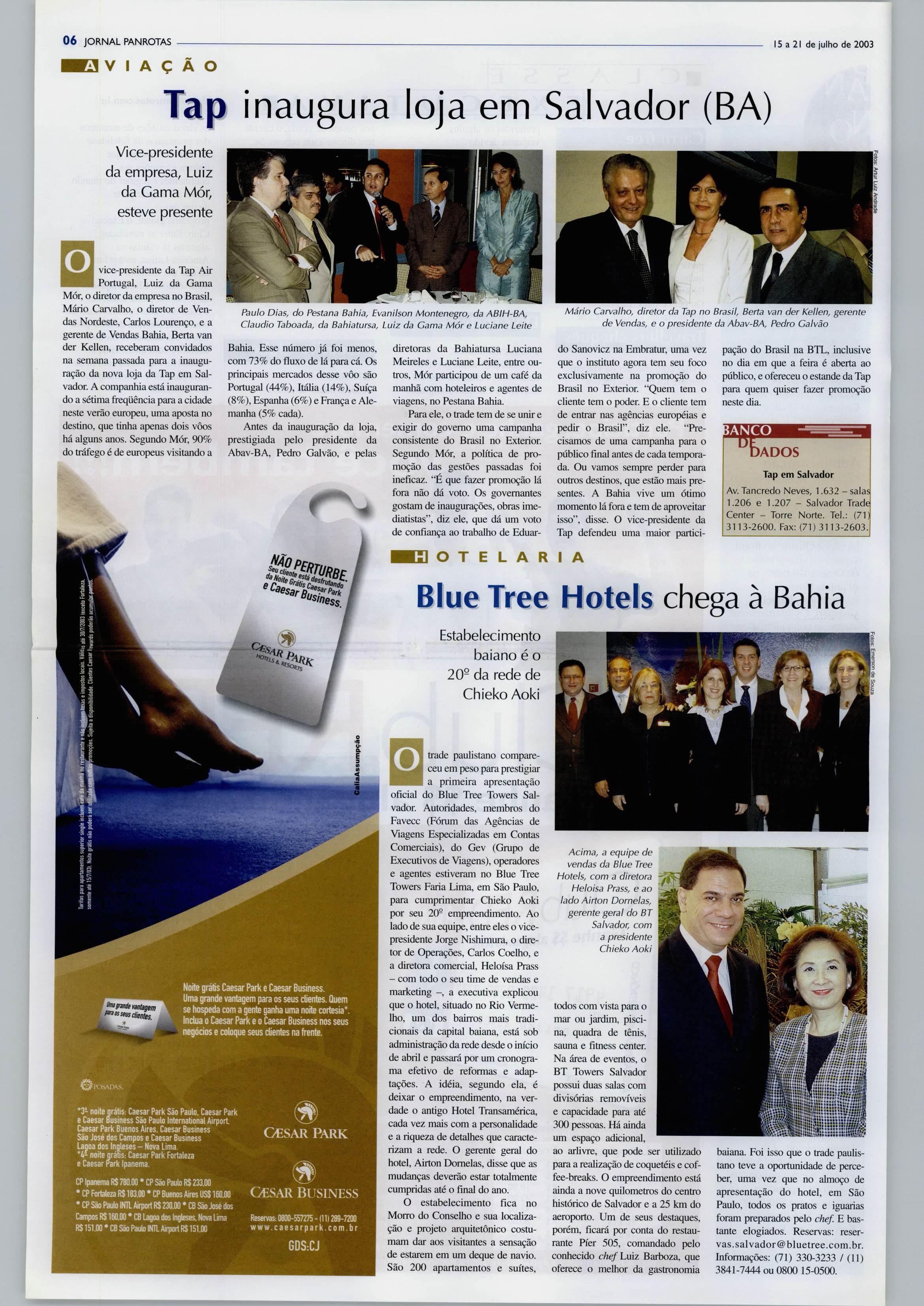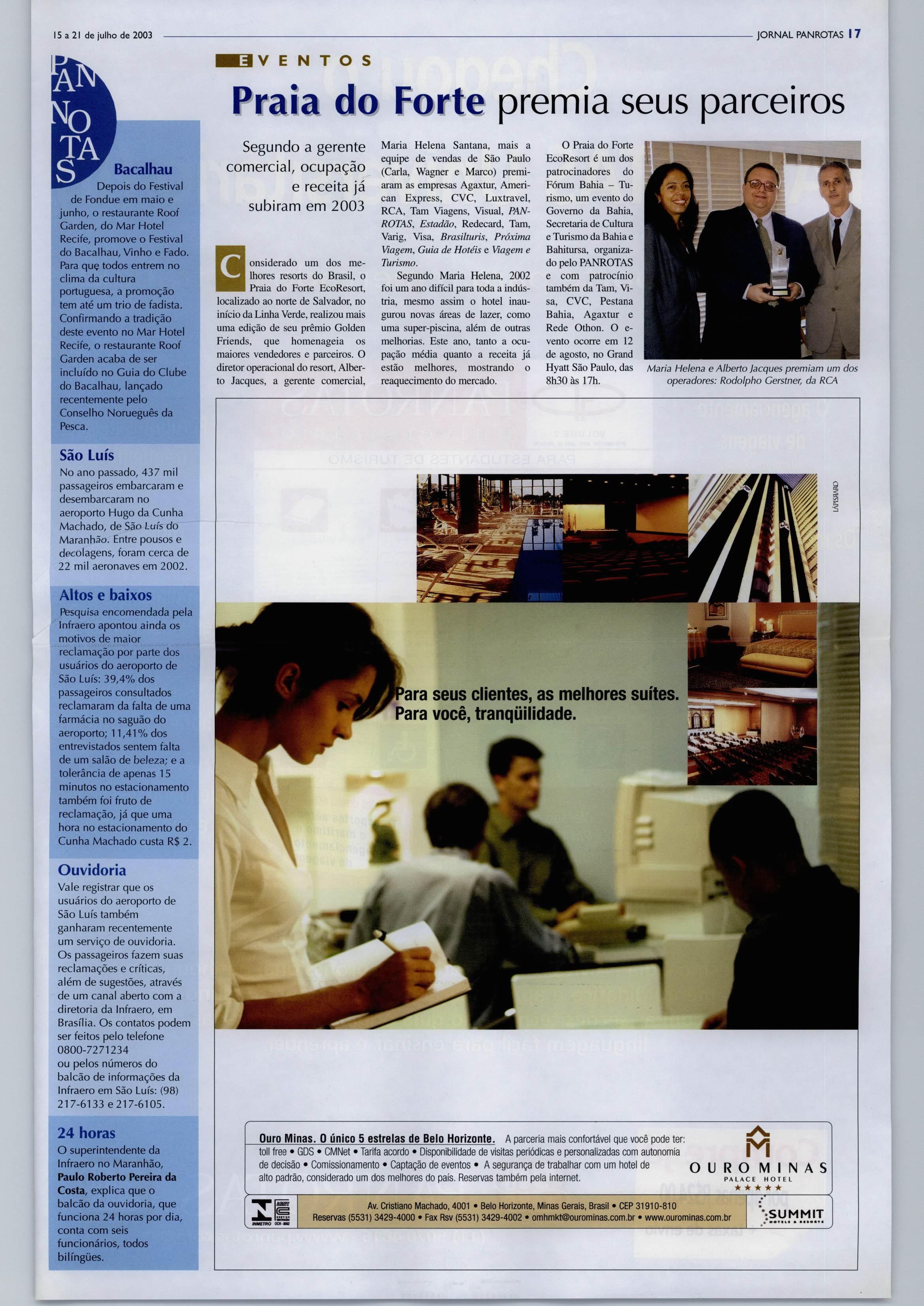 GRUPO PANROTAS PRESIDENTE |osé Guiliermo CondomíAlcorta DIRETOR COMERCIAI Luiz Sales ()uiz@panrotas.com.br) DIRETORA DE MARKETING Ana Maria Donato (ana.donato@panrotas.com.br) ^ TA "«• tfPANROTAS Edltor-chefe - Artur Luiz Andrade (artur@panrotas.com.br) Subedítora- Miuia Izabel Reigada (izabel@panrotas.com.br) Reportagem - Marjori Sdiroedere Marianna Alcorta Colaixirndore.';: Brasília- Ritamaria lareira; (ritamariapereira@uol.com.br) Nordeste - Antonio Roberto Rodia: (arrocha@samnet.com.br) í^raná -Dayse Regina Eerrnia: (day5eferTeira@uol-com.br) Riode Janeiro - Online Comunicação: (onlinecomunicacao@terra.com.br) Diagramaçâo-Juarez Estevan e MariadaPenhaCampregher Coordenação-AliceI.deRezende (alice@panrotas.com.br) GerentedeProdução-Newtondos Santos (newton@panrotas.com.br) Dí^rtamento comercia! AntonioJorgeFilho (jot^e@panrotas. com.br), )onil Muchon (jonil@panrofâs. com.br), Luiz Carlos Borges (Iborges® panrotas.com.br), Wilson Roldan (wroidan® panrotas.com.br) DarleneMello,gerente 1^ <dariene@panrotas.com.br) FALE CONOSCO Matriz-Av. Jabaquara, 1.761 -Sãol^ulo -CEP 04045-901. Tel. (11) 50704800 Filial-Av.Rio Branco 277,1.602 -RJCEP 20040-901. Tels. (21)2220-0249 ou 2532-2092. Impresso na Lis Gráfica e Editora Ltda.