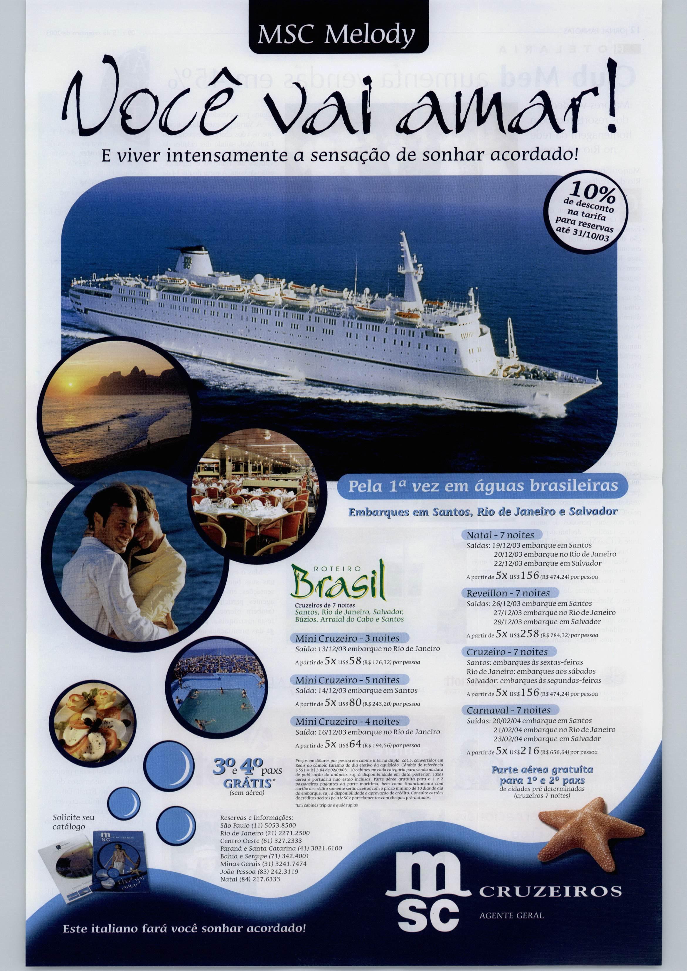 3 noites a partir de 5x R$ 78, (àvista R$ 390,)* itcaaem Piscina Coffee Shop Três Restaurantes CyberCafé Bares Cassino Free Shop sland Cruises Fique à vontade Club Med reúne 450 em Rio das Pedras a ilha esco Presidente da • • Abav-RJ pede apoio ao Galeão cr r«CJr*MLJl_m > mcmamtsAim AAcademiado Island Escape,com 4 professoreseuma programação fitnessespecialparavocê. \ Santos • Rio de Janeiro • Búzios - Ilhabela 1 Florianópolis-Porto Belo -Ilhéus • Salvador 'Vilor «fta (in USS 129. ttfmnl» M cniirlto le * noltn. t^ndo te Santos «m 16/02/2004. «jlsr tfmnti n uu9erie intemn 0. P. 0 (10 abincs 0tpoiilv<fe). Unib*0 referendai ót M/W de USS 1.00 itS 2.». Picços poi pcuoa em c9blK dupli, sujeitoJ sem prKb «tu. Nlo indui tom portulrin « «e swHo. L>94rB «jjeHos a dispanIbflMUde. Condlcòs de pagamento «ilidas MRiente cm chegue pré'ibtadQ. Finandamento sujeito a apiovpçio. Consulte seu asente de v<iqm pan informafíes detaUiadas e conAtirt geiaii da v<a^. ÍNT6RNATIONA1, REPRtStNTATIVE {") 3156-5600 info@sunsea.com.br www.1slandcruises.com.br r.