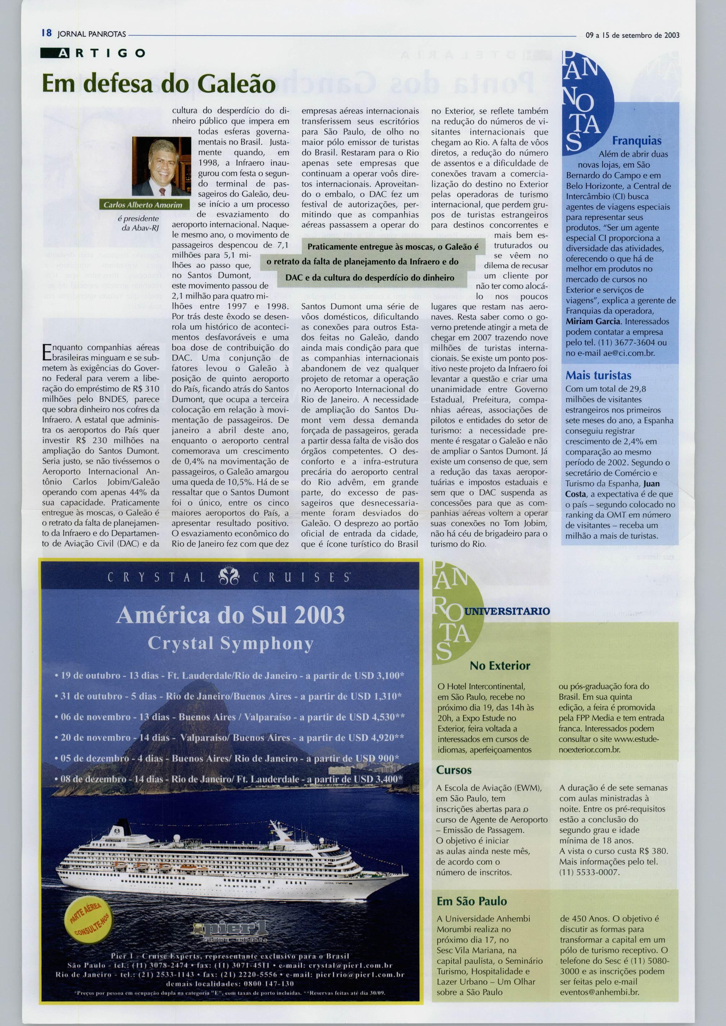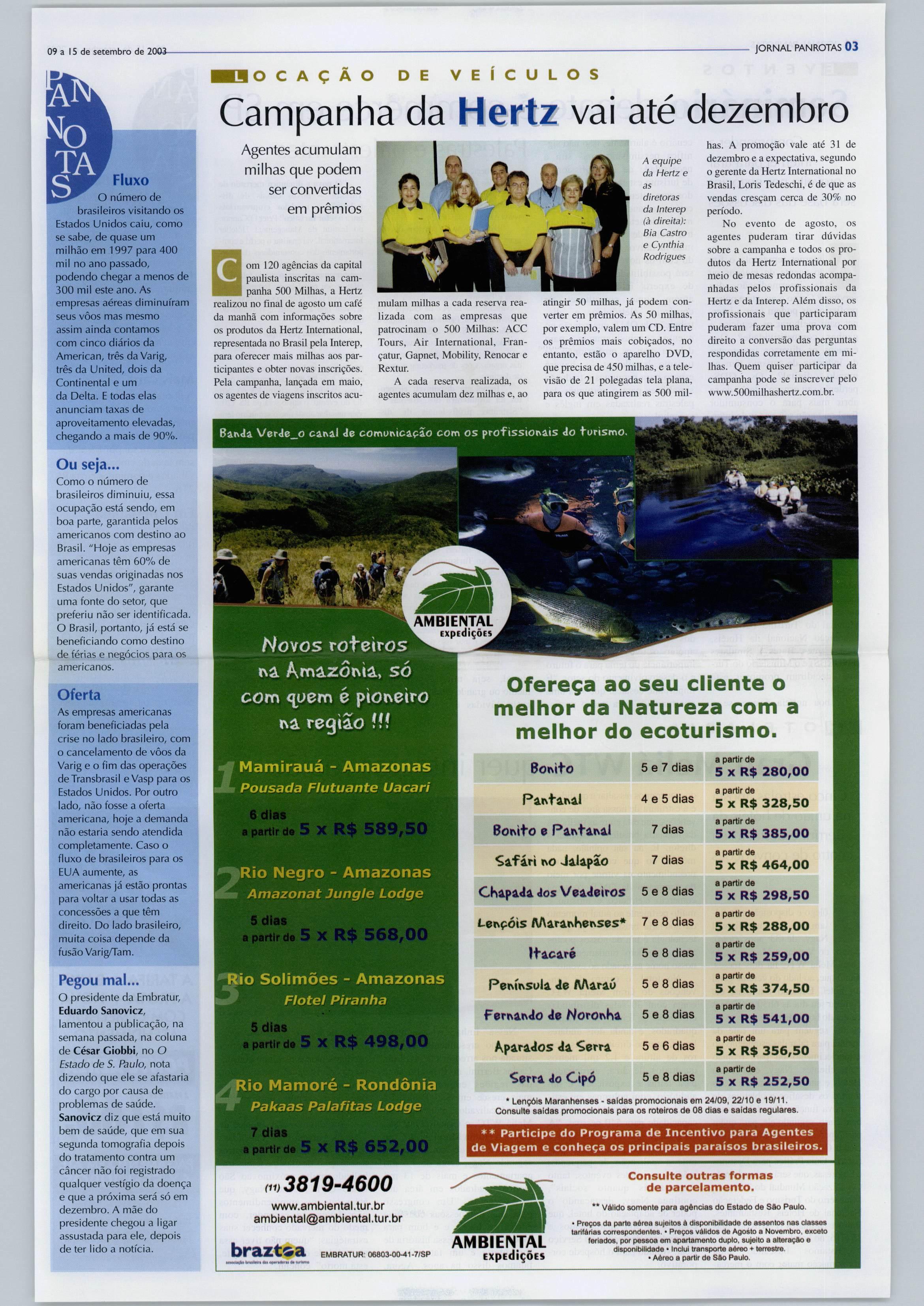 28 JORNAL PANROTAS ENTOS 09 a]5 de setembro de 2003