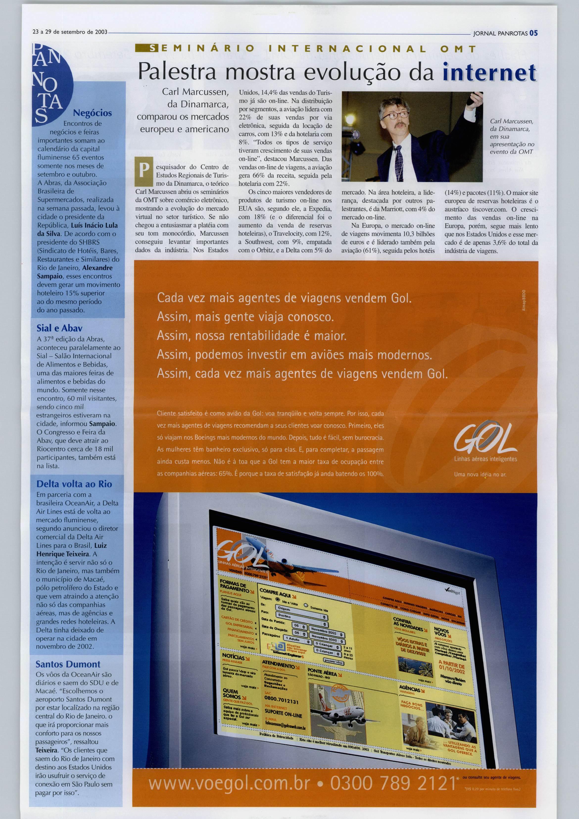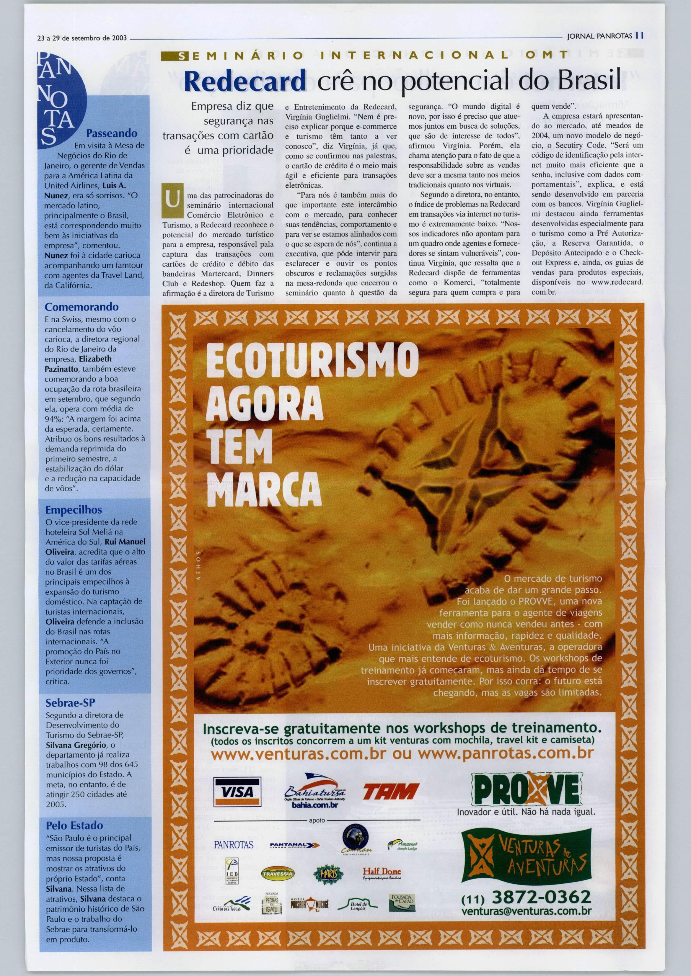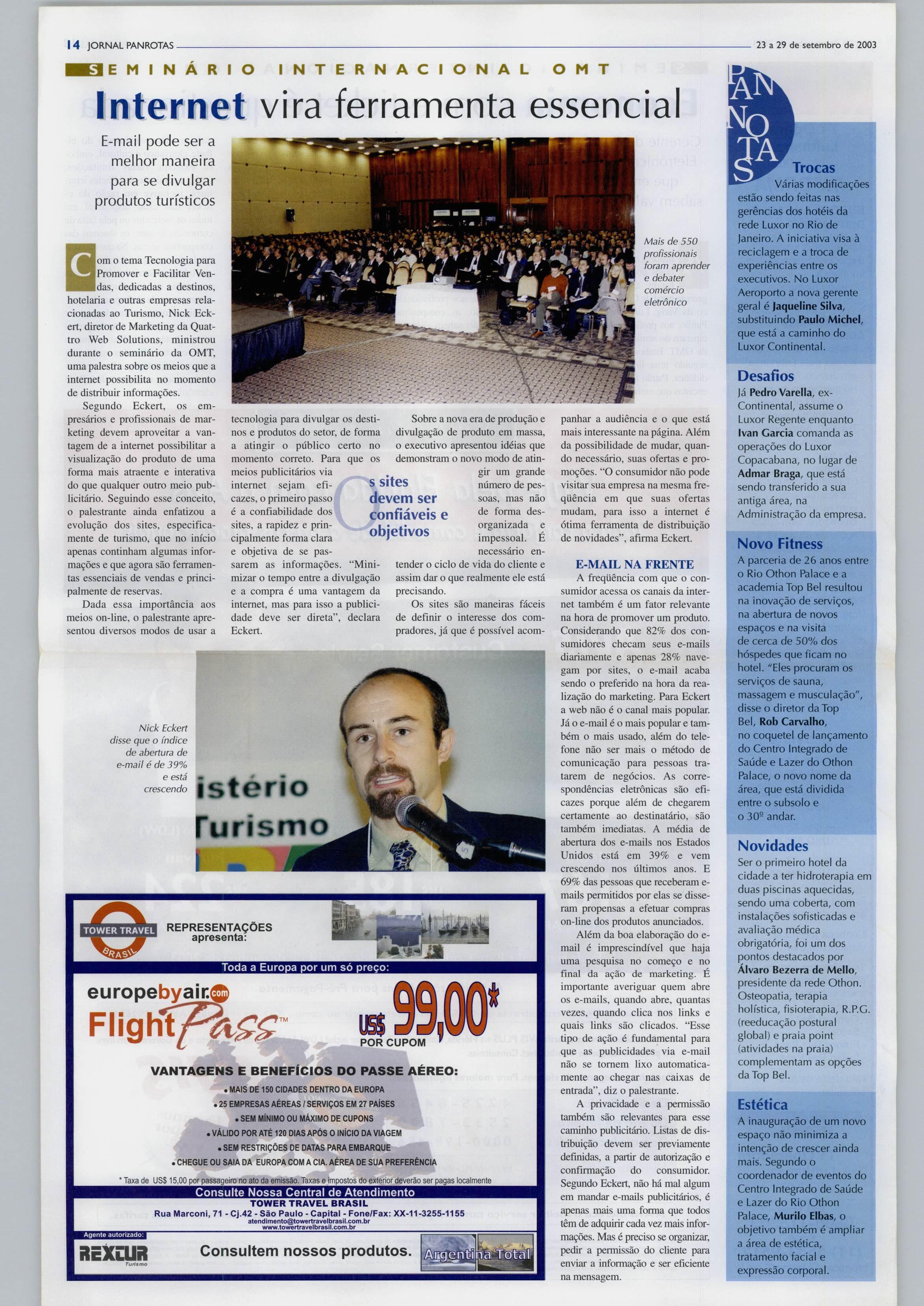 rismo,queocorreunosdias15e16 no Gran Meliá WTC São Paulo. O evento contou com patrocínio do Sebrae,Correios,Redecard, Varig, Embratur e Gran Meliá WTC e foi organizado pelo PANROTAS.
