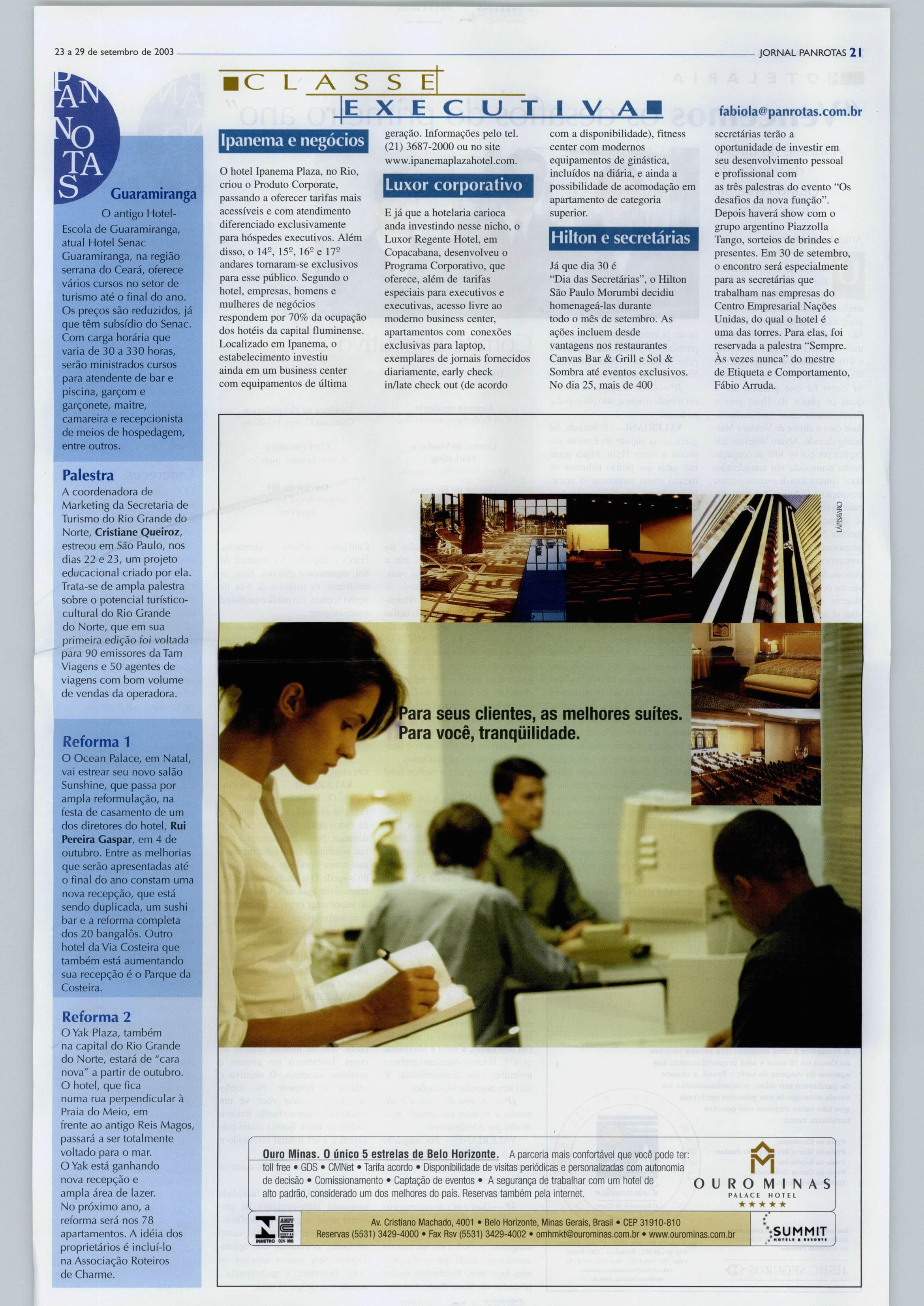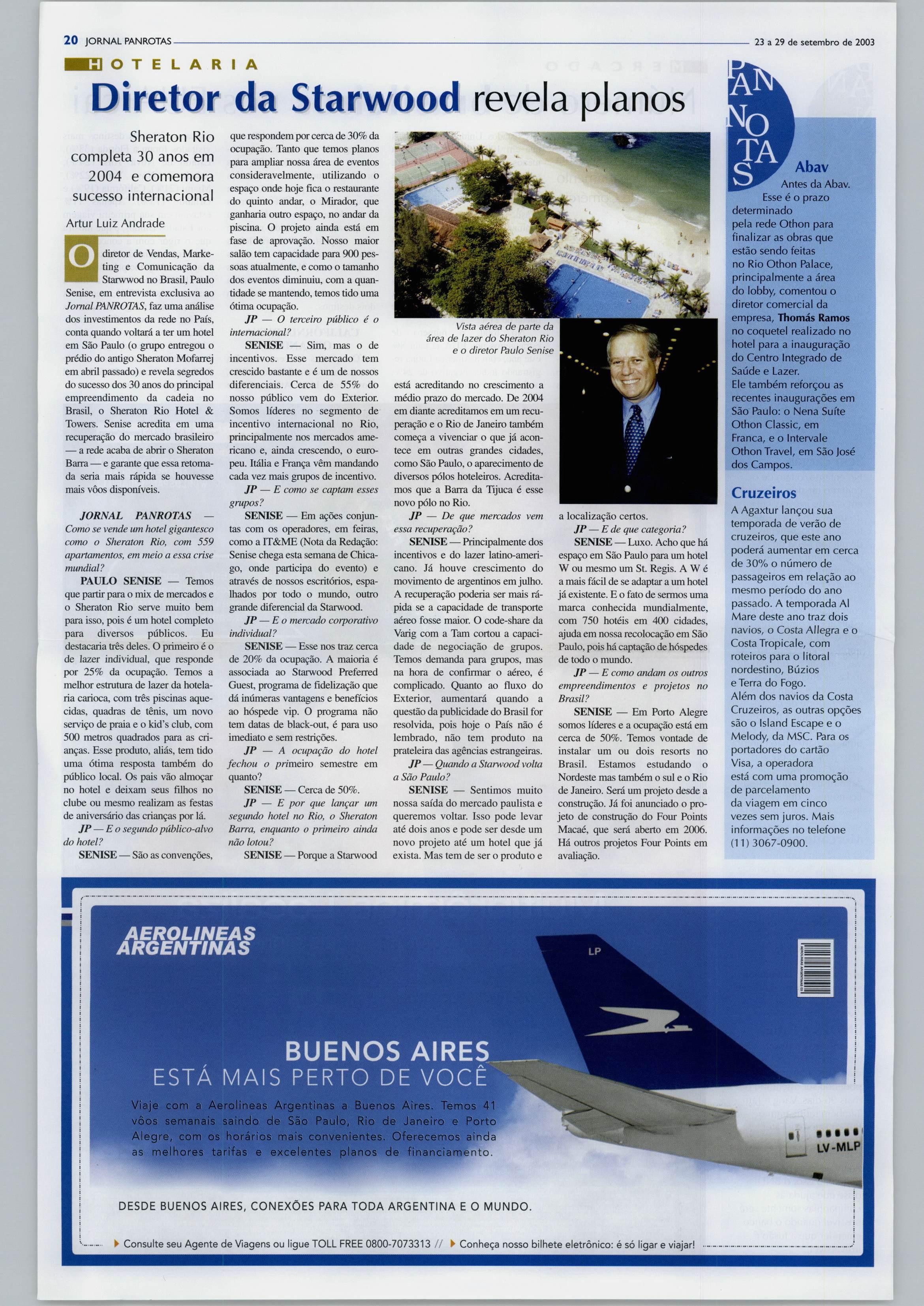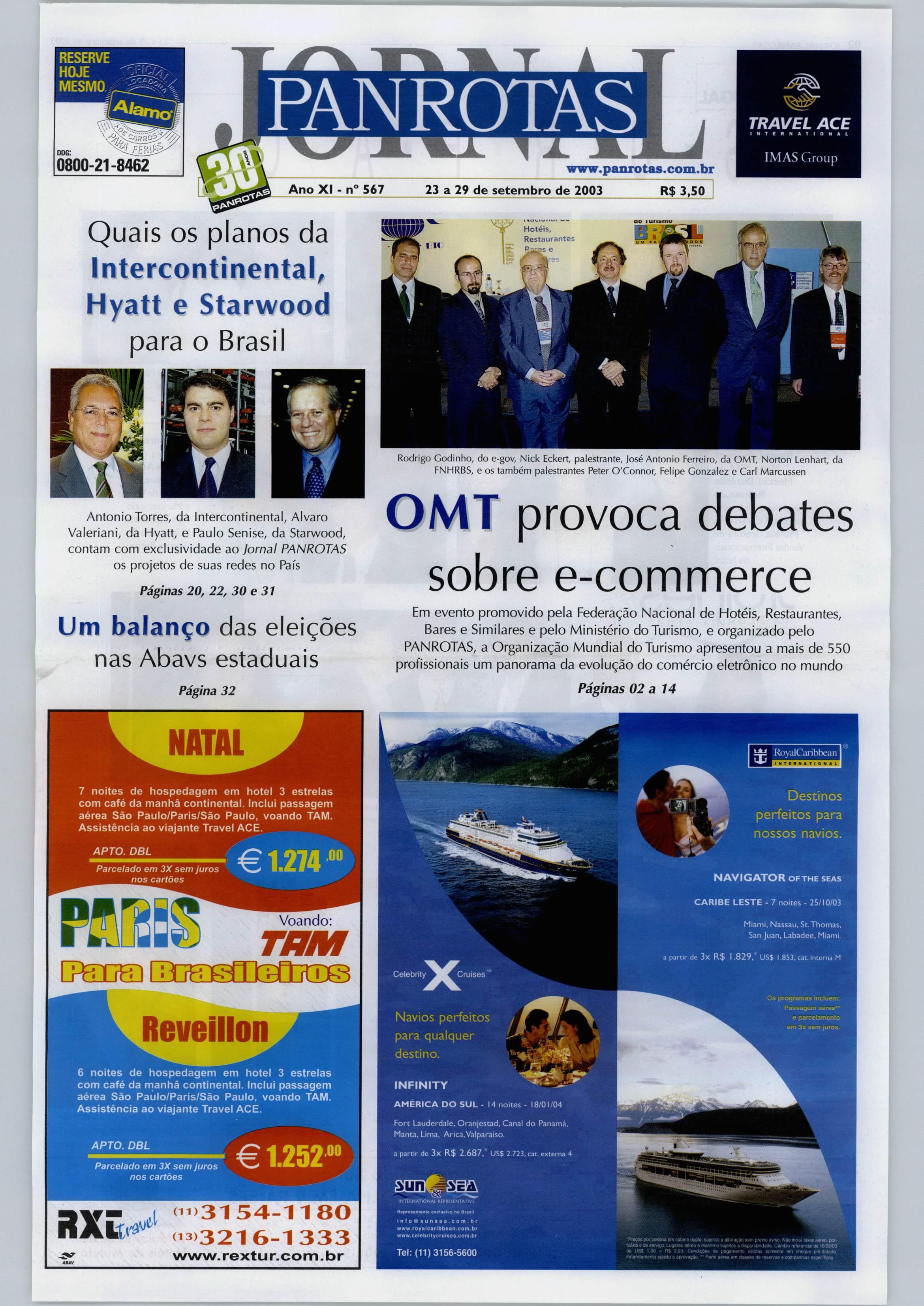 TÁ RESERVE HOJE MESMO PAN ROTAS TRAVEL ACE JftTCRNàTIONAl IMAS Group ddg: fí'Á\h 0800-21-8462 1 JT www.panrotas.com.br ^3 a29 de setembro de 2003 R$ 3^50 Ano XI - n"* 567 Quais os planos da Intercontinental^ Hyatt e Starwood para o Brasi l Antonio
