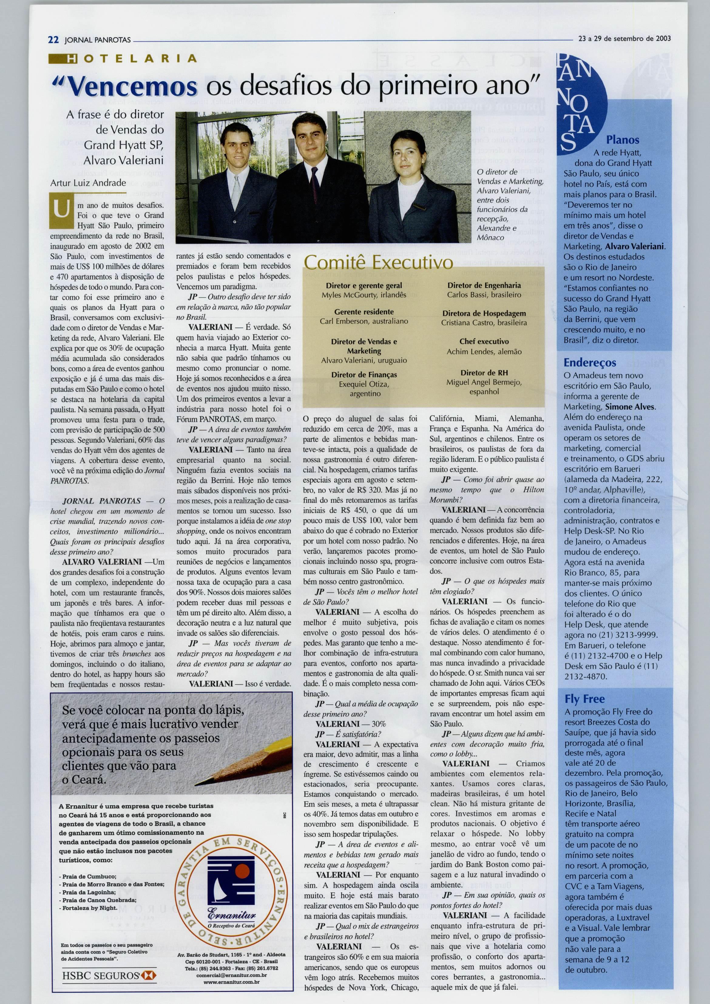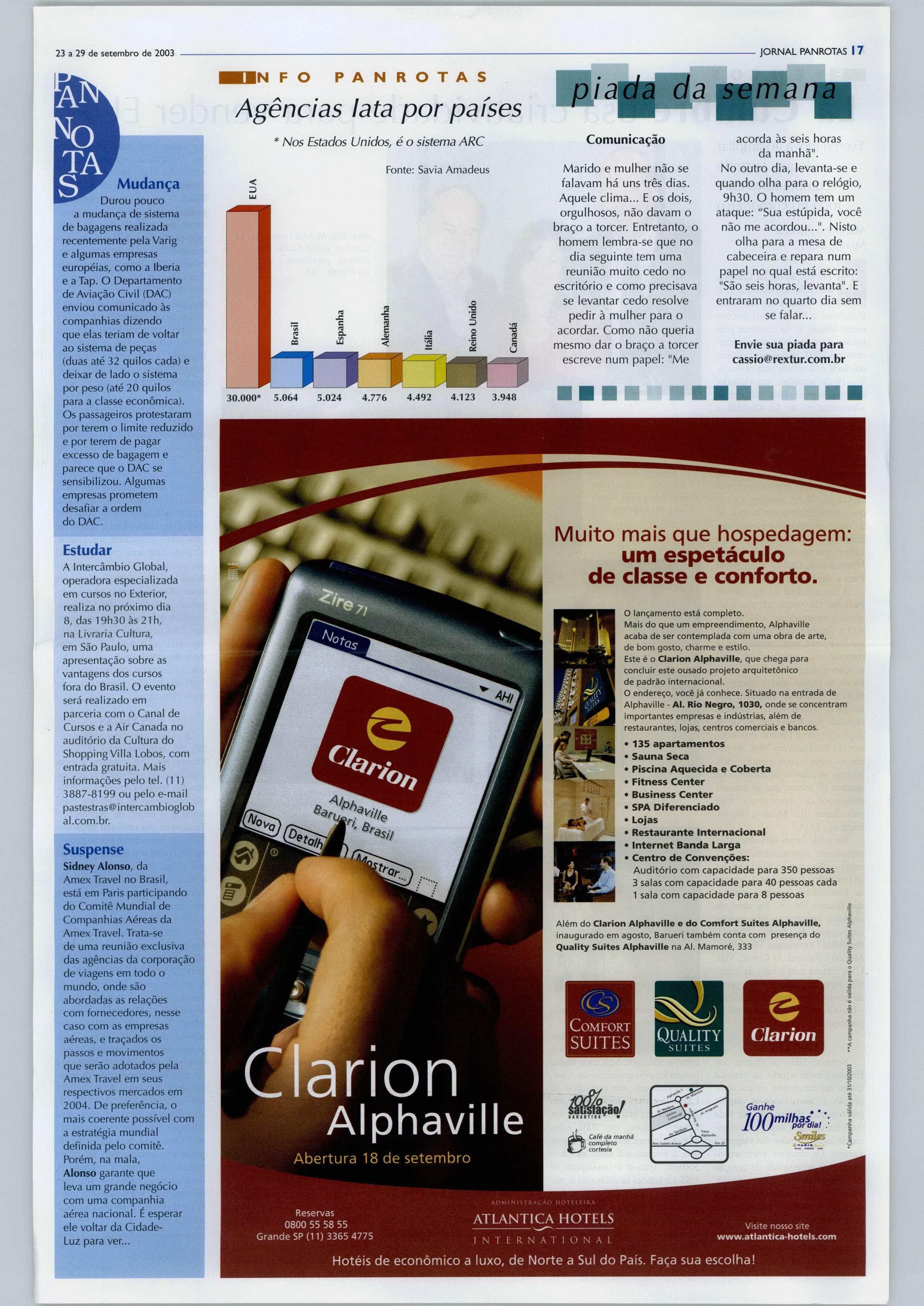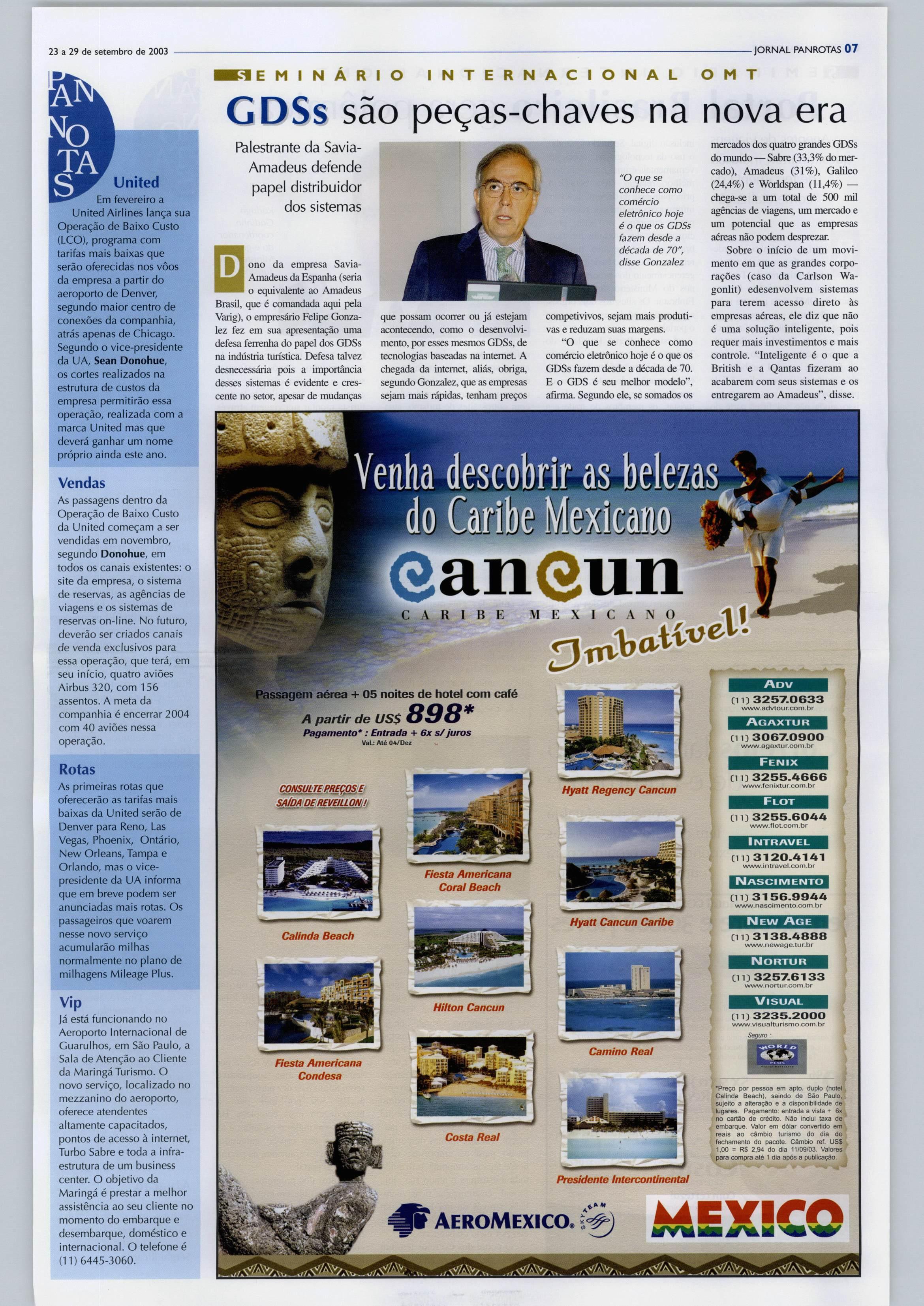 TÁ RESERVE HOJE MESMO PAN ROTAS TRAVEL ACE JftTCRNàTIONAl IMAS Group ddg: fí'Á\h 0800-21-8462 1 JT www.panrotas.com.br ^3 a29 de setembro de 2003 R$ 3^50 Ano XI - n"* 567 Quais os planos da Intercontinental^ Hyatt e Starwood para o Brasi l Antonio
