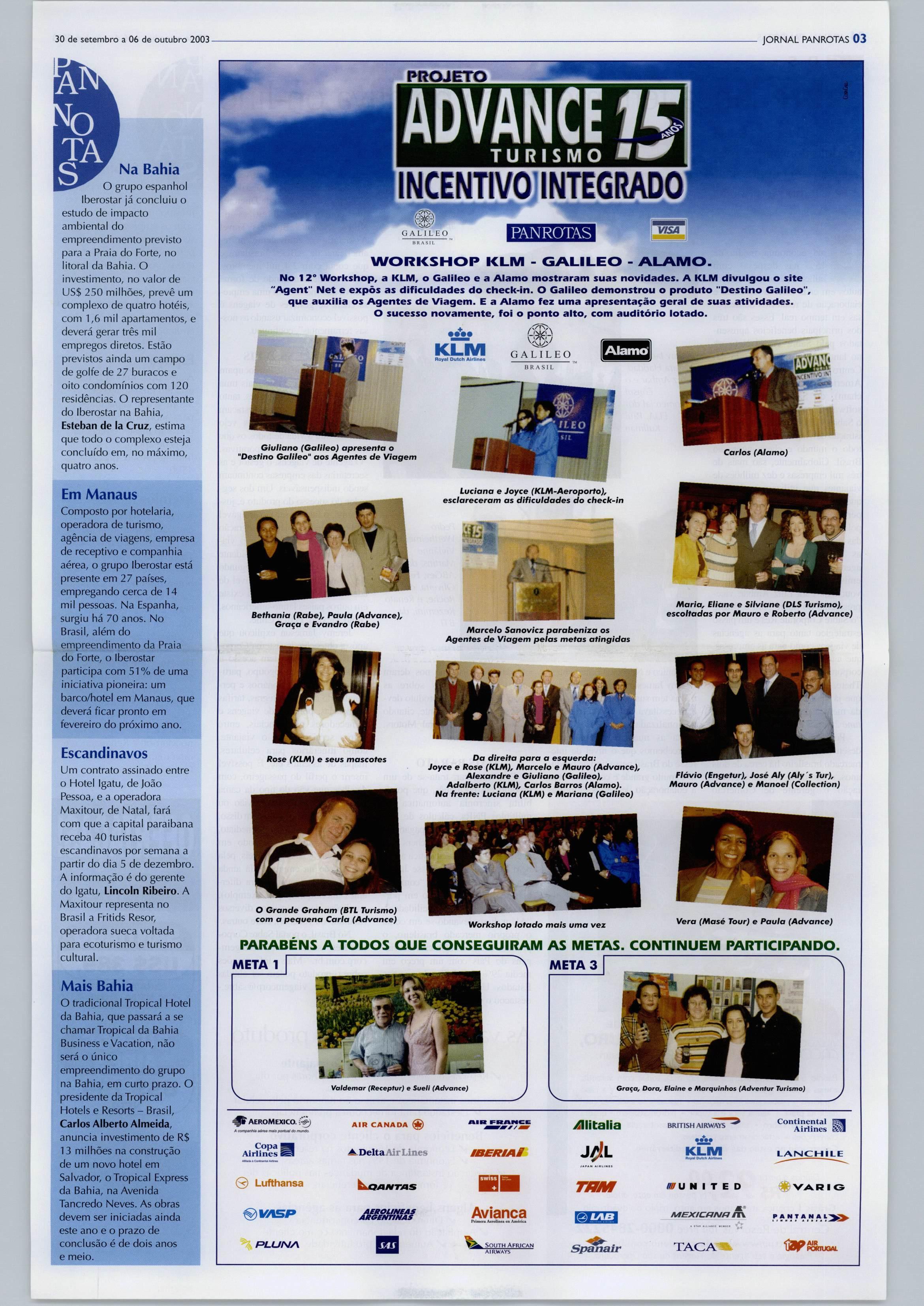 uma vez Carlos (Alamo) Maria, Eliane e Sllviane (DLS Turismo), escoltadas por Mauro e Roberto (Advance) FIávio (Engetur), José Aly (Aly 's Tur), Mauro (Advance) e Manoel (Collection) Vera (Masé Tour) e Paula (Advance) PARABÉNS A TODOS QUE CONSEGUIRAM AS METAS. CONTINUEM PARTICIPANDO. META 1 ^AEROMEXICa 4 certMnWv sAtm rnM ponM Copa' Airlines i 0) Lufthansa )V/ISR PLUNA Valdemar (keeeptur) e Sueli (Advance) AIR CANADA ^ A-Delta Air Lines ^OSAiVTMS ÊBERiAã Avíanca SOUTH AFRICAN AIRWAYS META 3 Grafo, Dora, Elaine e Marqulnhos (Adventur Turismo) /Ilitalia J^L TOM Spanair BRfnSH AIRWAYS KLM muN ITED MEXtcaNa /IV TACA%í Continental Airiines LANCHILE ^ VA.RIG PANTANAL' lap AIB PORIUQM.