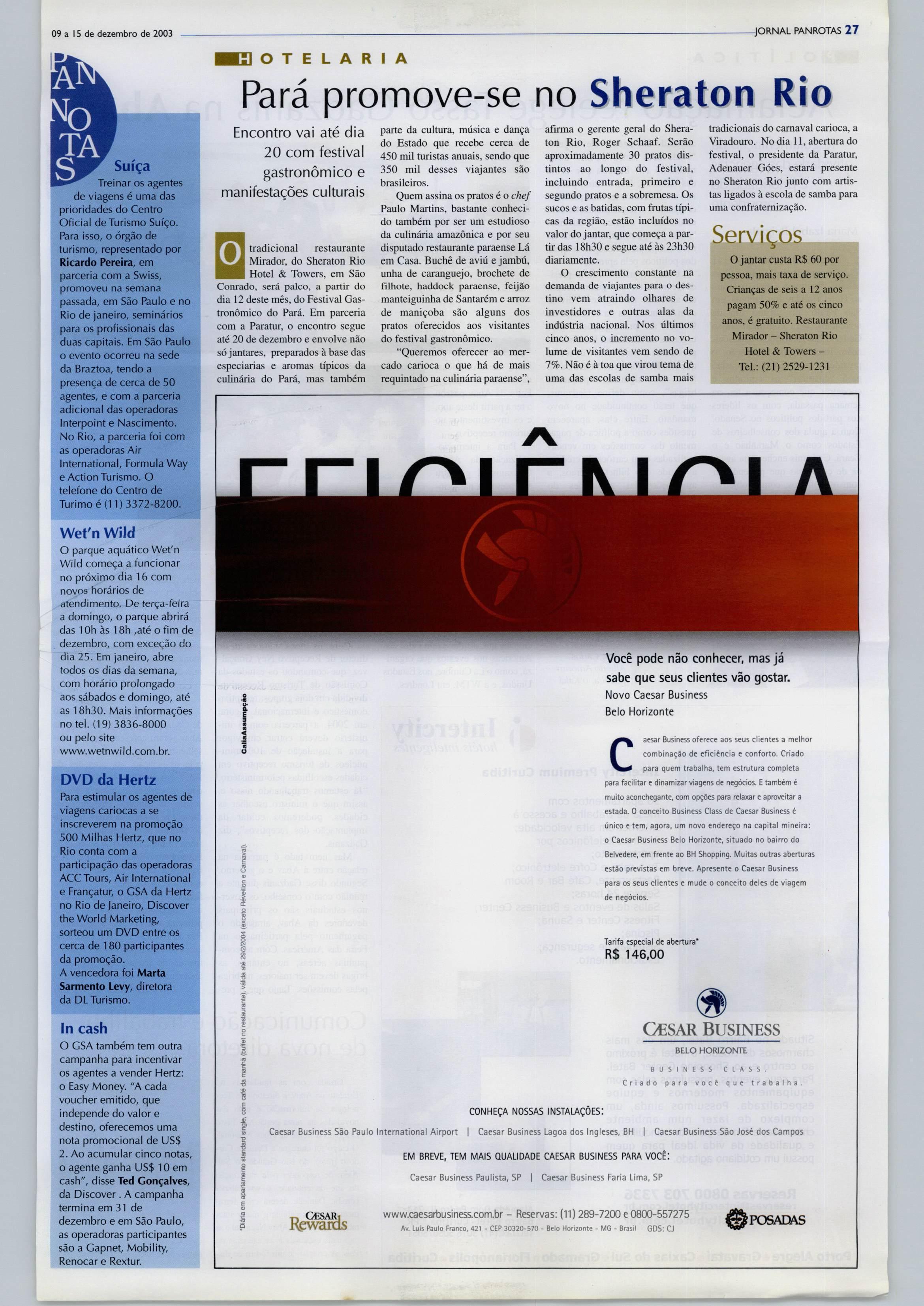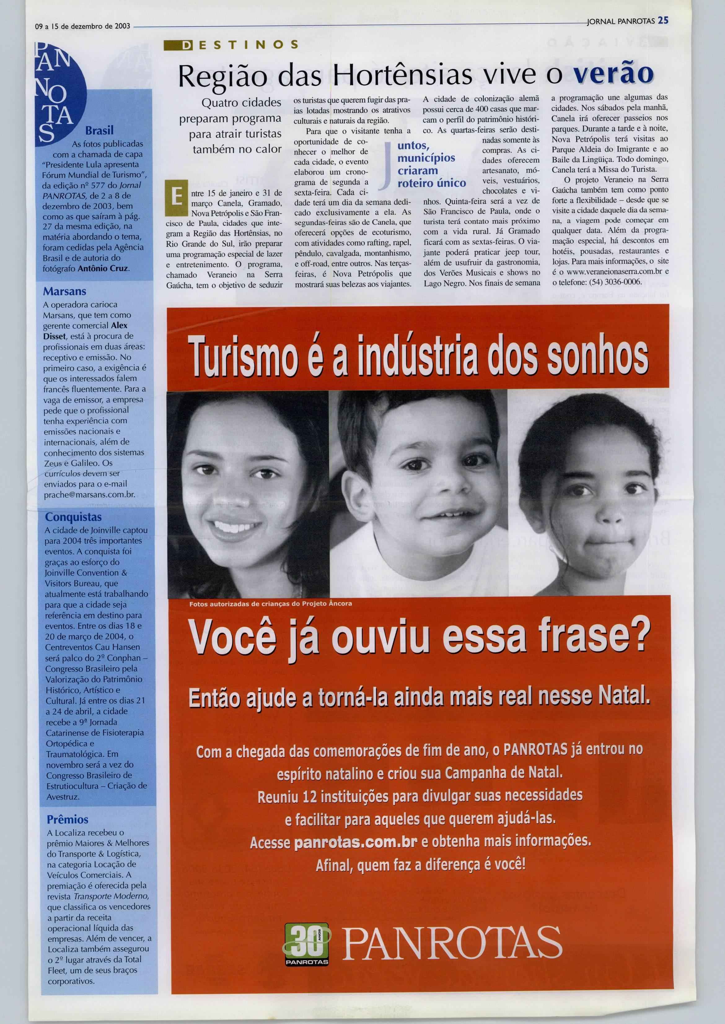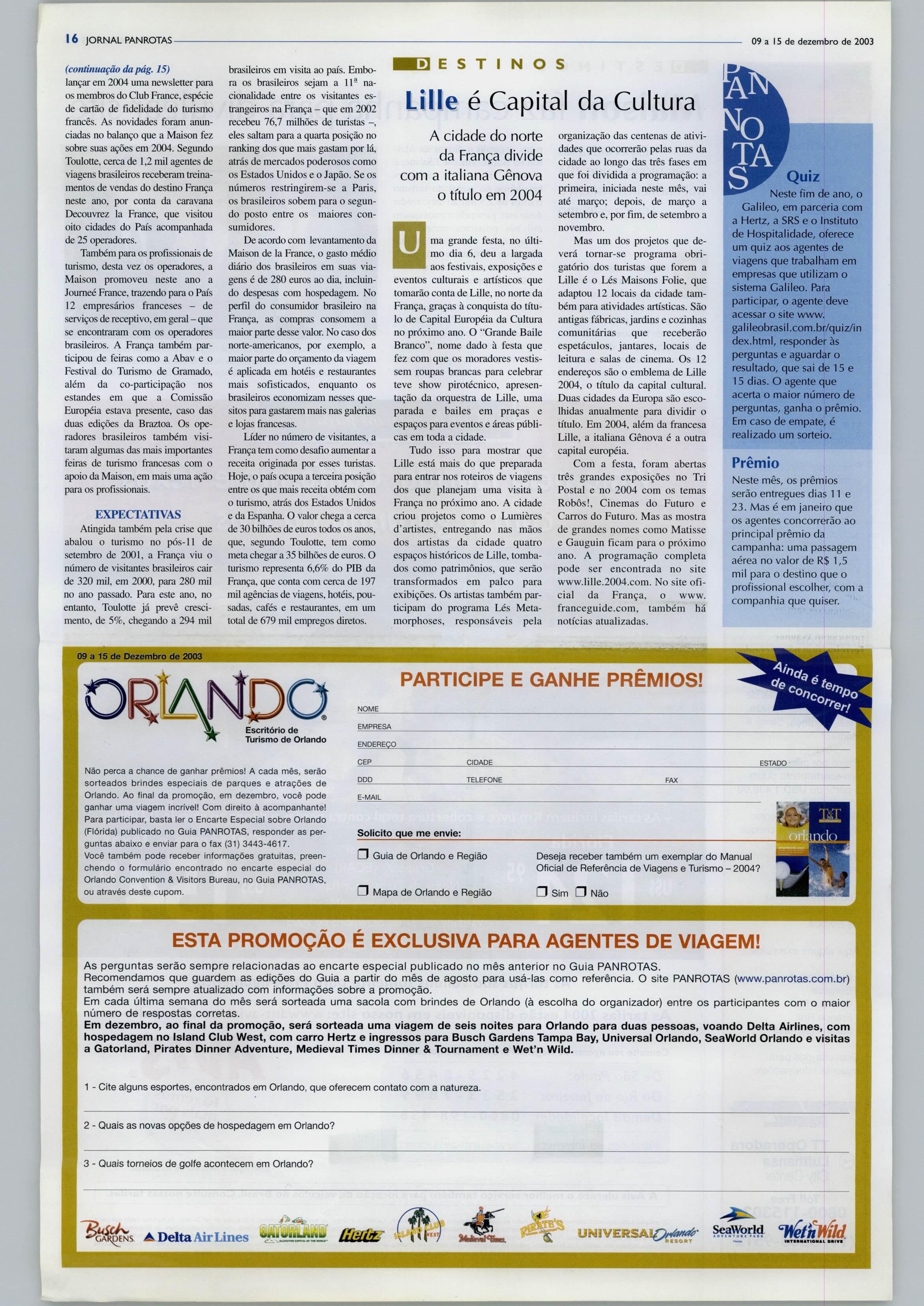 09 a 15 de dezembro de 2003 JORNAL PANROTAS 3I LTIMAS NOTÍCIAS