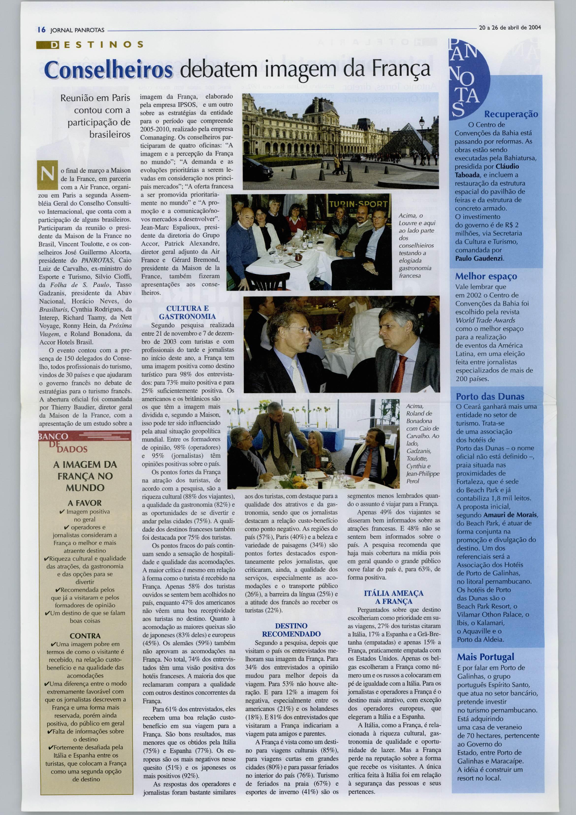 do turismo francês Conheça em primeira mão o Costa Victoria A gastronomia éapontada pelosturistascomoumdospontos fortesdasviagensàFrança Página 16 Recife mostra força no turismo de eventos Página 14 1'nn ••. m Guerra tarifária no aéreo doméstico Página 17 04 j PNX/BRA quer embarcar 260 mil 12 r CNC cria Câmara de Turismo