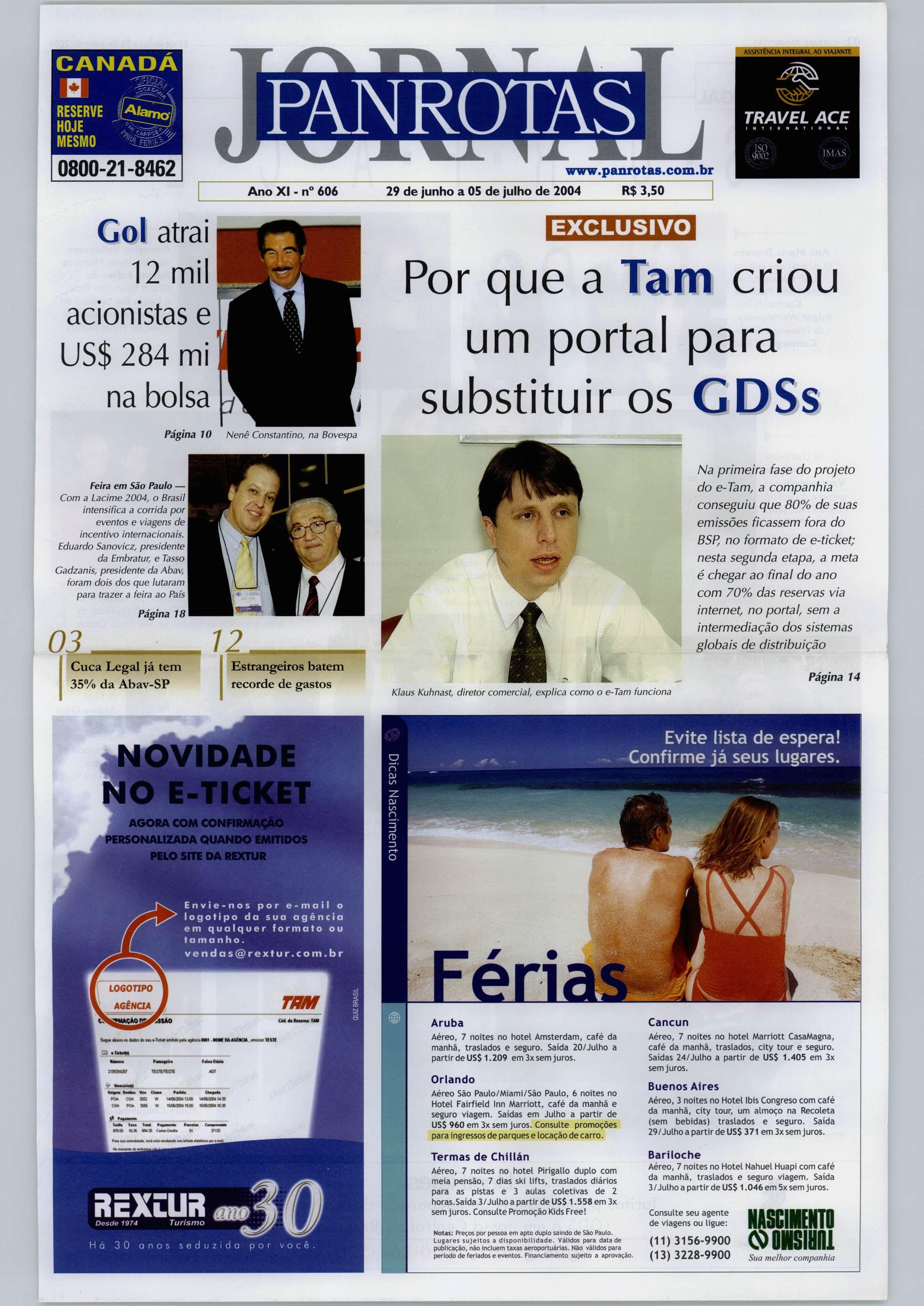 Na primeira fasedo projeto do e-Tam, a companhia conseguiu que 80%desuas emissões ficassem fora do BSP, no formato de e-ticket; nesta segunda etapa, ameta é chegar aofinaldo ano com 70% das reservas via internei, noportal,sema intermediação dos sistemas globais de distribuição