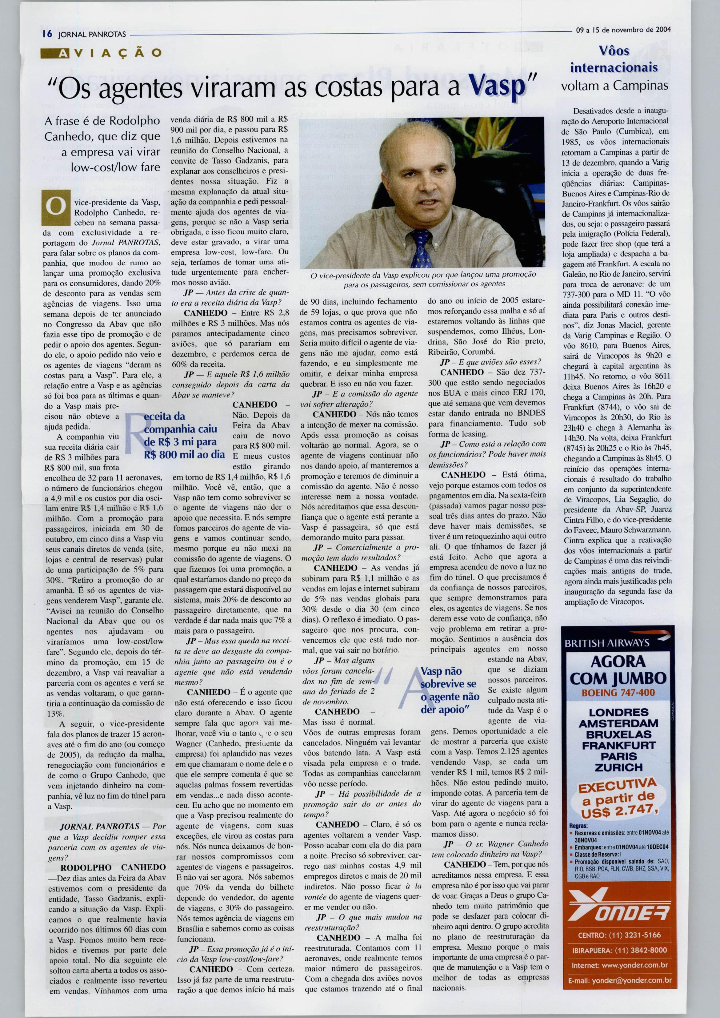 Em outra página, inteira, o vice-presidente da Vasp, Rodol\