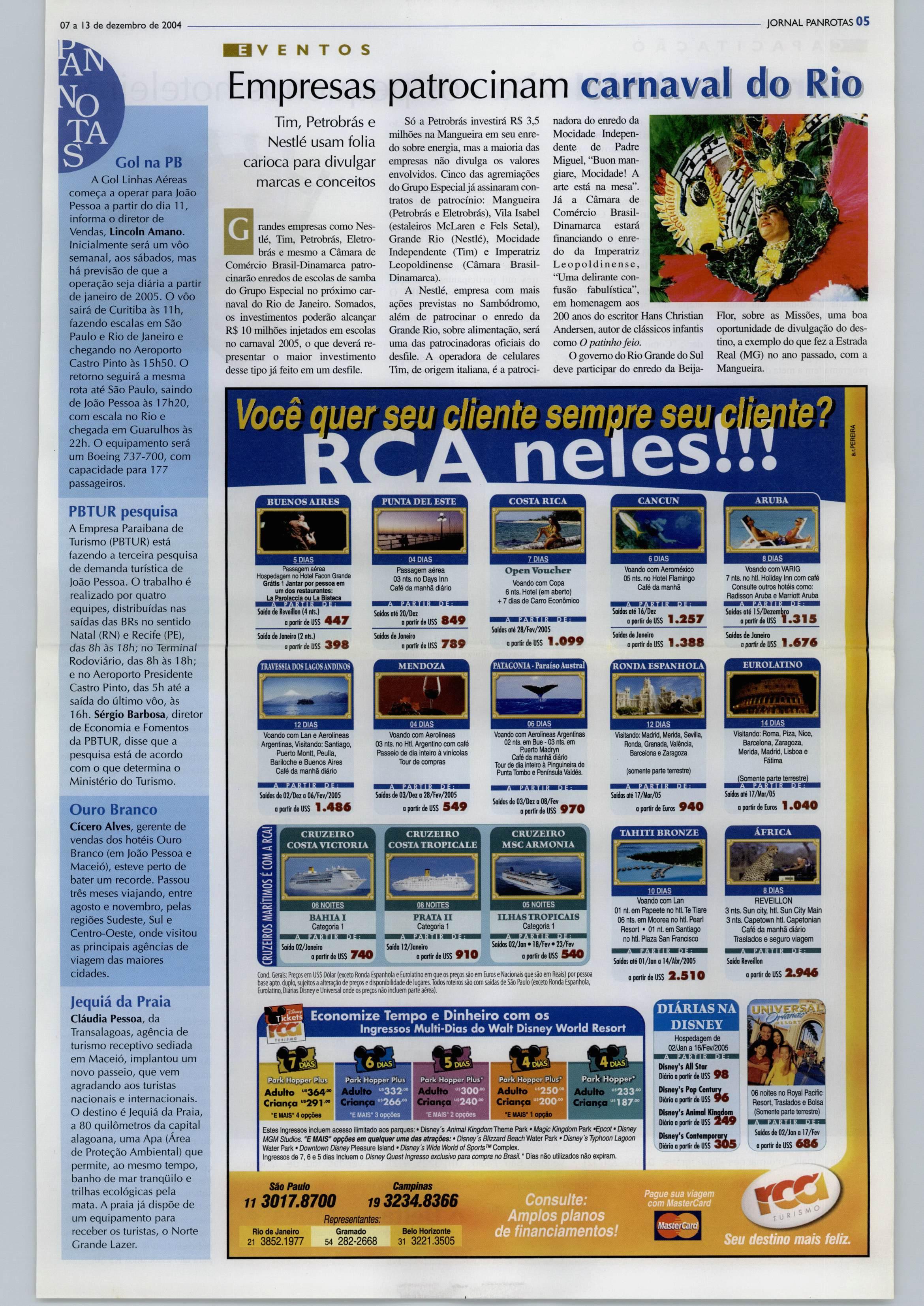1 04 JORNAL PANROTAS 07 a 13 de dezembro de 2004 WÊE PERADORAS