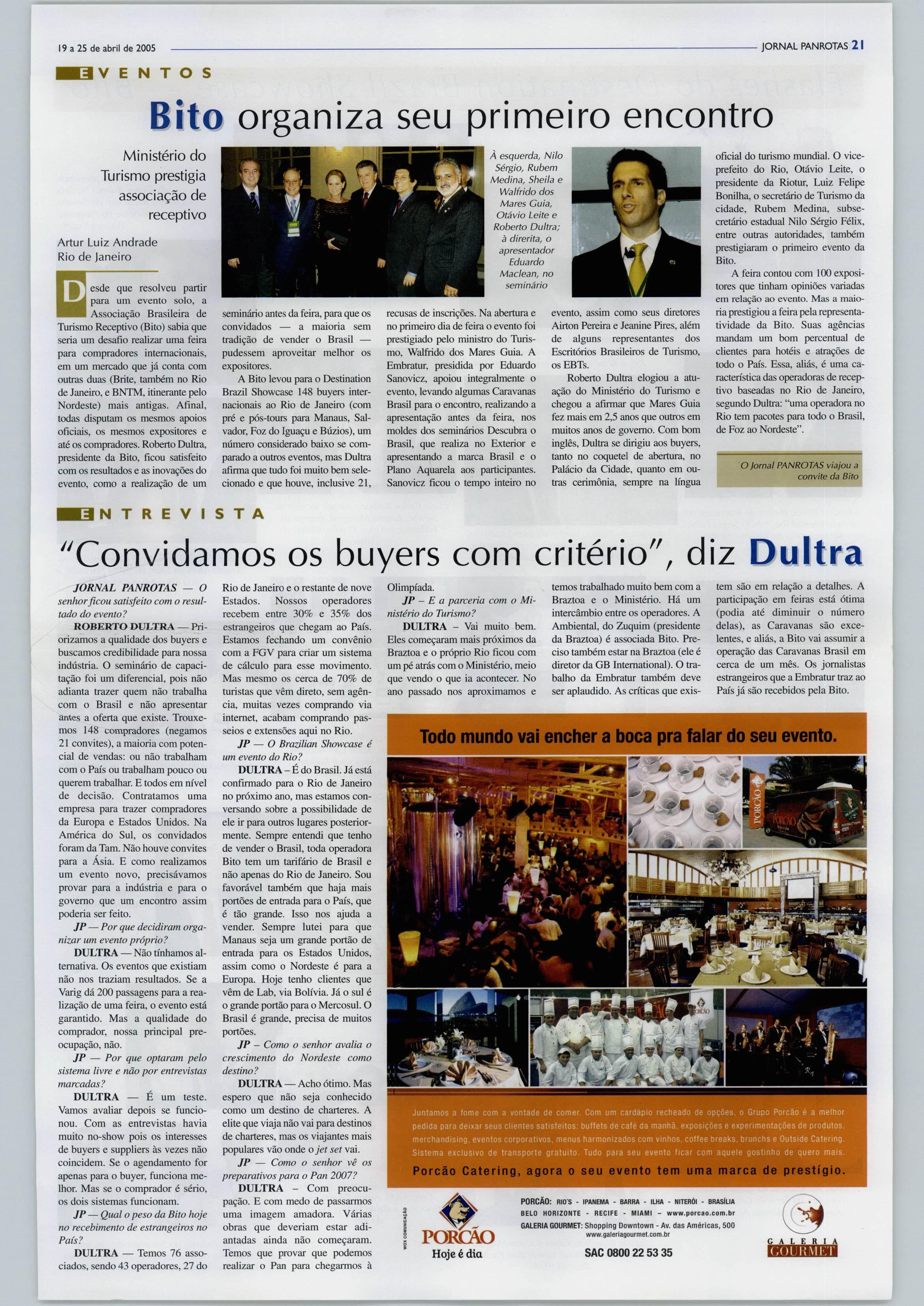 RobertoDultra, presidente daBito(aocentro), comandou o primeiro encontro internacional da entidade, que contou coma presença de Eduardo Sanovicz, presidente daEmbratur, Otávio Leite, vice-prefeito do Riode Janeiro, Walfrido dos Mares Cuia, ministro do Turismo,ea esposaSheilaPáginas02e21a23