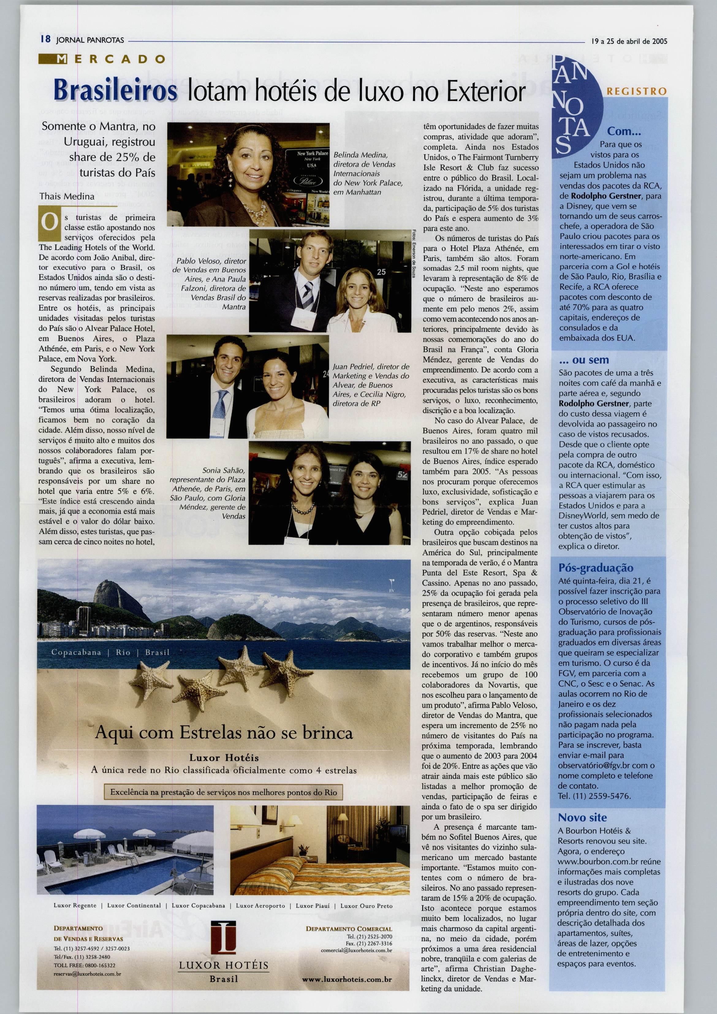 Nestetipode hotelaria, por exemplo, o porteiro discute ore sultadodojogocomohóspede,a camareira pode lhe acenar de modoInformal,aopas sarporvocê, com um alegre"bomdia, como vai, tudo bem?",eo chef, que também é brasileiro,vailhepas sarareceitadopeixena sua mesa, sem formalidades. É hotelaria com alma brasileira. Vamosdeixarclaroquenão estoufazendo exaltação aojeitinho brasileiro ou à terrível lei de Gerson,dosquesóqueremlevar vantagem.OqueenalteçoéoBra sil profundo,cheiode esperança e féequenãoperdeo "rebolado" anteadançacrueldas Injustiças sociais que—contraditoriamente à nossanaturezadepazeamor— poraquisepratica.