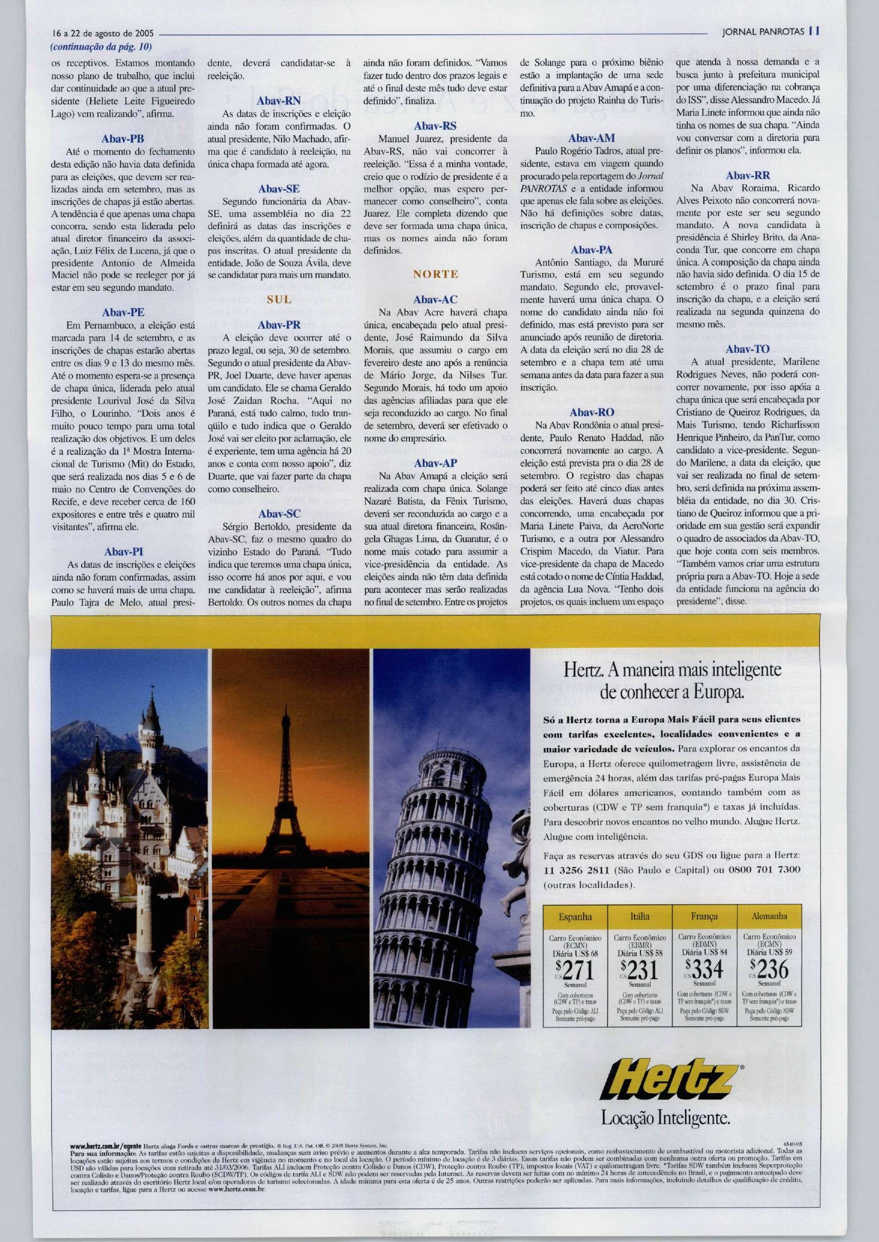 E ninguém duvida que, mesmo fazendo certo pouco caso da vitória de Fortaleza em julho, em operadoras como a CVC ea Tam Viagens, a Bahia vai estar mais agressiva no segundo semestre. Porto Seguro já está se mexendo, como conta a repórter Thais Medina nesta edição. Aguardo suas sugestões ea quem for à Avirrp 2005, em Ribeirão Preto, nos vemos lá.