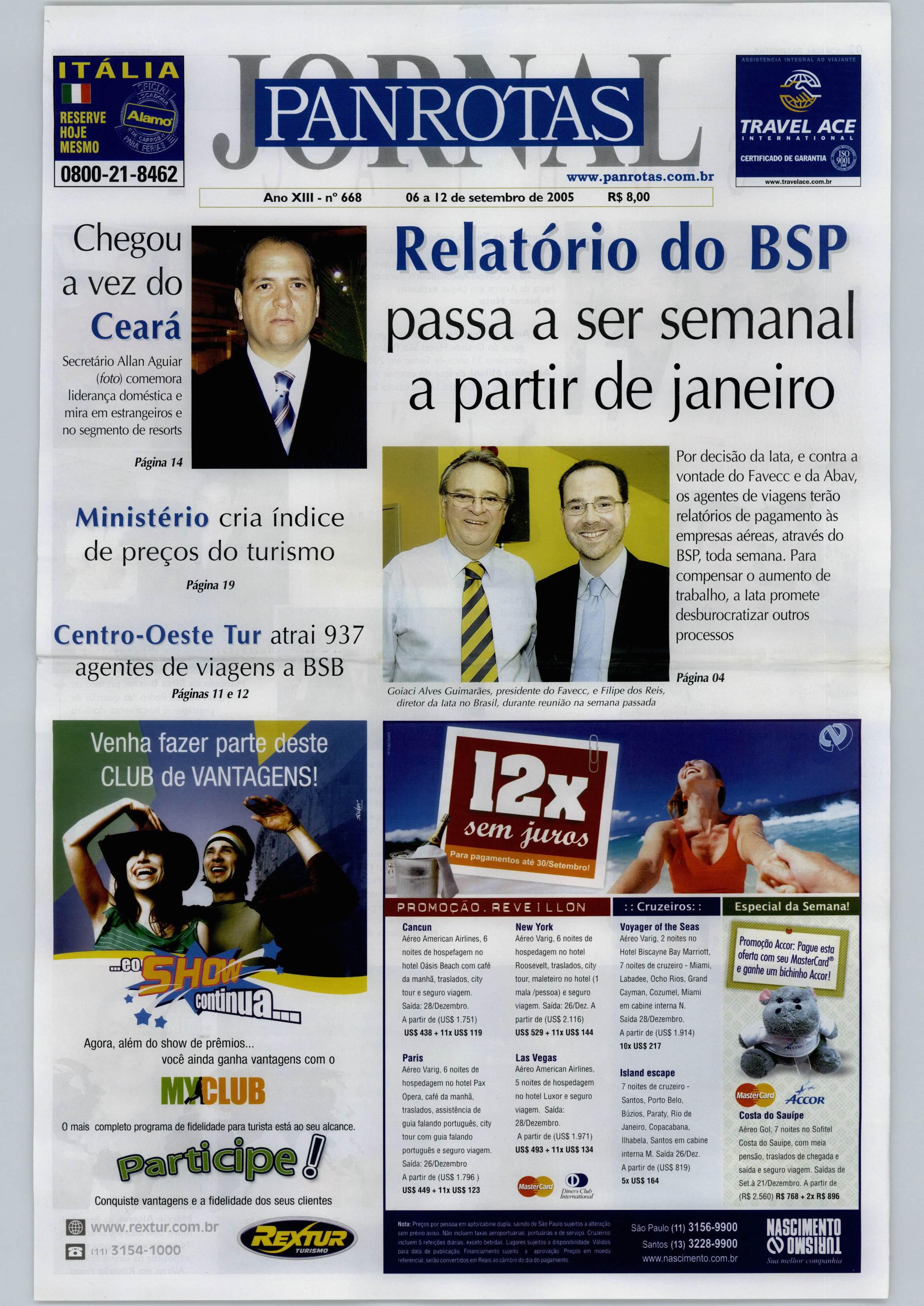 mudanças em alguns reportes, incluindoa eliminação dealguns deles, como a do CCCF dos cartões de crédito, para simplificar otraba lhodasagências,que,noentanto, terão de fazer mais relatórios sem anaisaoBSPcomamudançados prazos.Hoje,no Brasil, o BSP serve paraopagamentofaturadoapenas daVarig,no doméstico, poisGole Tamtêmfaturamentopróprio,fora dosistema.Nointernacional,que parece ter virado ofocodoBSP,ao menosnoBrasil,todasasempresas fazemparte,incluindoGoleTam.