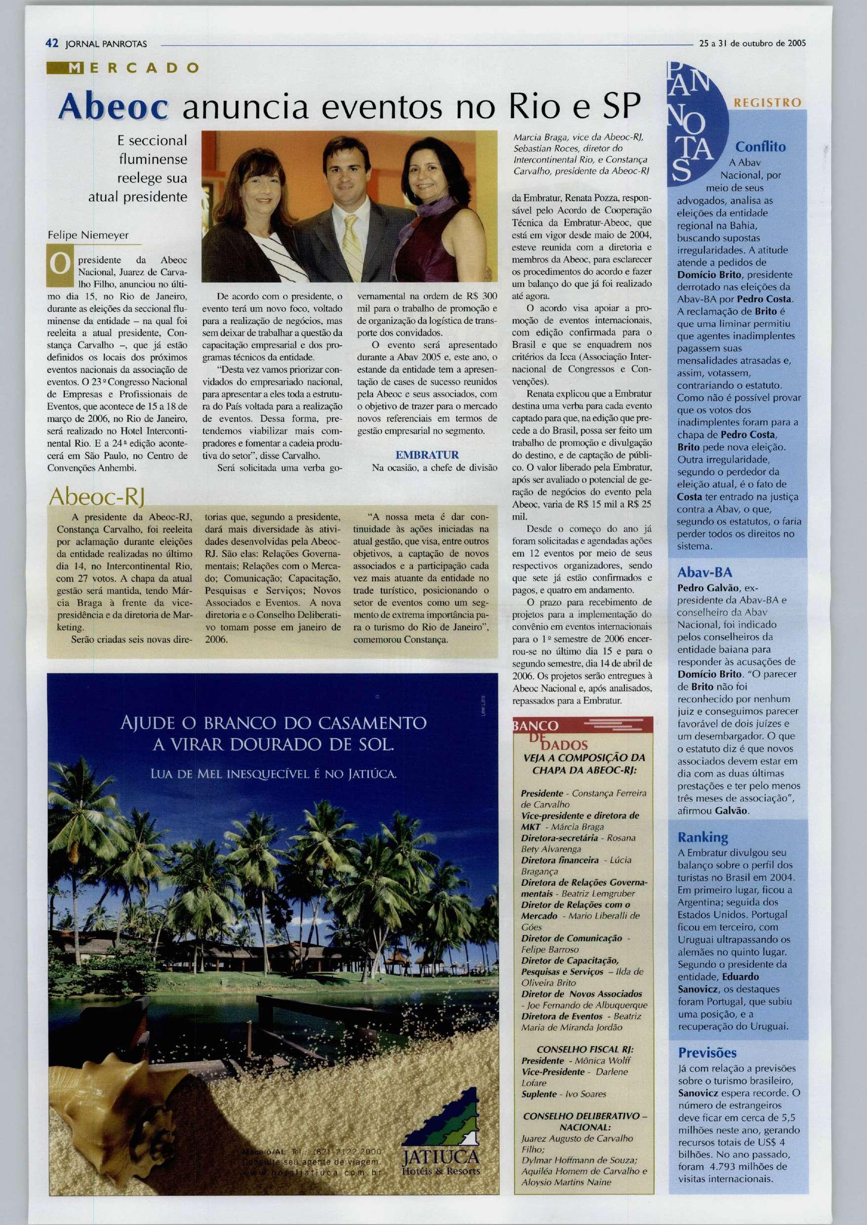 tura emtempo real do evento. Não dá é para ficar parado na Abav.E ir para a praia, somente no domingo, depois de andar muito na feira, se divertir nas festas e rever amigos, par ceiros e clientes. Essa promete ser uma Abav histórica, a primeira presidida por umma ranhense, que preparou muitas surpresas. Uma boa Abav a todos.