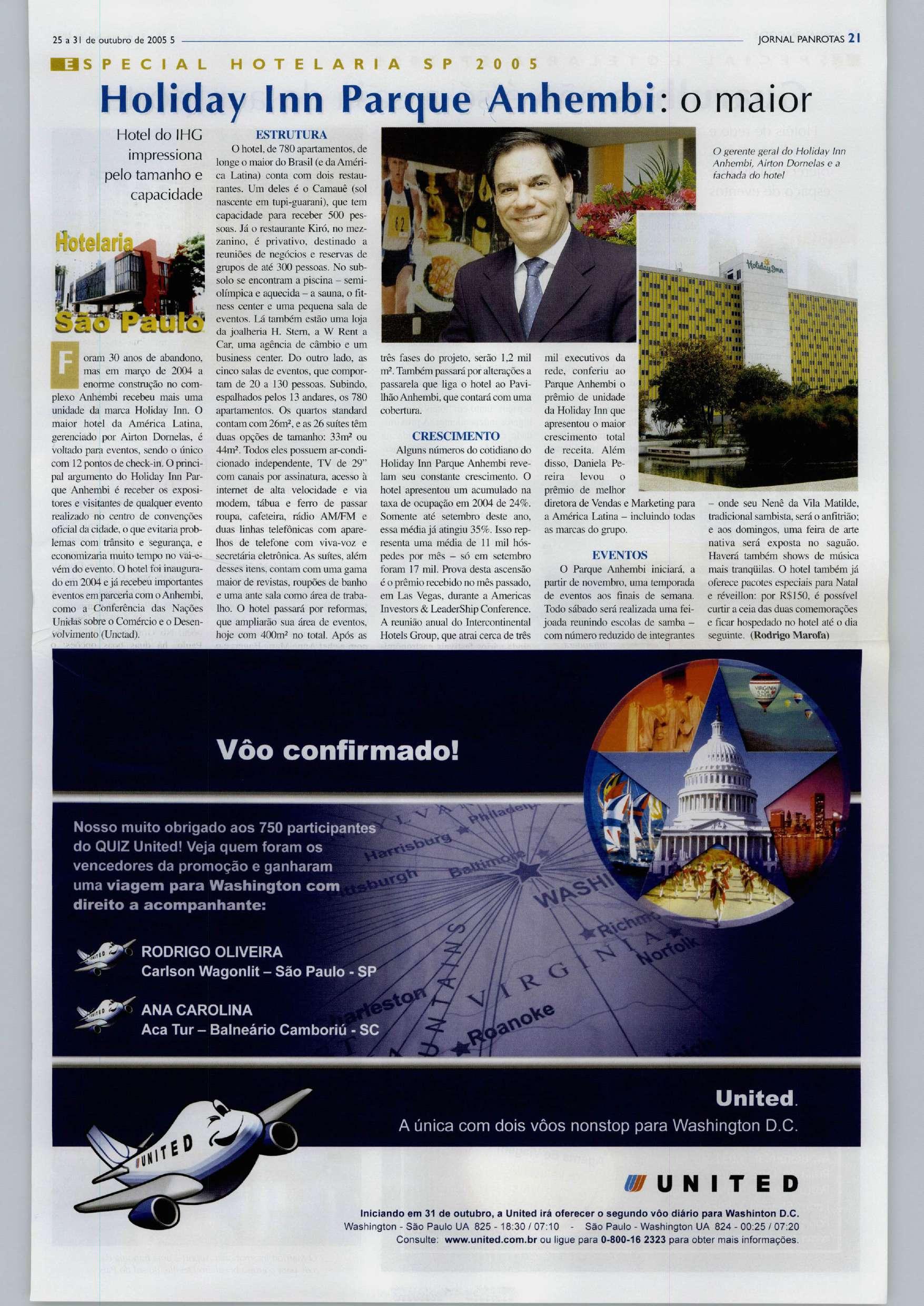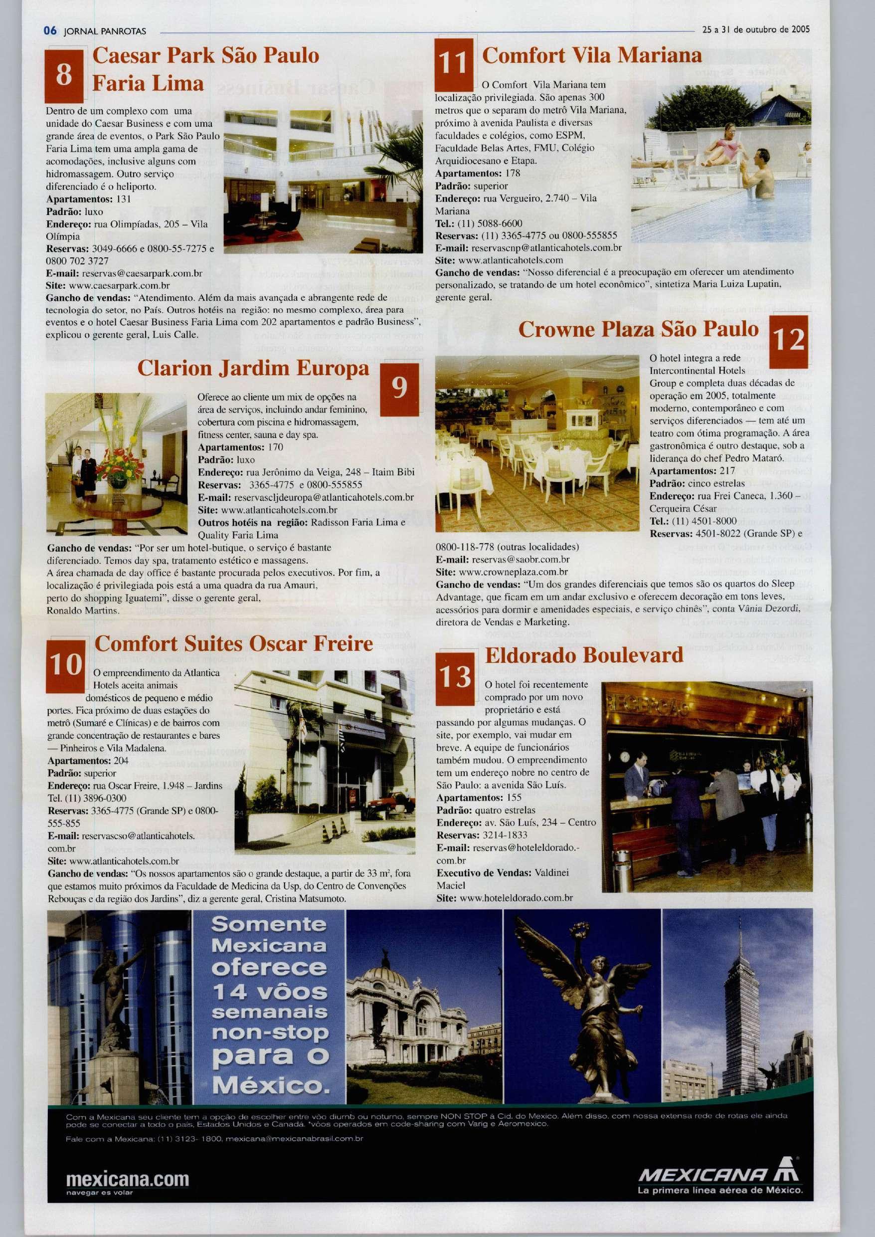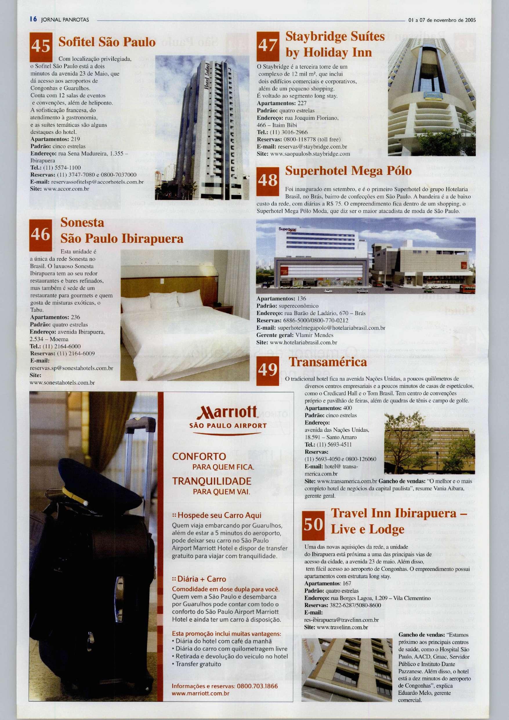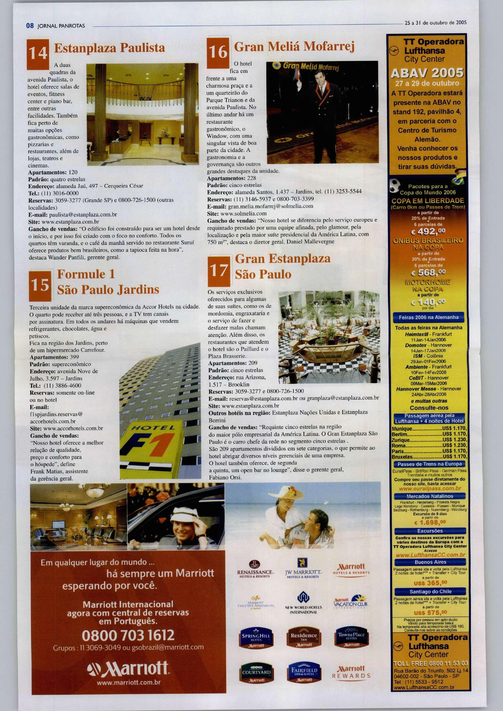 Como já étradiçãonaedição especialdo Jornal PANROTAS na Feira da Abav, mais uma vez traze mosumaediçãovoltada,emsua grande parte, paraahotelariadeSão Paulo. Para começar, destacamos 50 hotéis,de todas as categorias, em todasas regiões da cidade. Todos comfotodos empreendimentos. Depois,em reportagens especiais, abordamos a hotelaria deluxo,algu