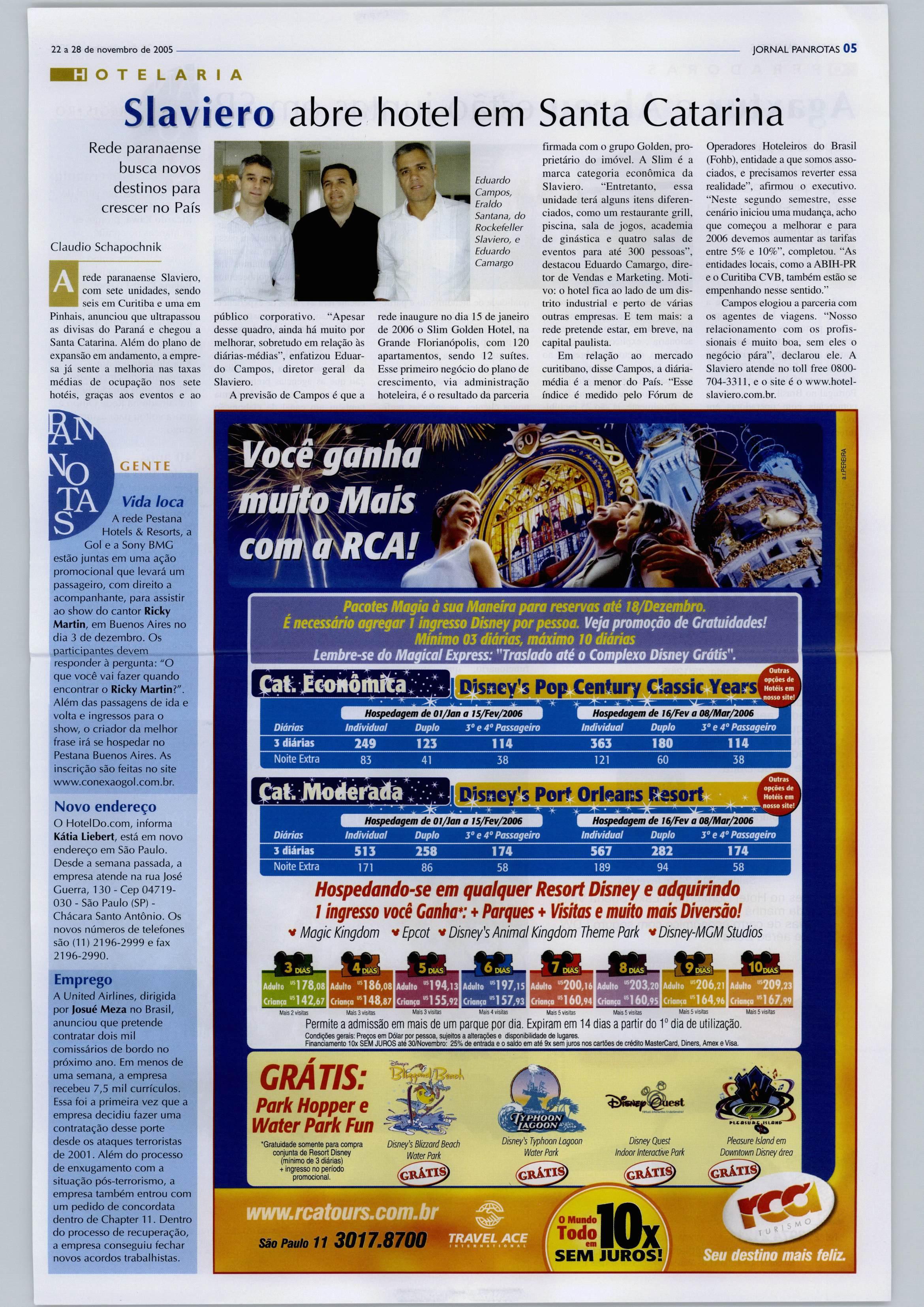 rede inaugure nodia15de janeiro de 2006 o Slim Golden Hotel, na Grande Florianópolis, com 120 apartamentos, sendo 12 suítes. Esse primeiro negócio do plano de crescimento, via administração hoteleira, éo resultado da parceria V,