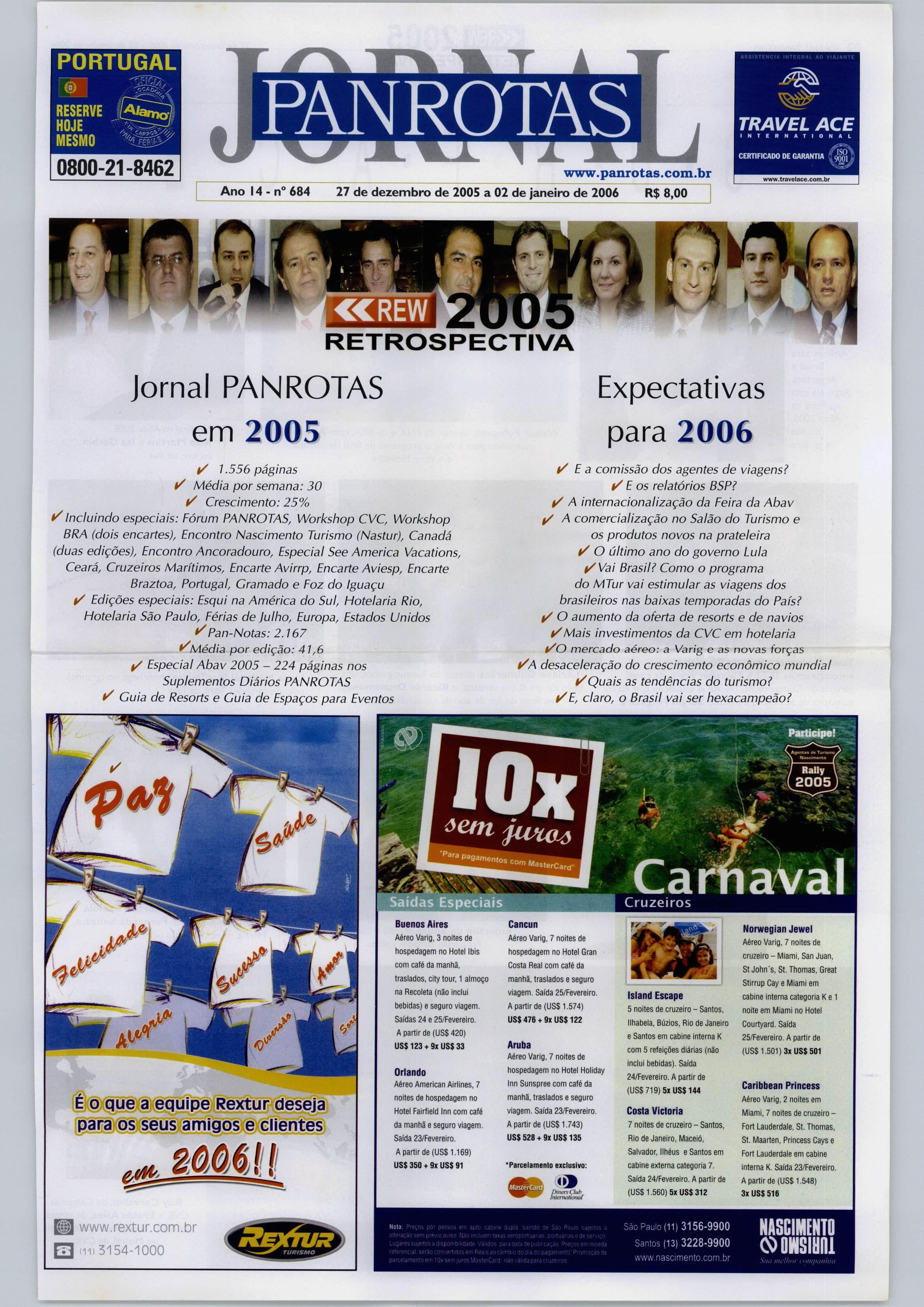 da.(Aquium parênteses para destacar a unanimidade queéo ministro Mares Guia hoje.Se foi uma surpresa eum destaque em 2002, hoje é admirado por todos.) Que sigamos com saúde, har monia, a boa descontração do turismo, que torna tudo mais agradável, e que viaSite, TV, Jor nal. Guia, Corporativo e Espe ciais, o PANROTAS continue tra zendo informação útil e impor tante para todos vocês. Feliz 2006