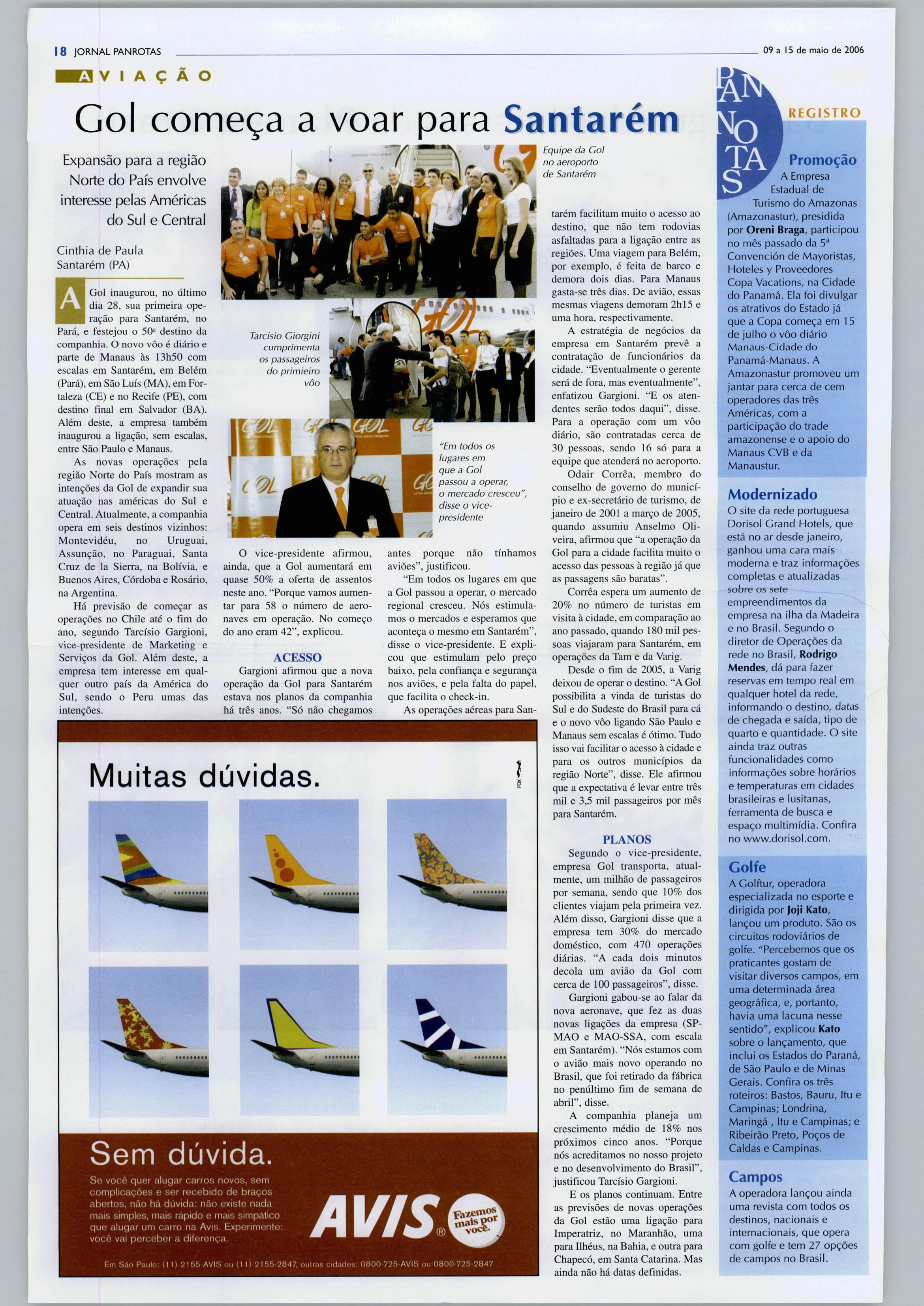 Tarcísio Gargioni, vice-presidente deMarketingeServiçosda Gol,foiaSantarém (PA) parao lançamento do vôo da companhia para este destino e aproveitou para entrar noclima paraense, ou mexicano, ninguém sabe ao certo