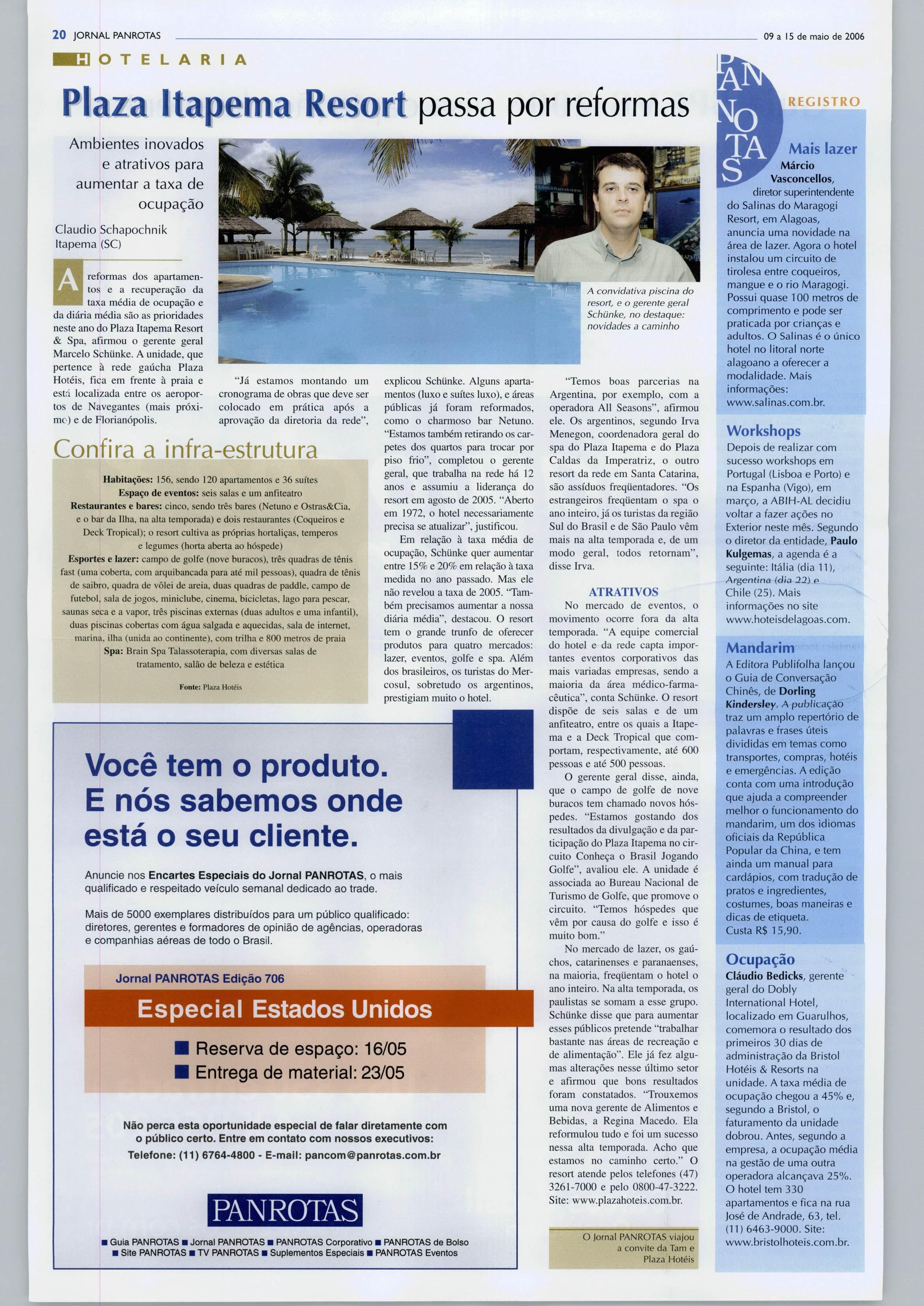 Roberto Maksoud, do hotel Maksoud Plaza, em São Paulo, foi manchete do Jornal PANROTAS em uma reivindicação contra a classificação deestrelaspelaEmbratur,quehoje em dia atua em âmbito bem diferente com a íunção depromoveroBrasilnoExterior. Aindana hotelaria, surgeumnomequehoje é capa de jornais nãosódo setor de turismo: Chieko Aoki. A "dama da hotelaria" vem acompanhada desua equipe atual, como