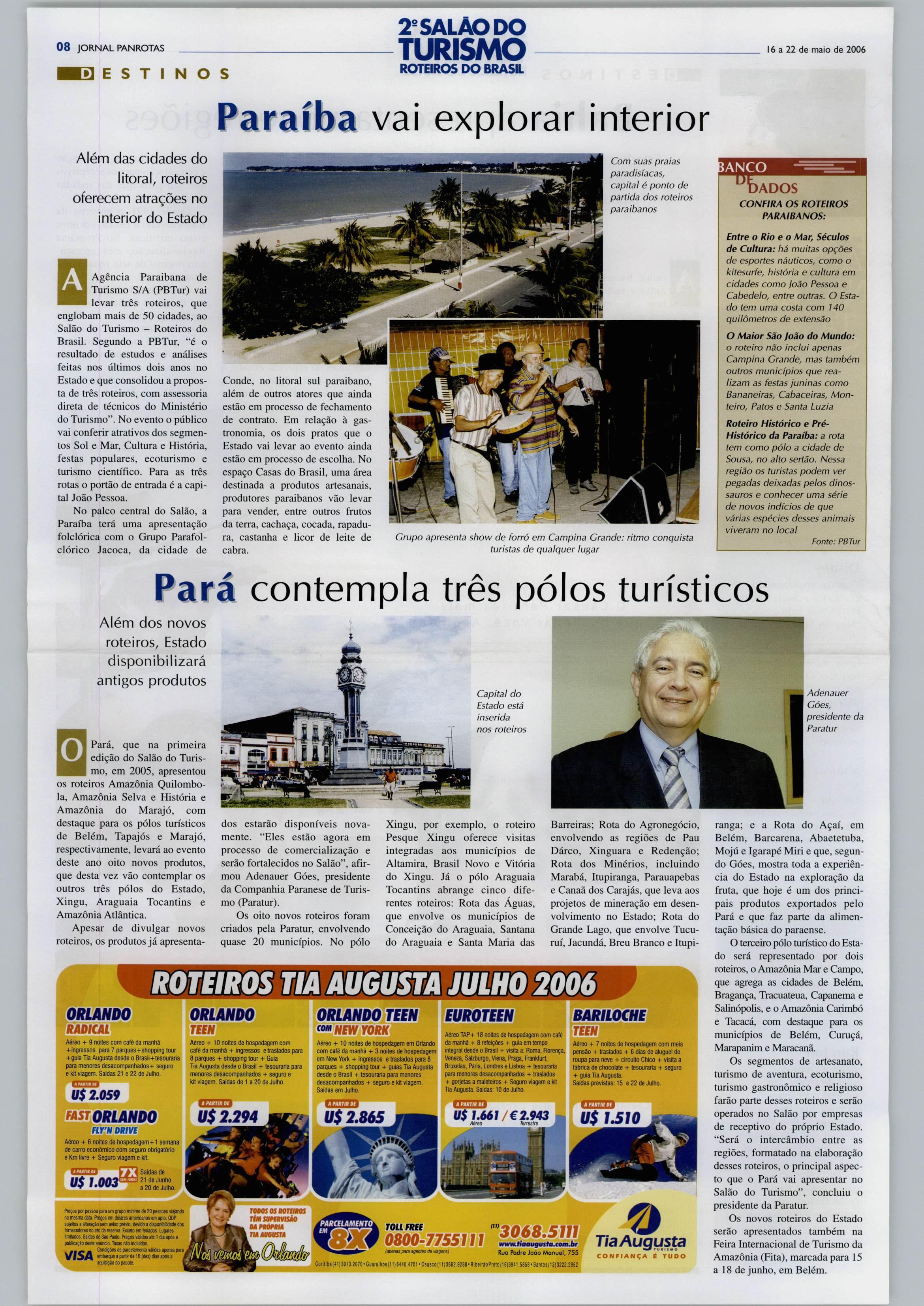 Gadzanis, respectivamente presi dente da Abav-RJ e Abav-SP, estavam na capa doJP ainda sobre a decisão de qual cidade hospedaria afeiraanualdemodo fixo. Waldomiro Ferreira, então diretor da Rotatur, empresa charteira do Grupo Varig, come morou umanoda parceria coma BRA. Jeanine Pires hoje na Embratur, deixava o Maceió CVB para assumir oRecifeCVB.Constantino de Oliveira Júnior, presi dente daGol,disseque visava 9% do mercado quando a empresa completou seismesesde operação
