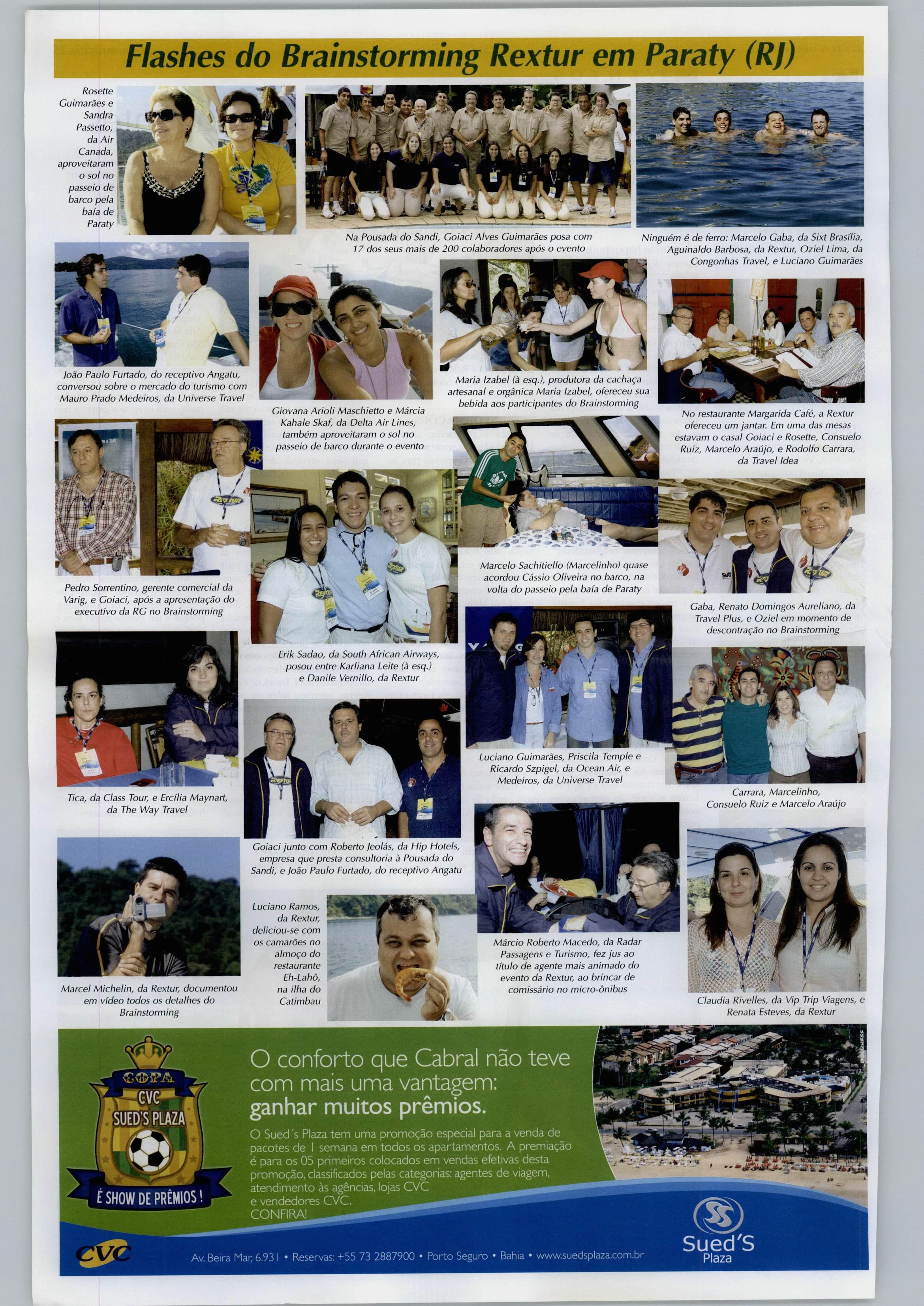Nicanor fortes, além de ser agência prefe rencial Abreu. AFlot perdeu a sociedade de Antonio Aulísio e seguecomfocono internacional. A Designer é especialista emdes tinos exóticos ea Soft tem como destinos fortes o Canadá ea Europa. A Nascimento Turismo é uma das maiores do setor e Plínio lançou o Nastur, encontro que reúne anualmente mais de 300 agentes de viagens emumhotel. Caribe, cruzeiros, Europa e resorts são alguns destaques e este mês Plínio abre sua filial no Rio de Janeiro. Vale destacar a atu ação de Oswaido Freitas, gerente da Nascimento, Fausto Adriano, sócio de Magda, e Deusa Rodrigues e Silvia Sá, sócias da Designer