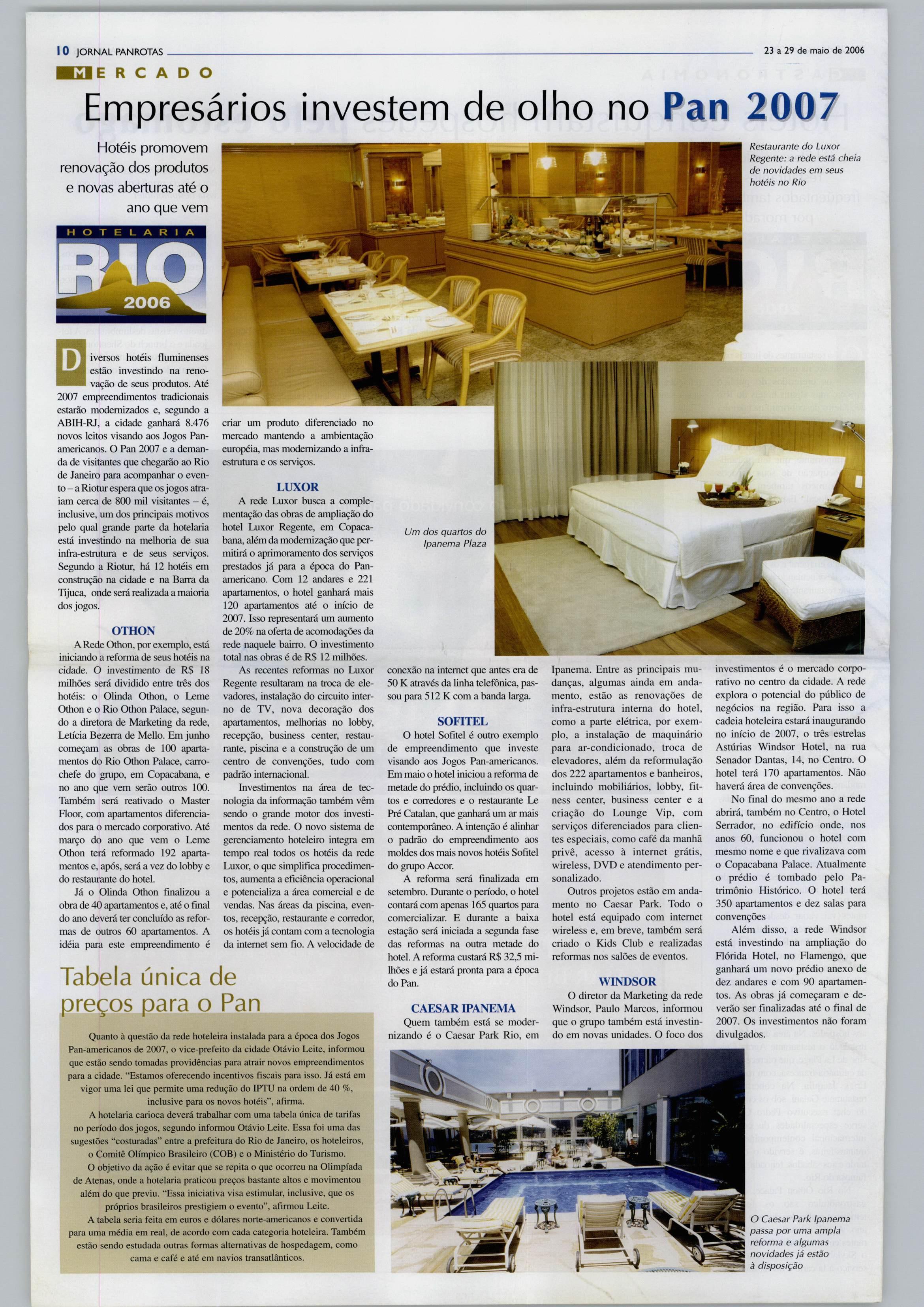COPA Jáem Copaca bana, o Rio Othon Palace mantém suafirme posição nasfeiras e convenções. O público executivo responde por cerca de 60% daocu pação dohotel,que reformou recen temente seu centro de convenções.