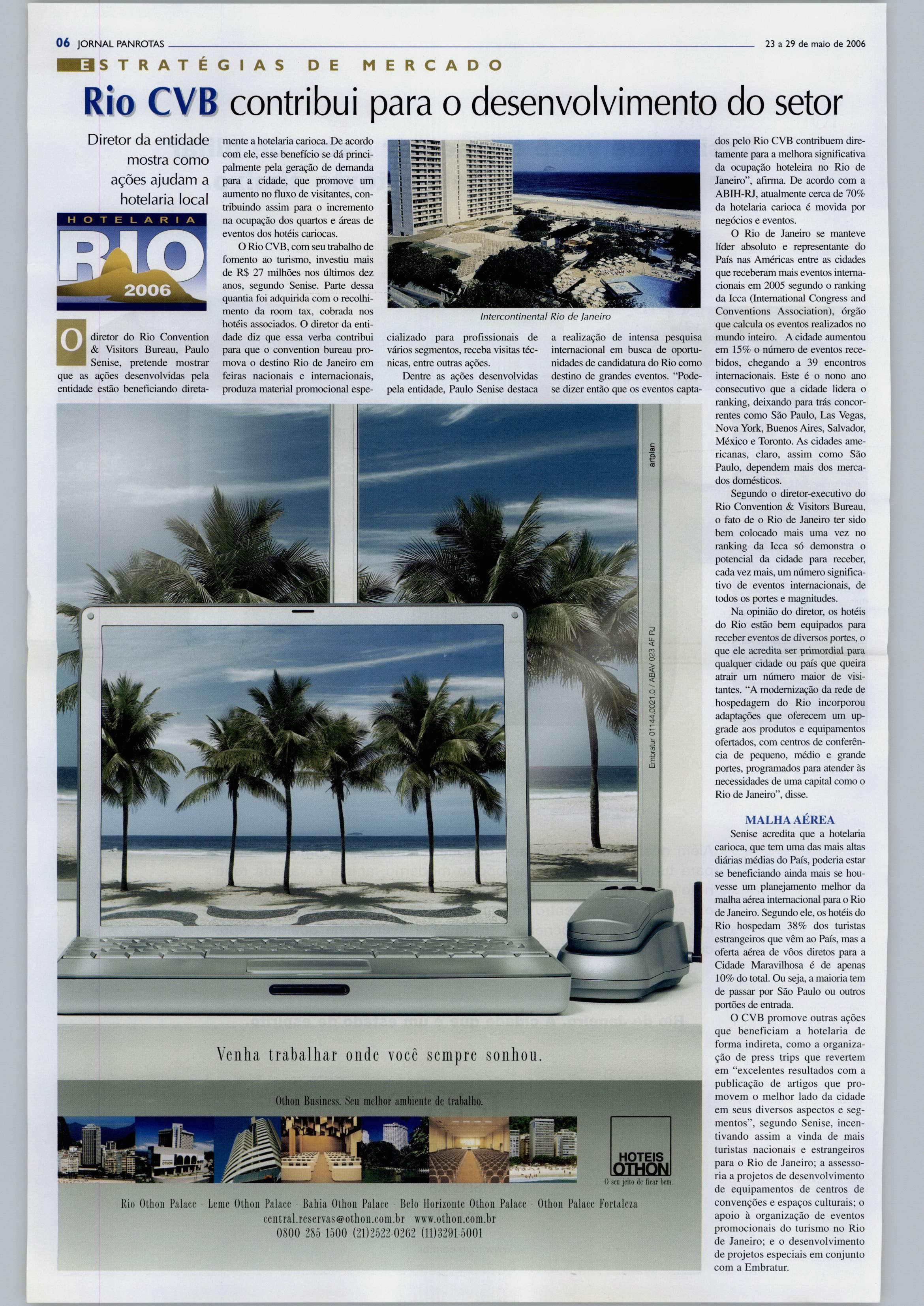 O Rio CVB, com seu trabalho de fomento ao turismo, investiu mais de R$ 27 milhões nos últimos dez anos, segundo Senise. Parte dessa quantia foi adquirida comorecolhi mento da room tax, cobrada nos hotéis associados. O diretor da enti dadedizque essa verba contribui paraqueo convention bureau pro mova o destino Rio de Janeiro em feiras nacionais e internacionais, produzamaterialpromocionalespe-