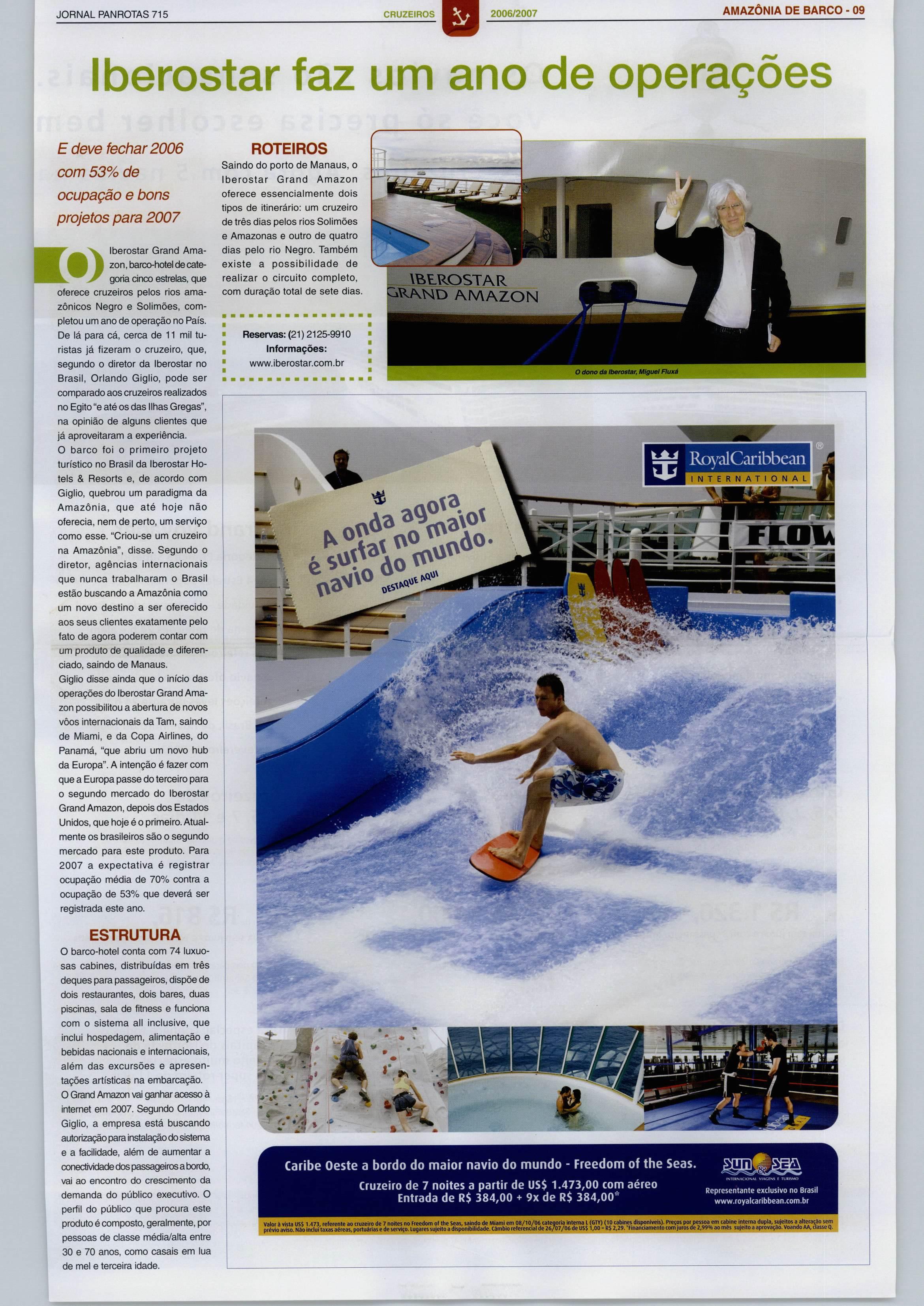 Para ele, o Freedom of the Seas éa aposta do momento "Eletemum estilojovem,bemnoperfildobra sileiro. É diferente do Queen Mary 2, porexemplo, que era omaiornavio até agora, equeémaisluxuoso,tem cabines maiores, os dois têm ca racterísticas totalmente diferentes", disse. Nascimento elogiou a an tecipação de vendas da Costa Cruzeiros este ano. "A Costa foia primeiraaabrir as vendas este ano, em janeiro, elogo em seguida começou a procura".