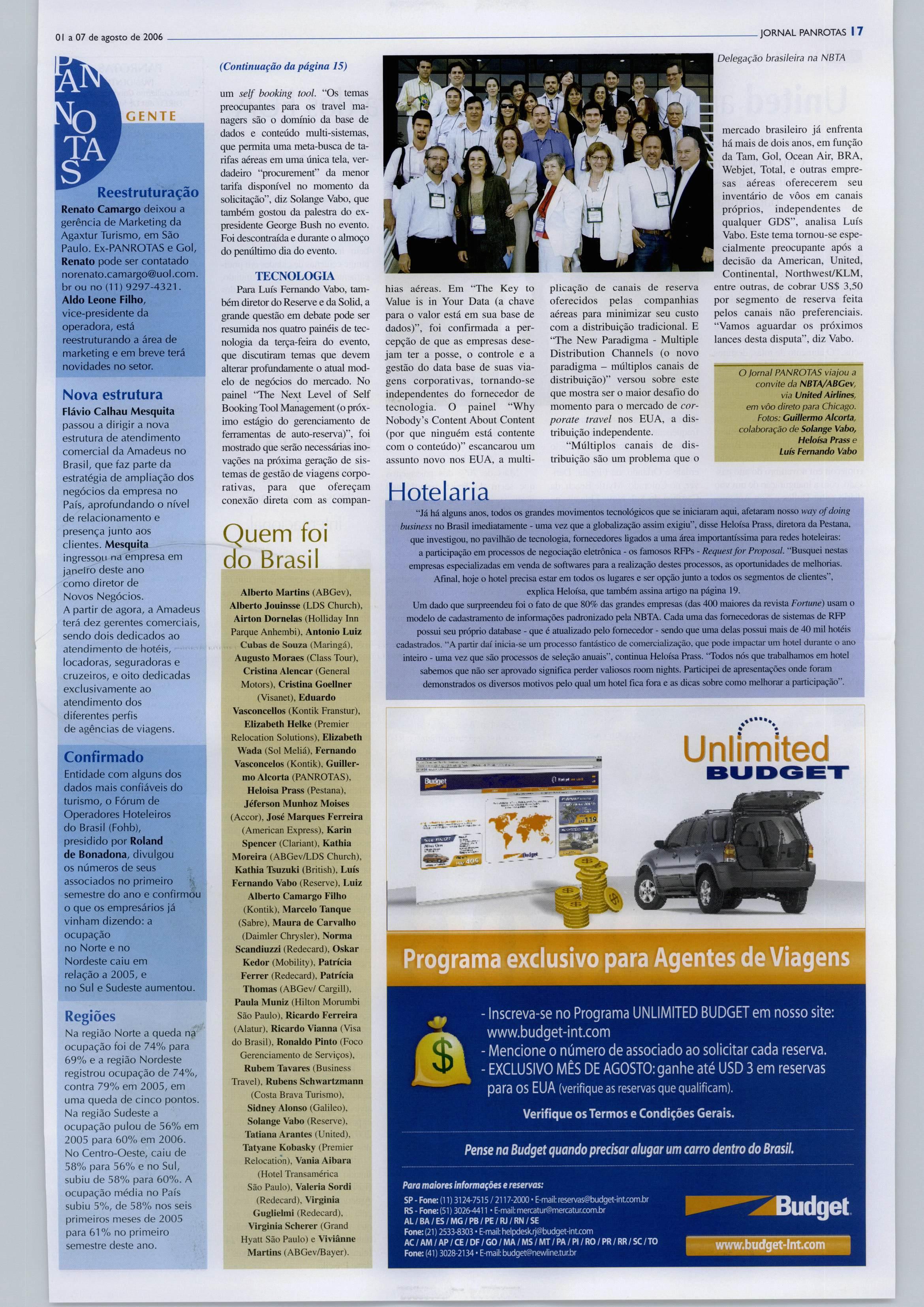 As entidades de classe que representam os agentes podiam ajudar mais nessa "preparação para a concorrência", mas apenas o setor de agências corporativas parece estar atento ao que ocorre no mundo, às questões mais técnicas, à capacitação, á instalação de tecnologias avançadas -e até acordos de uma classe com determinado segmento. Nos Esta dos Unidos, algunsfatos mostram a força dos agentes no atual cenário de briga das companhias aéreas com os GDSs: 1) a lowcost/low fare Jet Blue deve voltar a usar GDSs, pois cresceu e ficou fora da venda às agências ea parte do mercado corporativo; 2) surgiu o GDS Genesis, de propriedade de agentes de viagens, pelo qual as agênciasclientes o utilizam com seu logo ea sua cara os agentes se uniram e criaram um GDS alternativo; 3)em junho os agen tes foram responsáveis por US$ 8,1 bilhões em vendas de passa gens aéreas pelo BSP local, 11 % a mais que em junho de 2005; 4) a venda de hotéis on-line por agentes de viagens ultrapassou em maio a venda direta aos consumidores; 5)a Asta (aAbav local) mudou o formato de seu evento, tornando-o mais profissional ecom ênfase nos aspectos técnicos. A entidade também produziu um documento que mostra por que é mais vantajoso e até mais barato comprar em uma agência de viagens e não diretamente na internei. As agências de viagens nos Estados Unidos têm se forta lecido, as vendas aumentam, mas