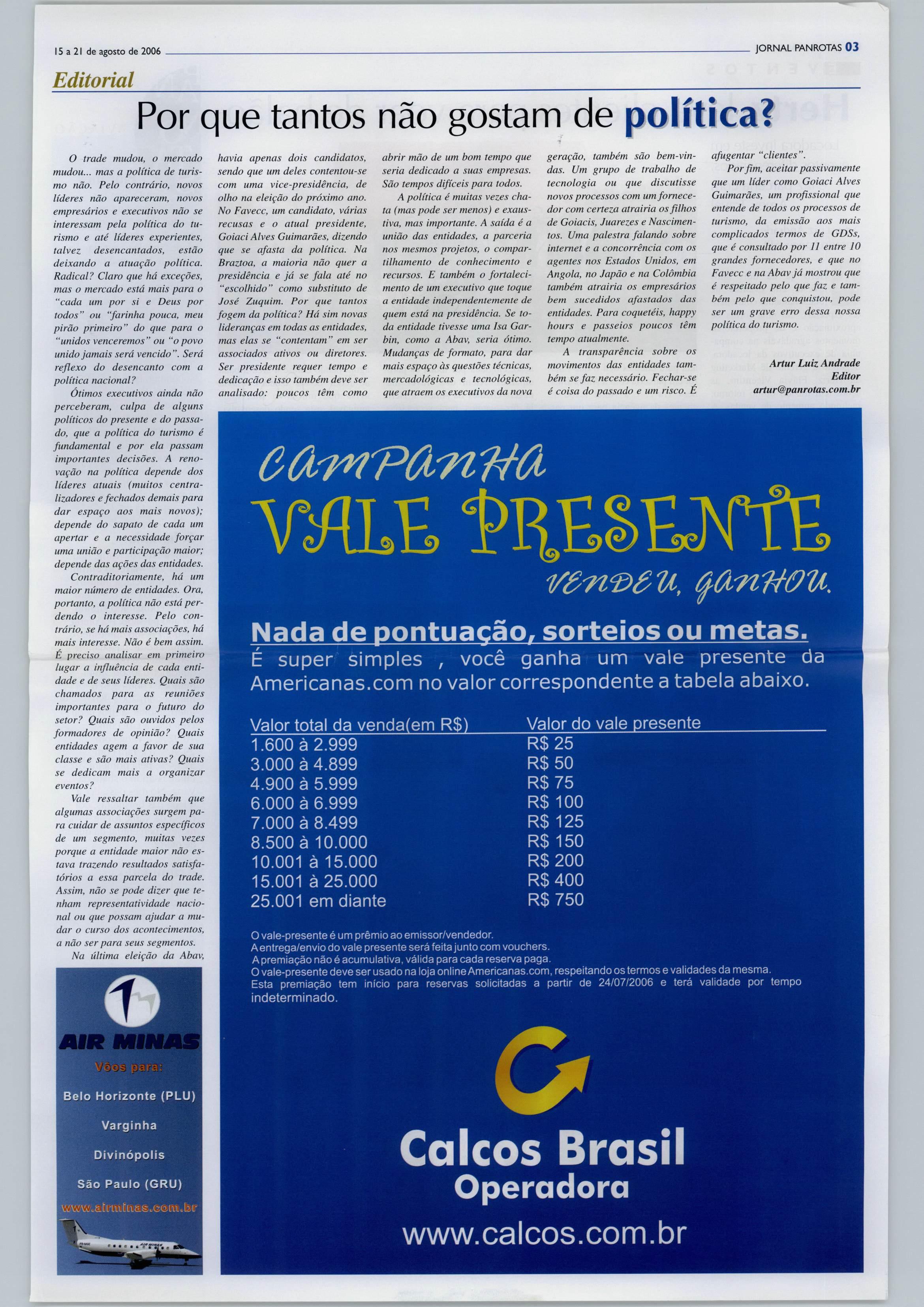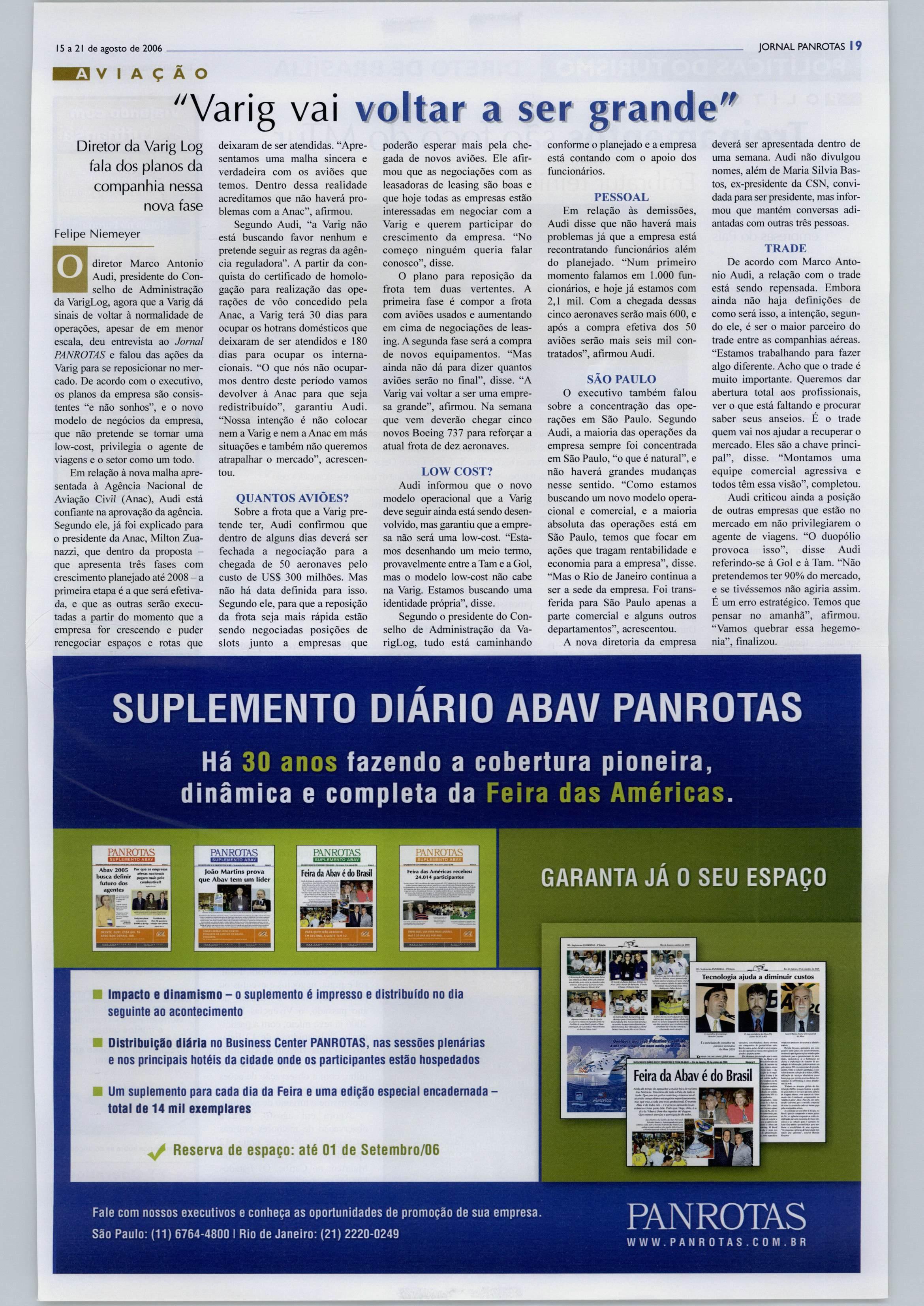 O Jornal PANROTAS é vendido somente porassinatura.Paraassinar,ligue