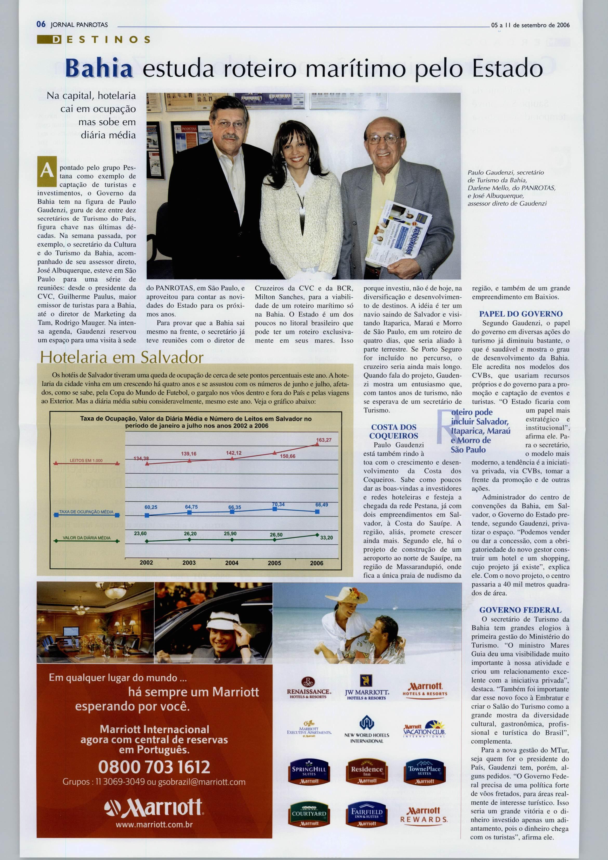 for anunciado até o final do ano. Dionísio Pestana se diz bastante satisfeito com as operações no Brasil.Sãotodaslucrativas,garante ele,salientandoqueumasmaiseou trasmenos. "Essa associação de Sauípe, um resort referência no BrasU, comasPousadasdePortugal (produto administrado peloPestana, quetem participação acionária, inclusive), outra referência em seu segmento,vaicriarumaligação muitoforteeprodutiva,evamos investirbastantenoserviço,nagas tronomia enapartecultural.Esse projetose encaixa perfeitamente com nossosplanos",dizPestana.