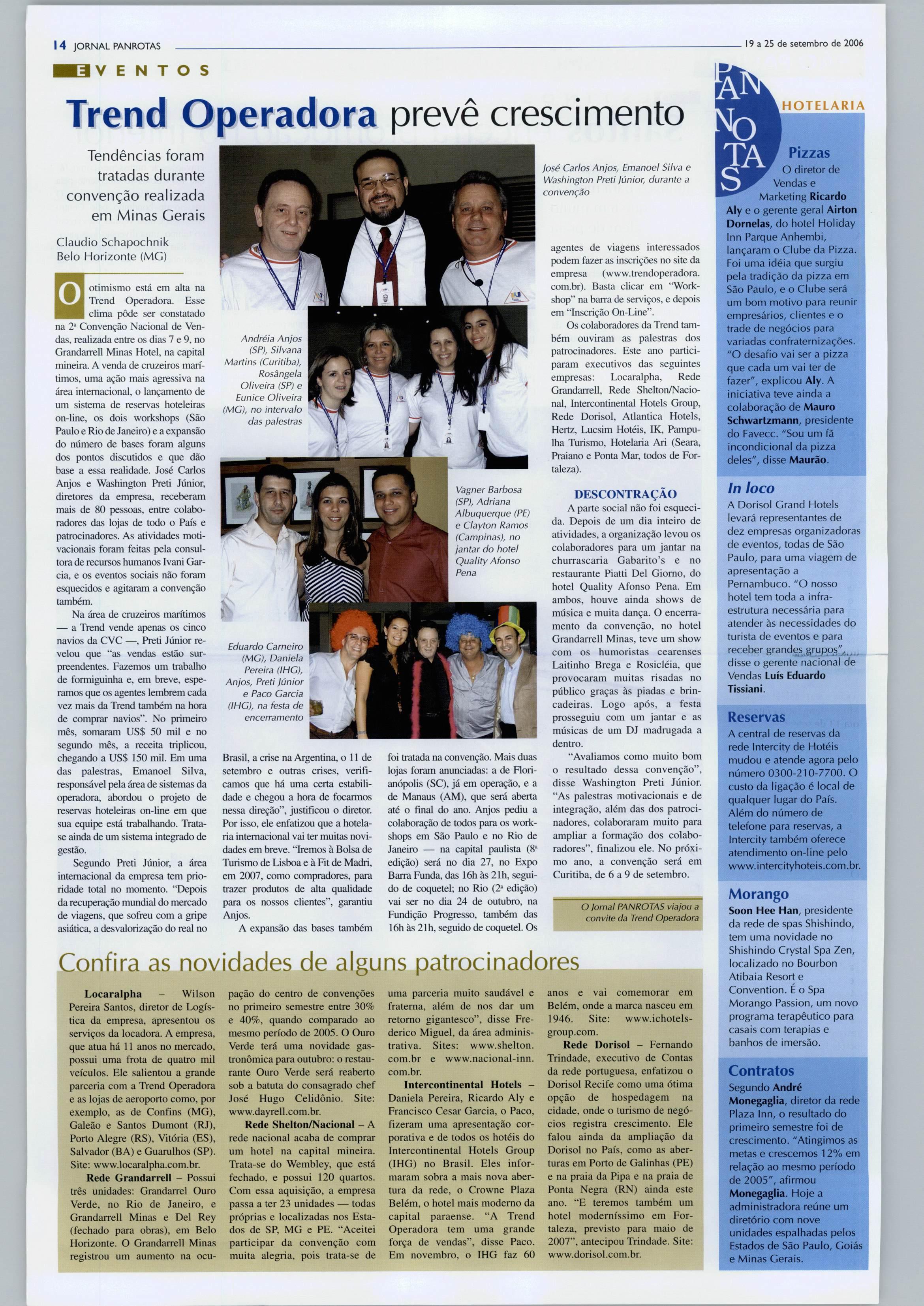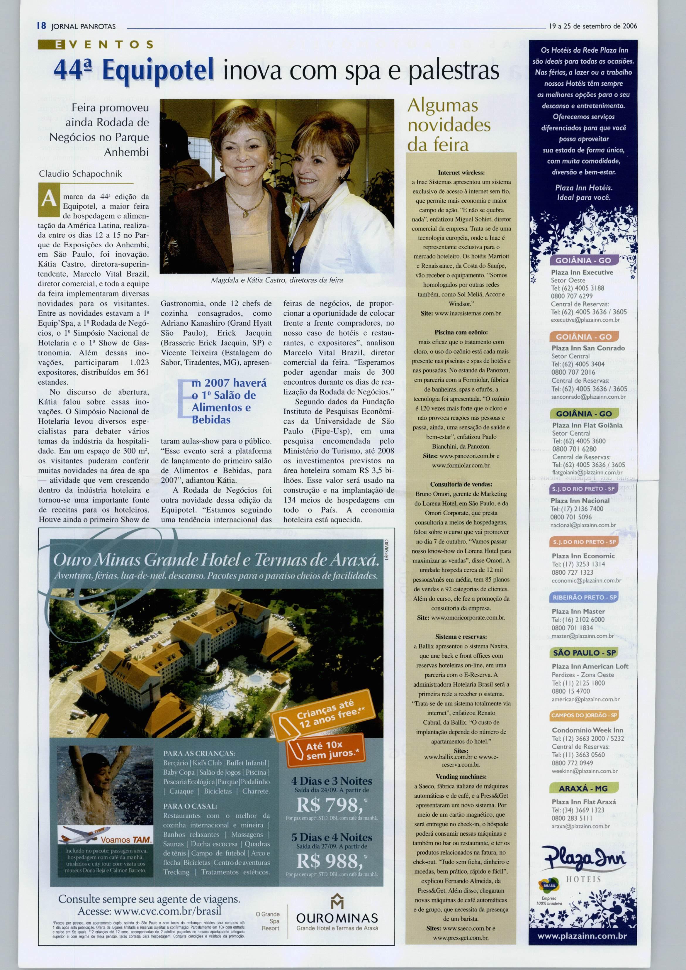 SANOVICZ Primeiro é preciso destacar que não vou cuidar apenas de turismo, masé claro que minha história no setor contou na hora de me con tratarem. Meu desafio agora é redesenhar a Lacime e apresentar ao mercado um produto novo, já em outubro, queseja cost ejfective, cujo resultado seja absoluta mente justificado perante o custo a fim de viabilizar a edição de 2007.Éintençãofazeressa ediçãode2007,poistrata-sede um segmento, de eventos, que triplicou noPaís,masnão ainda não encontrou correspondente em uma feira. A Reed tem uma ferra menta muito boa,ado hosted buyer program, mas que encontrou problemas na cultura de negócios latino-americana. Éclaroquenão hátodosospontosfavoráveisno mercado brasileiro, mas ele tem capacidade de dar conta dessas falhas. Problema nunca me assus tou e acho absolutamente com preensível avisãode expositores e clientes das edições passadas. O queposso oferecer éminha história para encontrar um novo produto.Aprendicomoministro Mares Guia que problema temde ser resolvido imediatamente. Sempreencontreidesafios,seja ao administrar o Anhembi, que deu lucro pela primeira vezna história, além de ter aberto o hotel queestavaparadoháanos,sejana Embraturondepulamosde US$ 1,9bilhãoparaUS$5bilhõesde receita gerada por turistas estrangeiros.