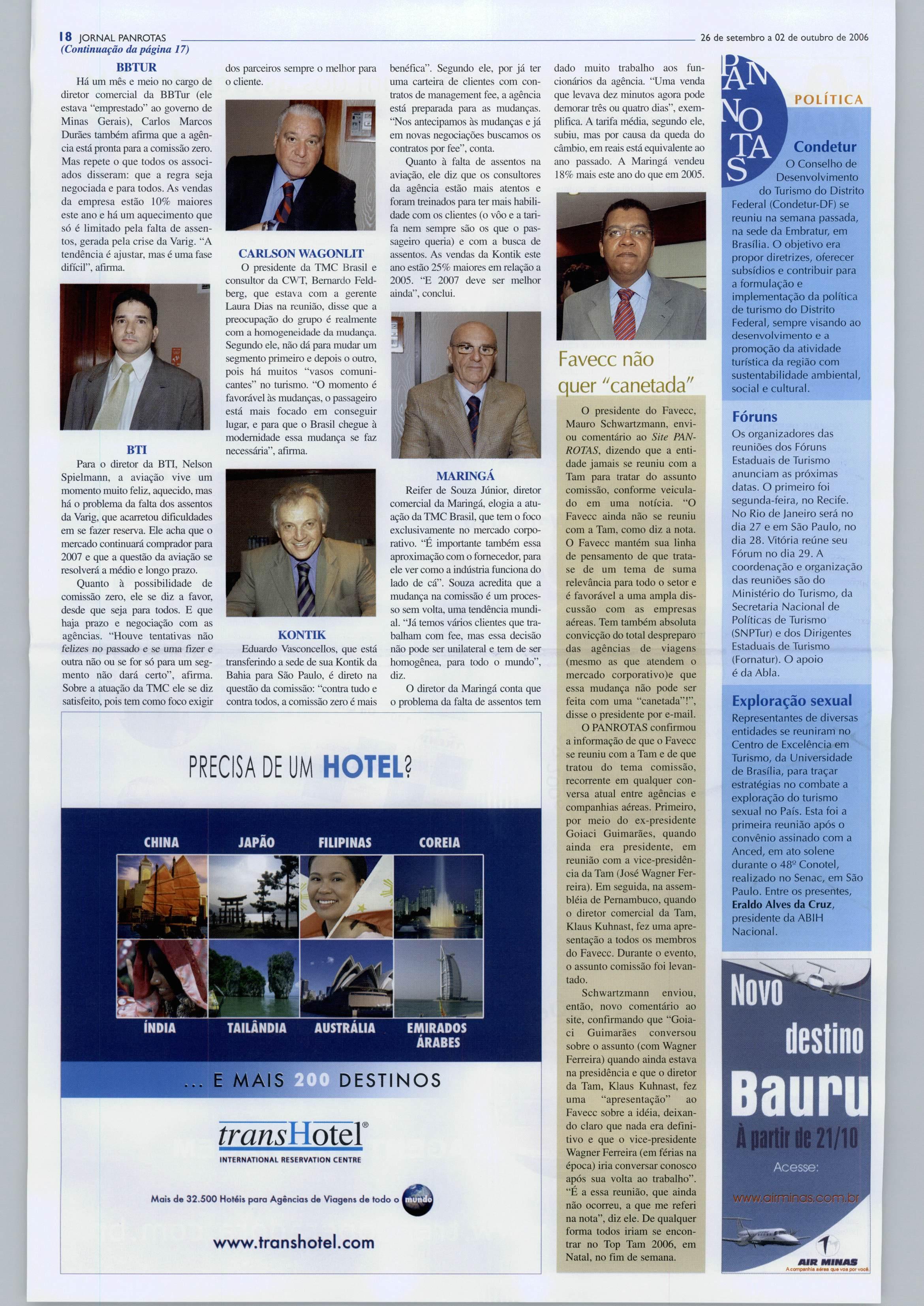 Favecc) não representa o mercado, não fala por todos os agentes, não temos mesmos problemas queo médio eo pequeno empresário, não vende lazer e pode se dar ao luxo de negociar algo para suas sete associadas. Mas o exemplo desse grupo (ede outros), que está cuidando exclusivamente de seus interesses, pode ajudar aAbavea Fenactur, aí sim, as que falam pelo mercado, as que representam mi lhares de agências, a negociar com as empresas aéreas.