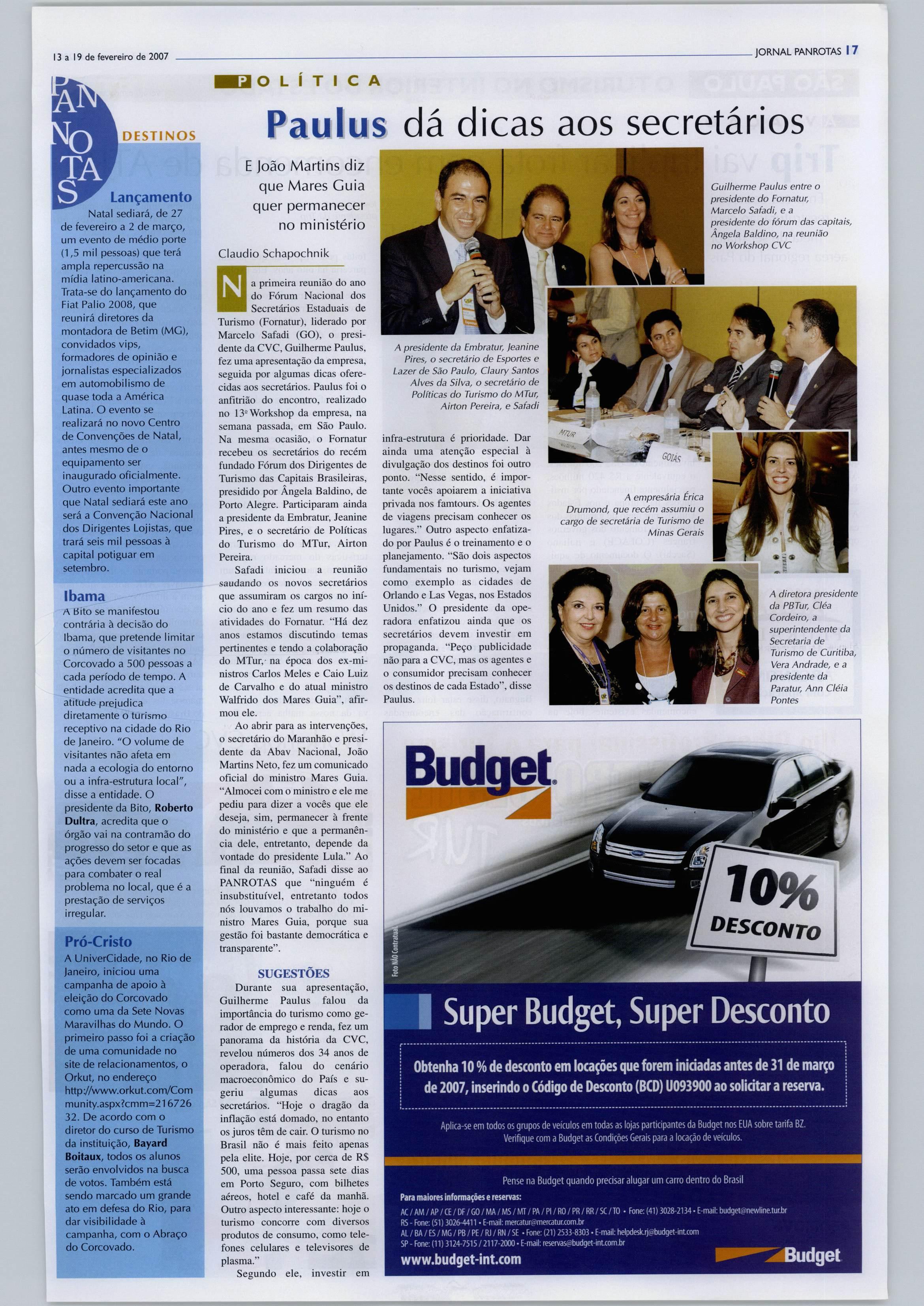 Nós aqui da PANROTAS aceita mosbem (geralmente) as boas críti cas. Recebemos algumas sugestões para oSitePANROTASque já estão sendo postas em prática ehá váriosexemplosde ações que foram geradas a partir de boas sugestões. Continuem fazendo issoese não estivermos aceitatído bem as críti cas, puxem-nos aorelha. Já na política associativa ena dosgovernos,hámentes aberias. Que proliferem maisque as enti dades de classe do turismo.