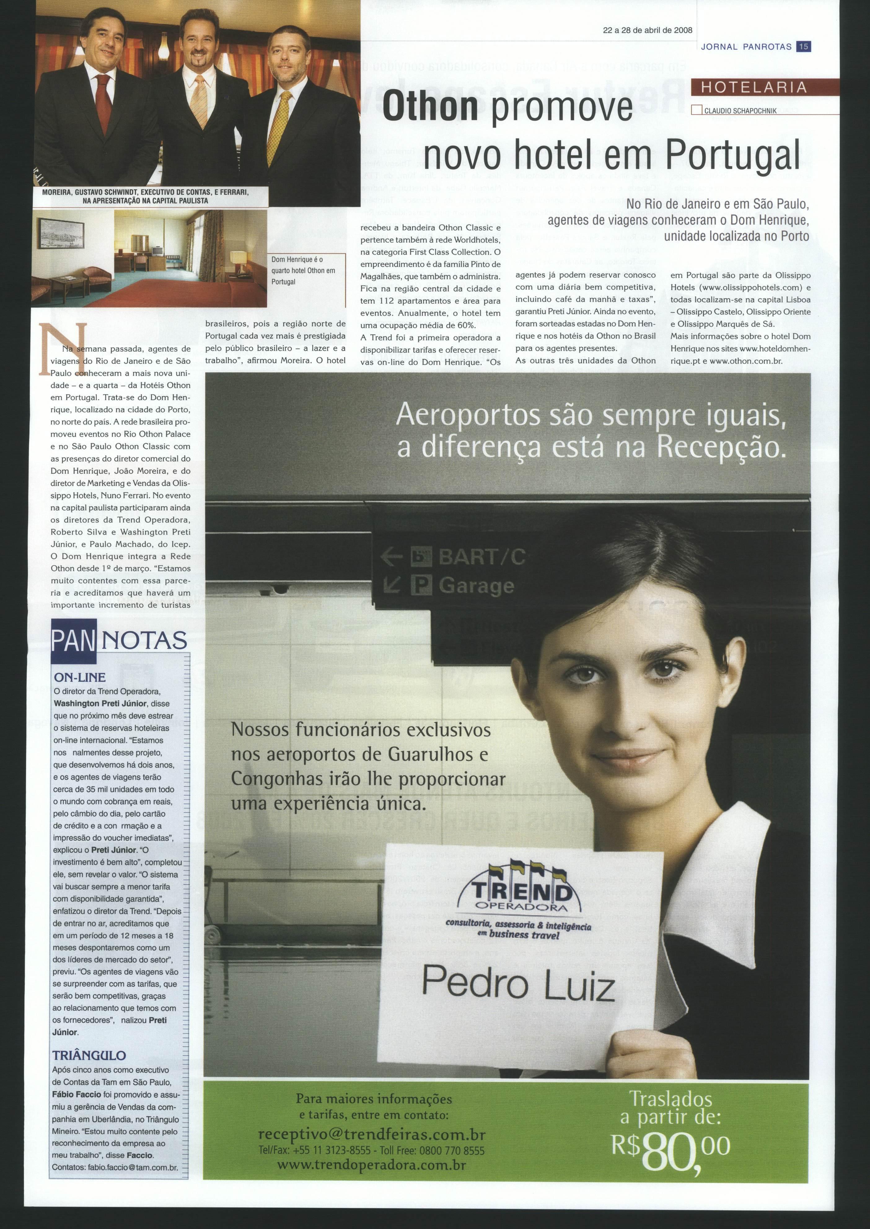 Ainda segundo ele,"as empresas que fazem charteres são as principais parceirasdaTap. Vale lembrarque as operadoras que trabalham com fretamentos geralmente fazemgran des campanhas publicitárias,oque ajudaavenderodestino",comenta o vice-presidente daTap.