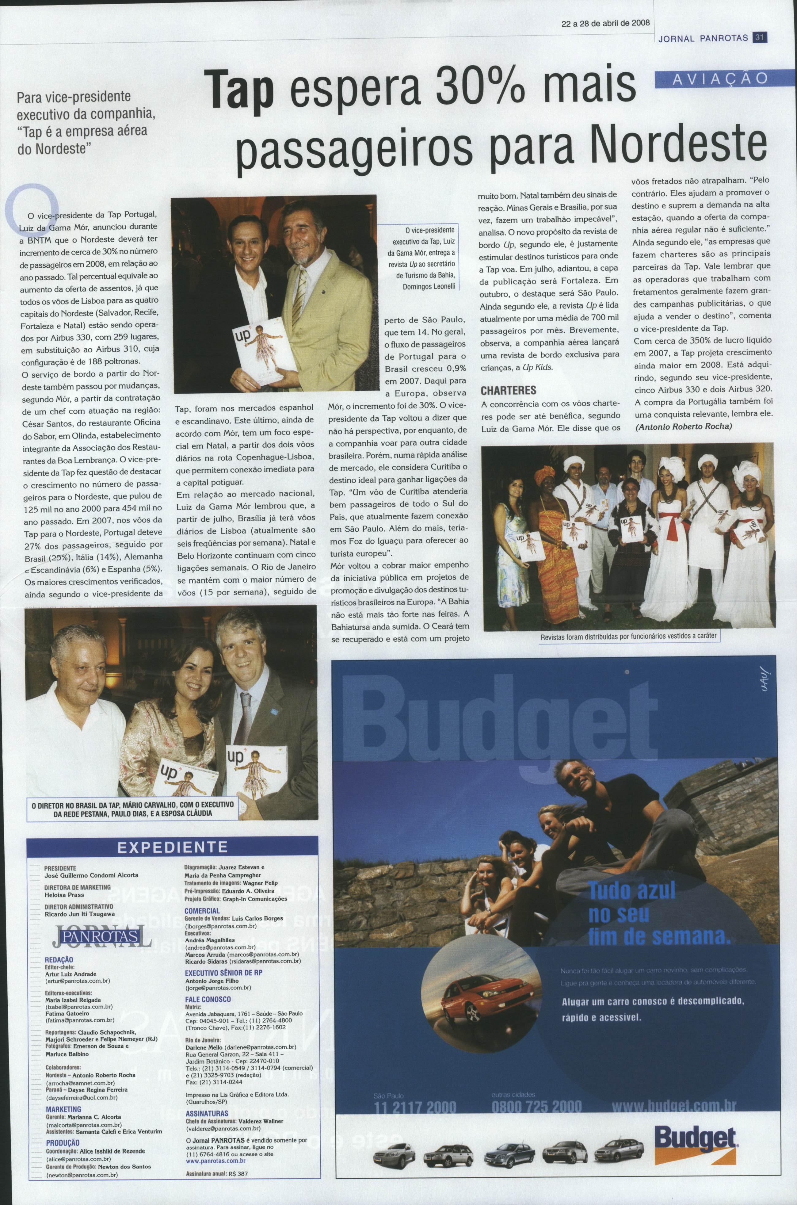 Com cerca de 350% de lucro líquido em 2007, a Tap projeta crescimento ainda maior em 2008. Está adqui rindo, segundo seu vice-presidente, cinco Airbus 330 e dois Airbus 320. AcompradaPortugálíatambémfoi umaconquistarelevante,lembraele.