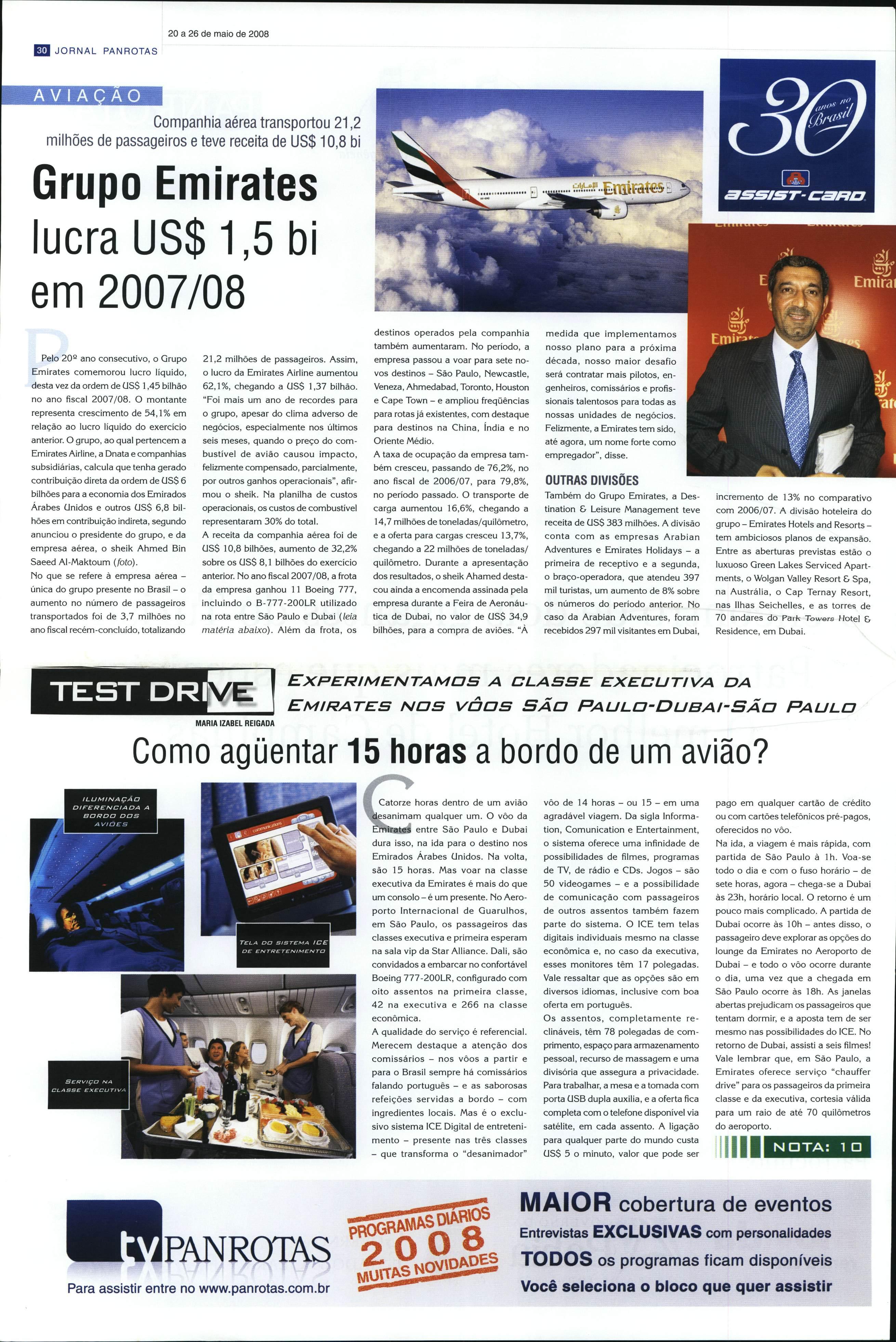 Grupo Emirates ucra US$ 1,5 bi em 2007/08