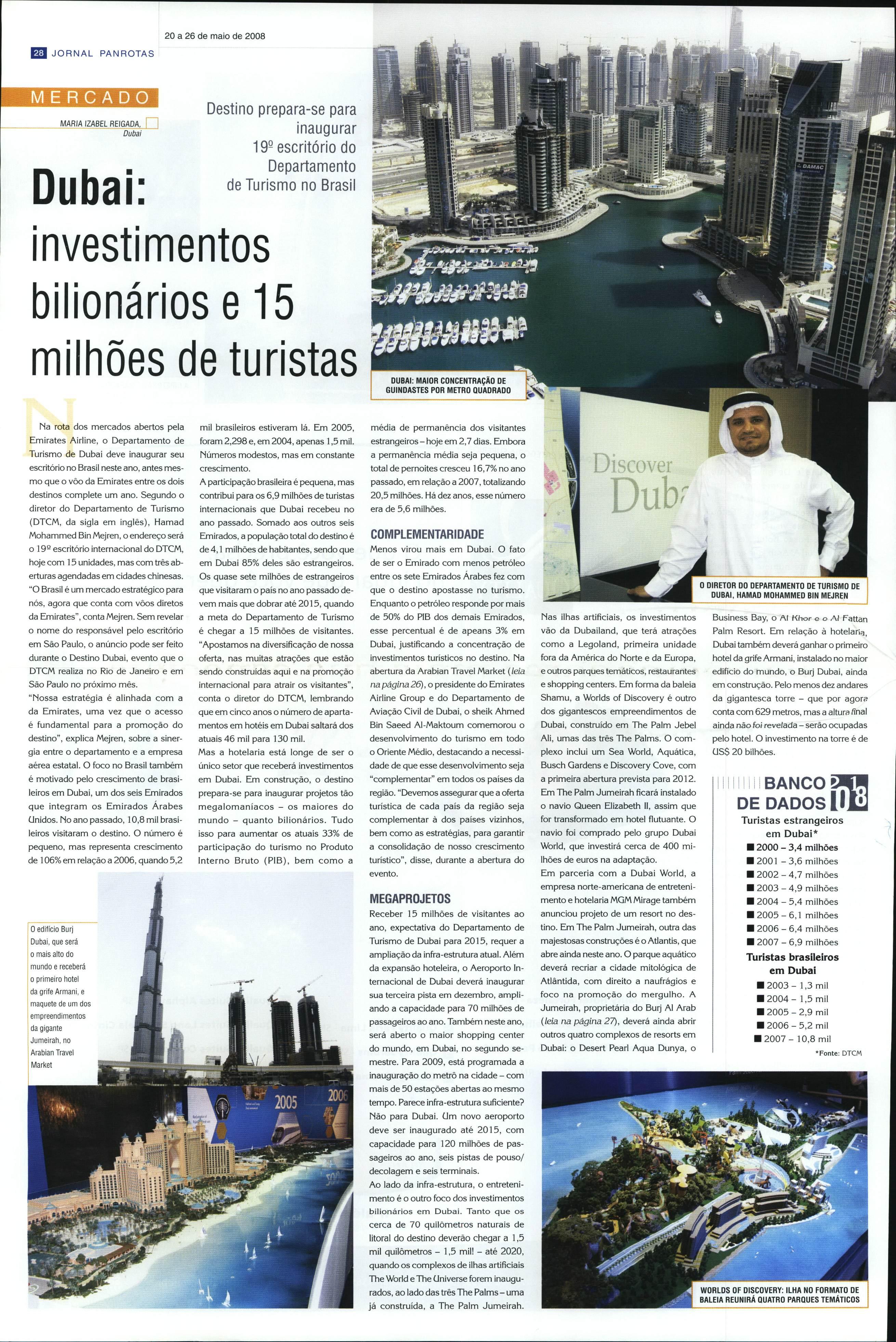 • 2007 - 6,9 milhões Turistas brasileiros em Dubai