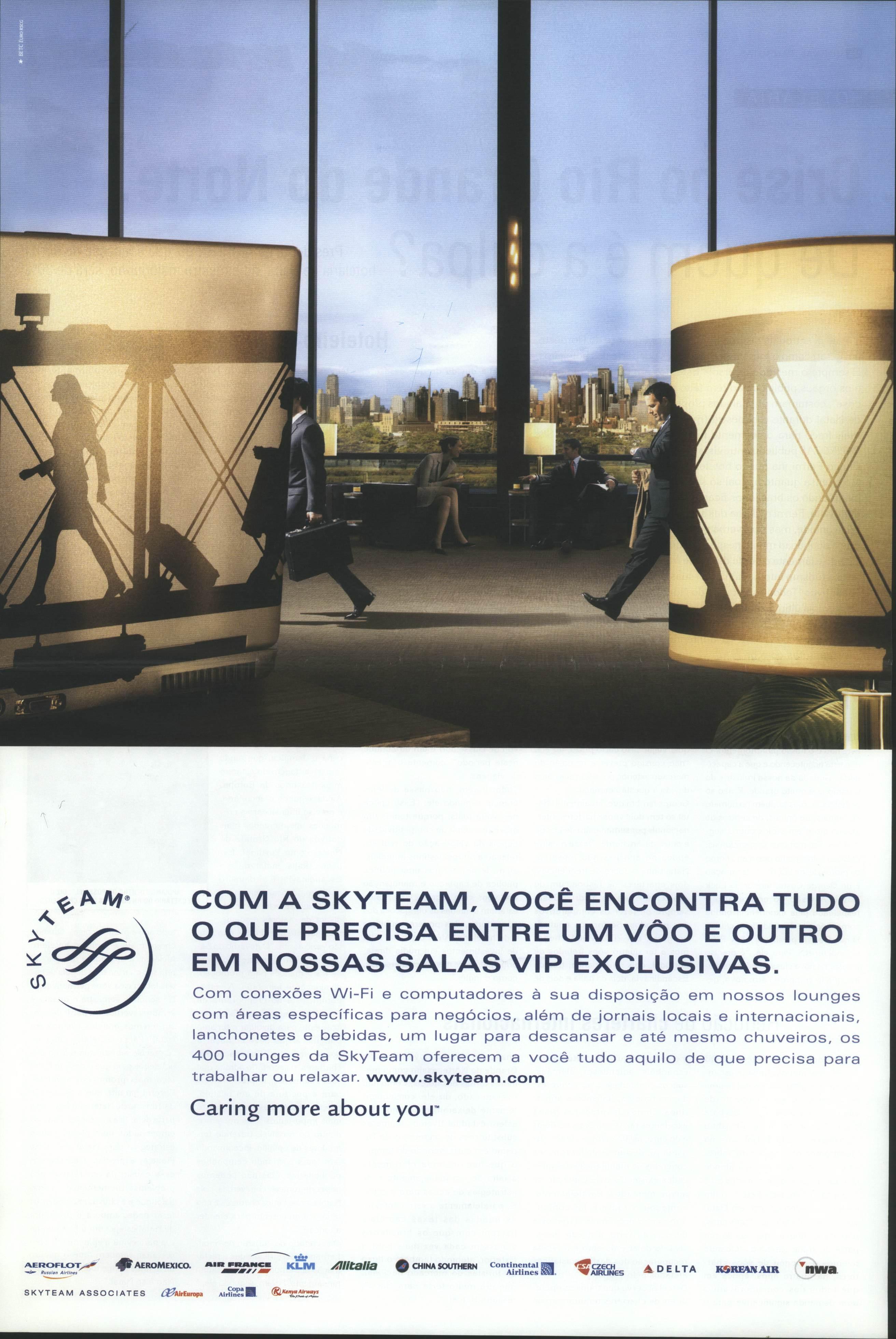 Com conexões Wi-Fi e computadores à sua disposição em nossos lounges com áreas específicas para negócios, além de jornais locais e internacionais, lanchonetes e bebidas, um lugar para descansar e até mesmo chuveiros, os 400 lounges da SkyTeam oferecem a você tudo aquilo de que precisa para trabalhar ou relaxar, www.skyteam.com