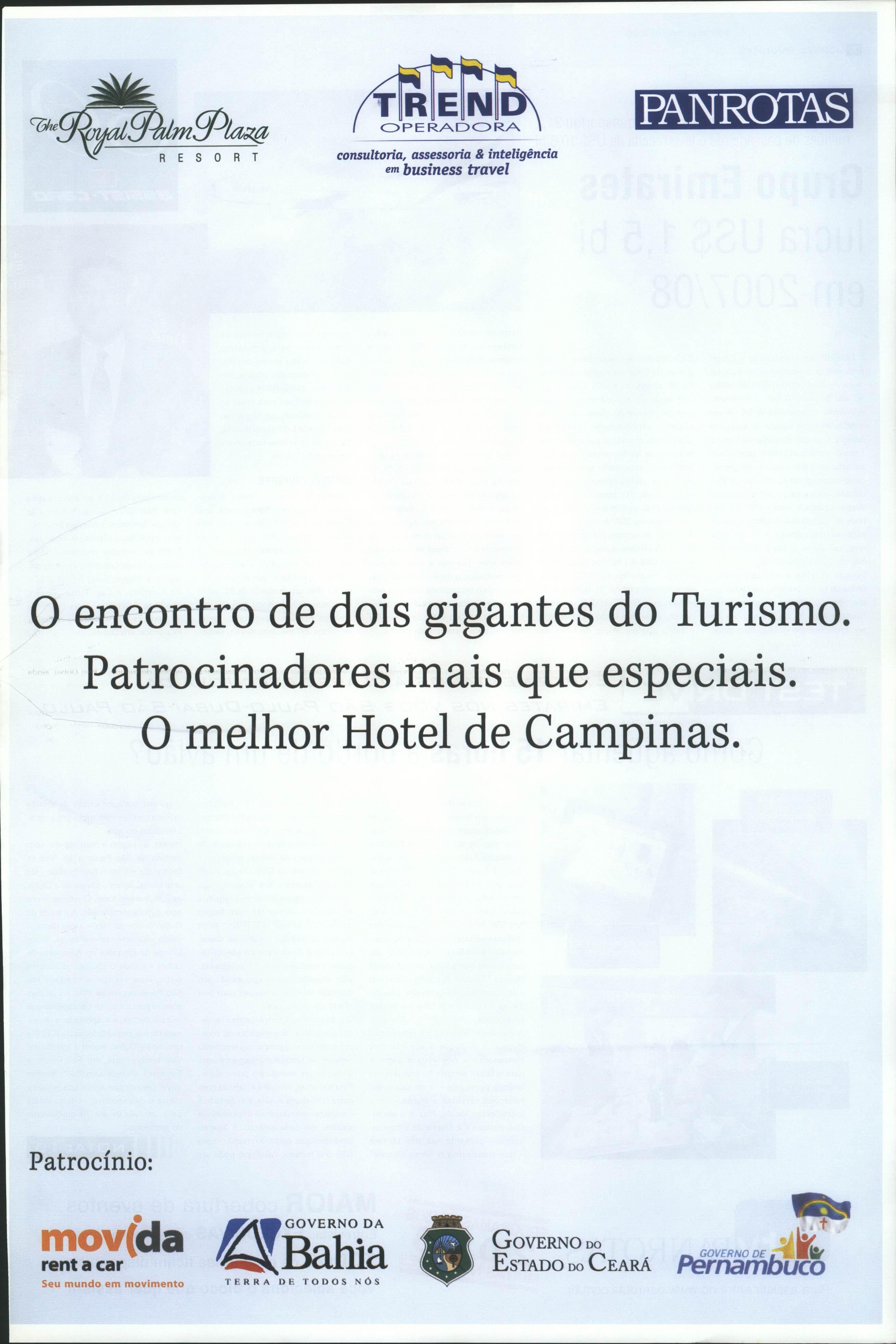 Ainda bem que não somos uma potên cia mundial eo 11 de setembro não ocorreu por aqui. Com certeza iríamos estar viajando de ônibus ou balsa. Por enquanto, seguimos com menos opções, preços mais altos eo orgulho de termos pelo menos uma empresa de bandeira chegando a Europa e aos Estados (Jnidos. A frota mais moderna em águas brasileiras. Reserve omelhorparaosseusclientes, antecipe suasvendas.
