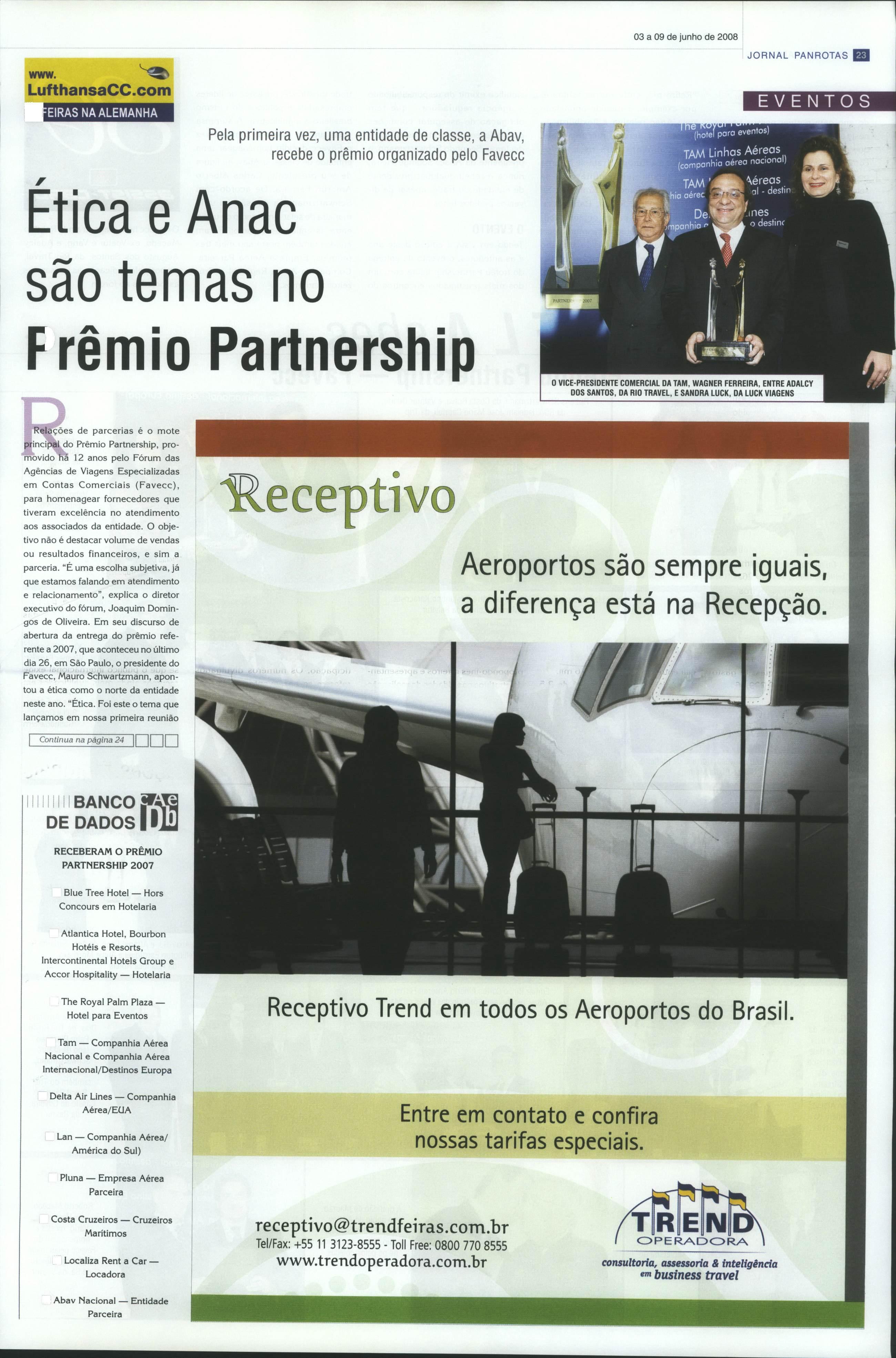 de Paulo Miranda, como executivo do ano. Bastante emocionado, agradeceu o apoio de Pauius e Patriani nesses seus seis anos de CVC. Também estiveram presentes os diretores Milton Sanches (CVC Cruzeiros), Salvador Guardino (presidente do Conselho Consultivo), Marcos Faria (diretor de TI), Cleyton Armelin (diretor comercial nacional e há22 anos naCVC),Rodolpfo Szabo (diretor comercial Cruzeiros) e João