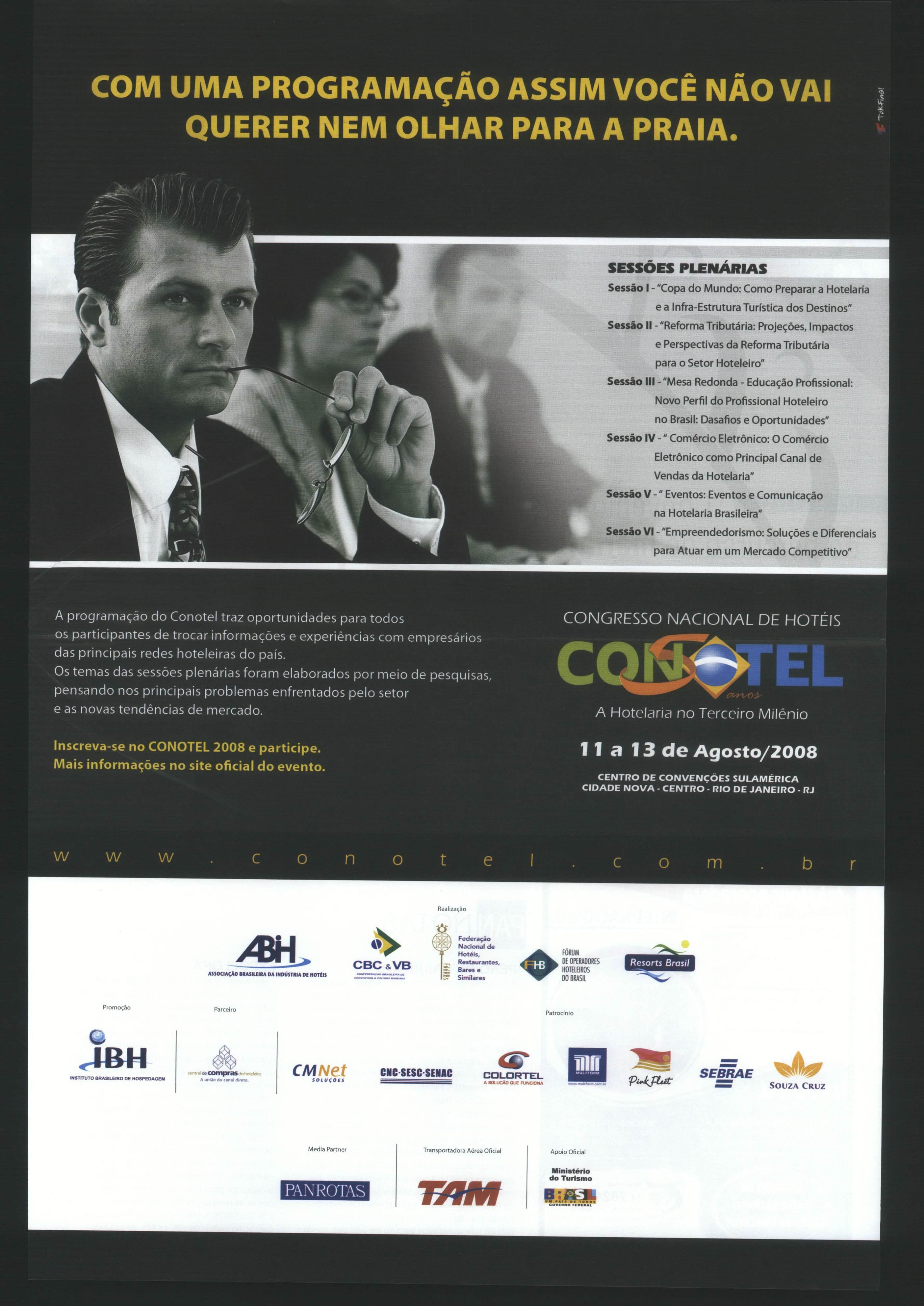 entre todos os que integramos o setor", disse. "Conseguimos uma capacidade de associação e de elaboração de projetos coletivos e, fundamentalmente, de junção de valores sobre os quais vamos cons truir nosso trabalho", completou. Em seguida, o ministro da Cultura falouaos presentes. "Éumdiade grande alegria porque lançamos o CVB", afirmou. "O organismo veio completar uma lacuna e serve para vermos como fazemos para atrair profissionalmente mais visitan tes", disse. Em seguida, assegurou que o governo da cidade pretende priorizar o turismo e, dentro dele, a atividade de congressos e con venções. Lombardi também fez um balanço de sua gestão neste ano. "Fizemos 23 intervenções com o Ente: 15 na Europa e oito na Amé rica, dentro de um plano de ma rketing estratégico. Combinamos inteligentemente mercados impor tantes em volume emissivo, como a Alemanha, e outros de maiores gastos, como os Estados (Jnidos, com mercados regionais que nos