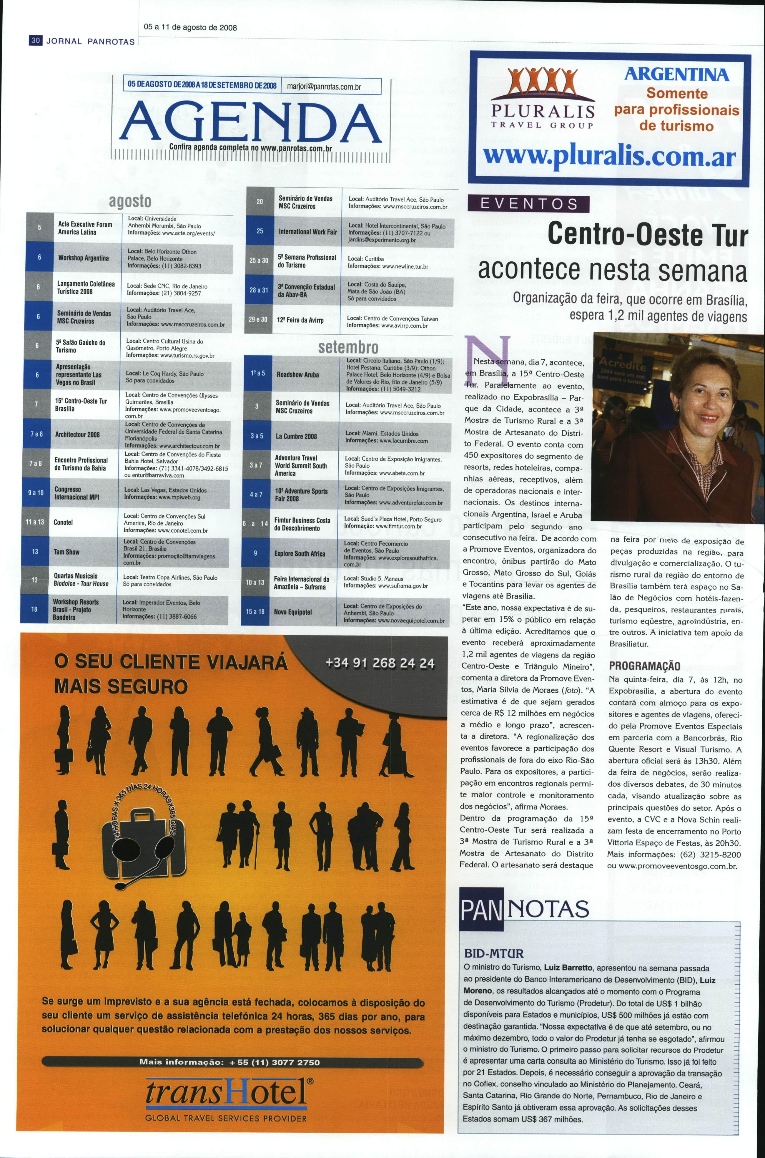 tNestS^fcana, dia 7, acontece, Brasílil a 15^ Centro-Oeste Parawtemente ao evento, realizado no Expobrasílla -Par que da Cidade, acontece a3® Mostra de Turismo Rural ea 3® Mostra de Artesanato do Distri to Federal. O evento conta com 450 expositores do segmento de resorts, redes hoteleiras, compa nhias aéreas, receptivos, além de operadoras nacionais e inter nacionais. Os destinos interna cionais Argentina, Israel e Aruba participam pelo segundo ano consecutivo na feira. De acordo com aPromoveEventos,organizadorado encontro, ônibus partirão do Mato Grosso,MatoGrossodoSul,Goiás eTocantinsparalevaros agentes de viagens até Brasília. "Este ano, nossa expectativa édesu perar enn 15%opúblicoem relação àúltimaedição.Acreditamosqueo evento receberá aproximadamente 1,2mil agentes deviagensdaregião