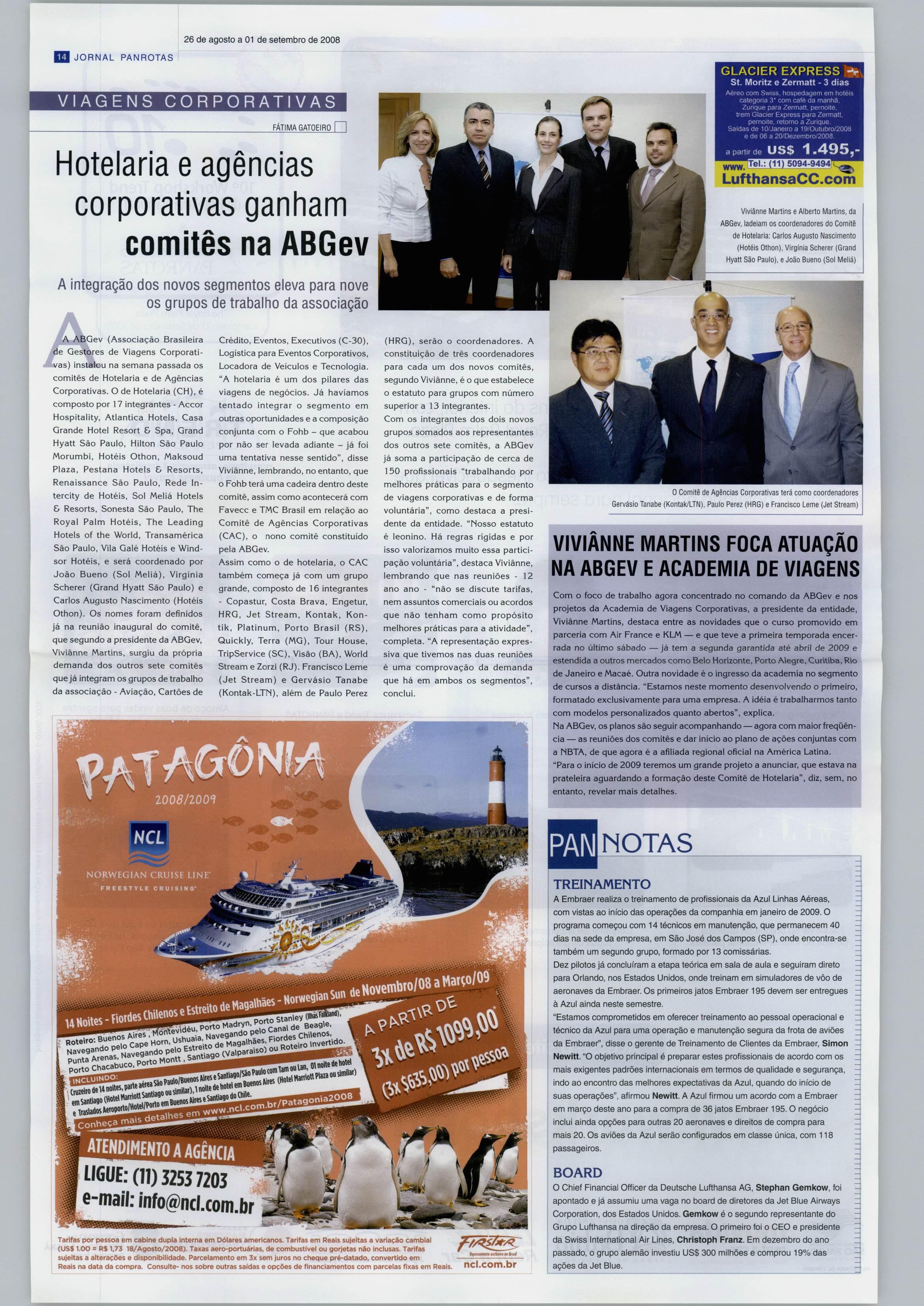 o tema "Hotelaria para Viaa Negócios -o que mudou?", a piseeSí^^te da ABGev, Viviânne Martins, confirmou sua participação como uma das palestrantes do 2- Se minário PANROTAS, que acontecerá simultaneamente ao 10® Workshop Trend de Hotelaria, no próximo dia 21 de setembro, no The Royal Palm Plaza, em Campinas. Viviânne abor dará de forma dinâmica e recheada de exemplos, as grandes mudanças nes te mercado. Os agentes de viagens terão a oportunidade de ampliar seus conhecimentos e ao mesmo tempo, obter dicas sobre como atender este exigente segmento corporativo. Viviânne reúne mais de 20 anos de experiência no mercado de viagens. Já o segundo palestrante confirma do é um expert em entretenimento elazer. Abrindo um espaço em sua agenda internacional, Claudemir