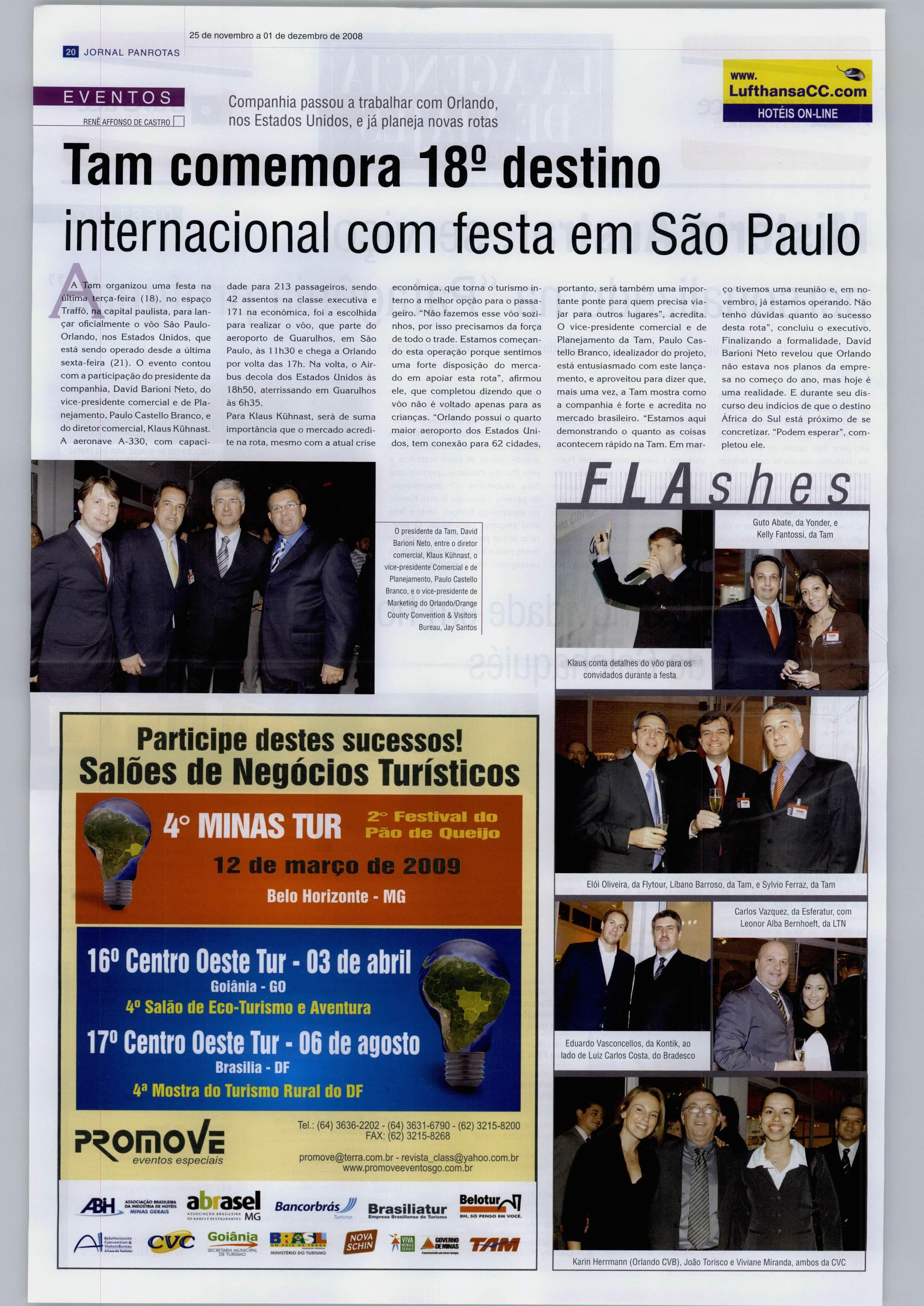 8-Tam promove festade lançamento dovôo SP-Orlando -em 18/11