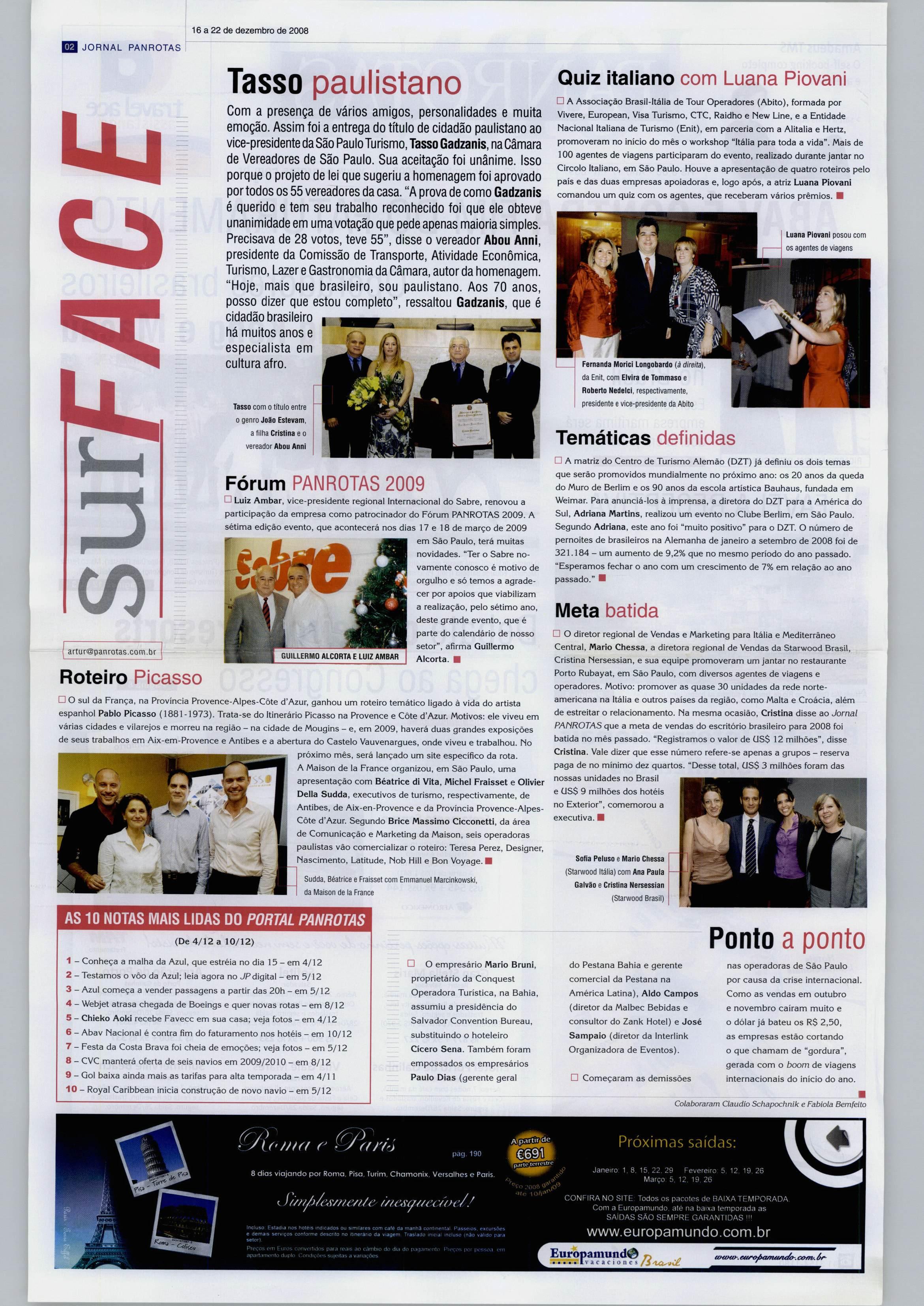 AS 10 NOTAS MAIS LIDAS DO PORTAL PANROTAS
