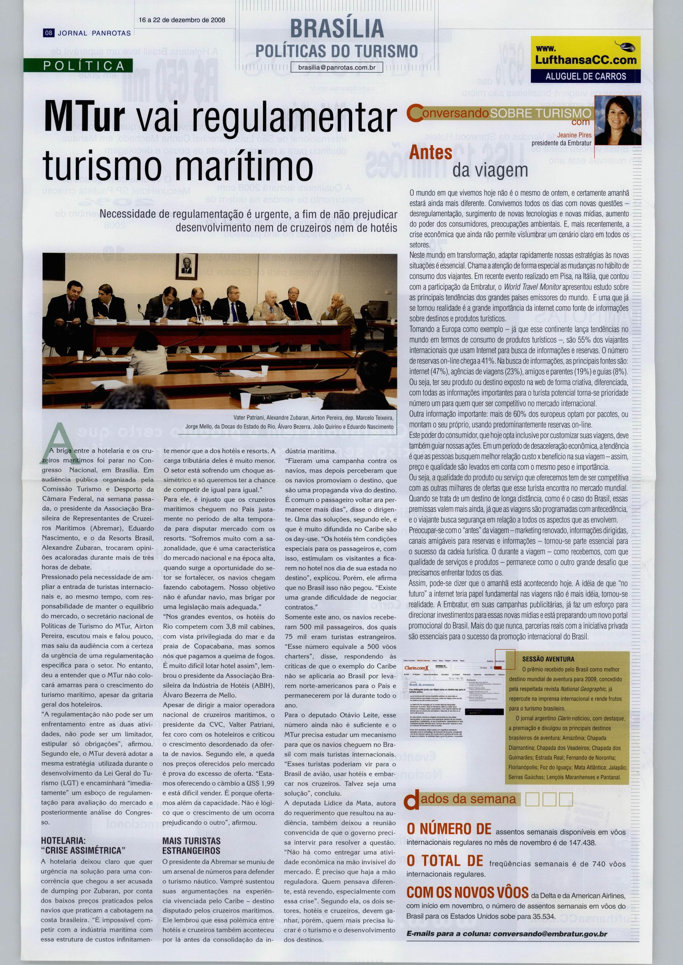 Chega a ser absurdo, também, ver mos dois segmentos tão importan tes para o turismo de qualquer país (hotelaria e transporte marítimo) entrando em atrito dessa forma.