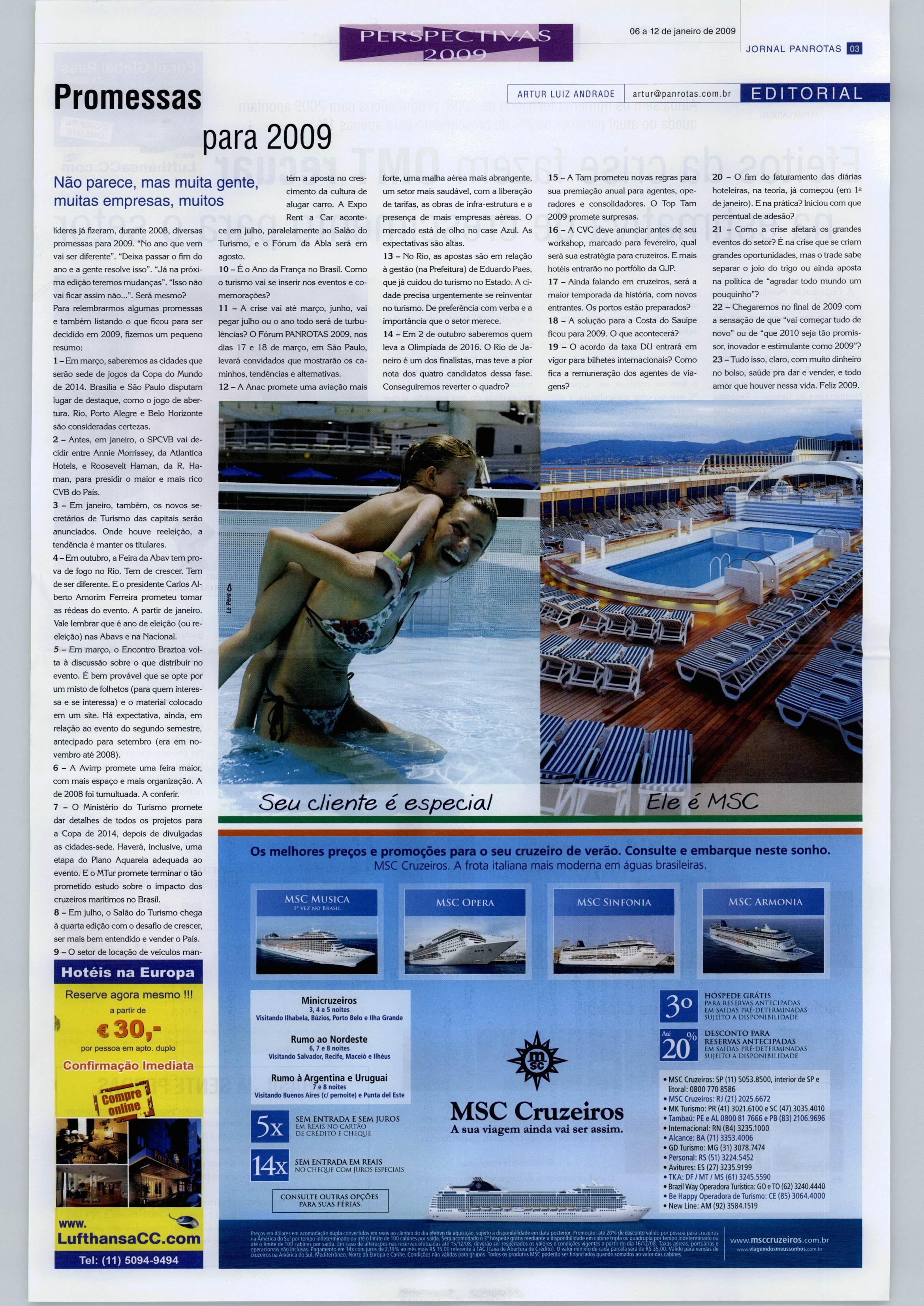 11-A crise vai até março, junho, vai pegar julho ouo ano todo será de turbu lências? O Fórum PANROTAS 2009. nos dias 17e 18 de março, em São Paulo, levará convidados que mostrarão os ca minhos, tendências e alternativas.