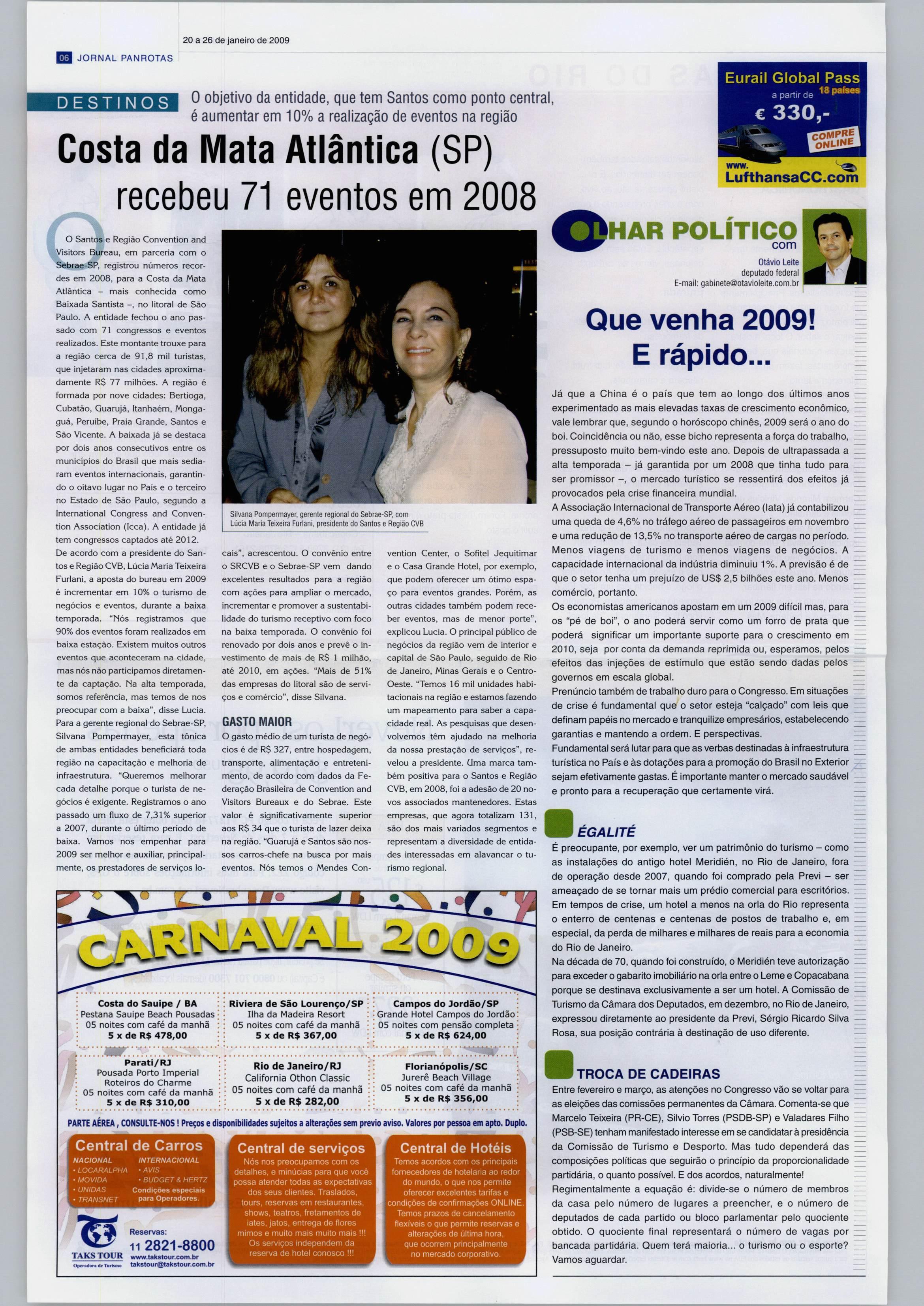 y Em2009, especialmente comos novos prefeitos, as secretarias deTu rismo poderiam termais dinheiro para investir em promoção, eventos, cap tação de divisas... Mão dá para serem apenas pastas que estão na moda e têm de abrigar afilhados políticos.