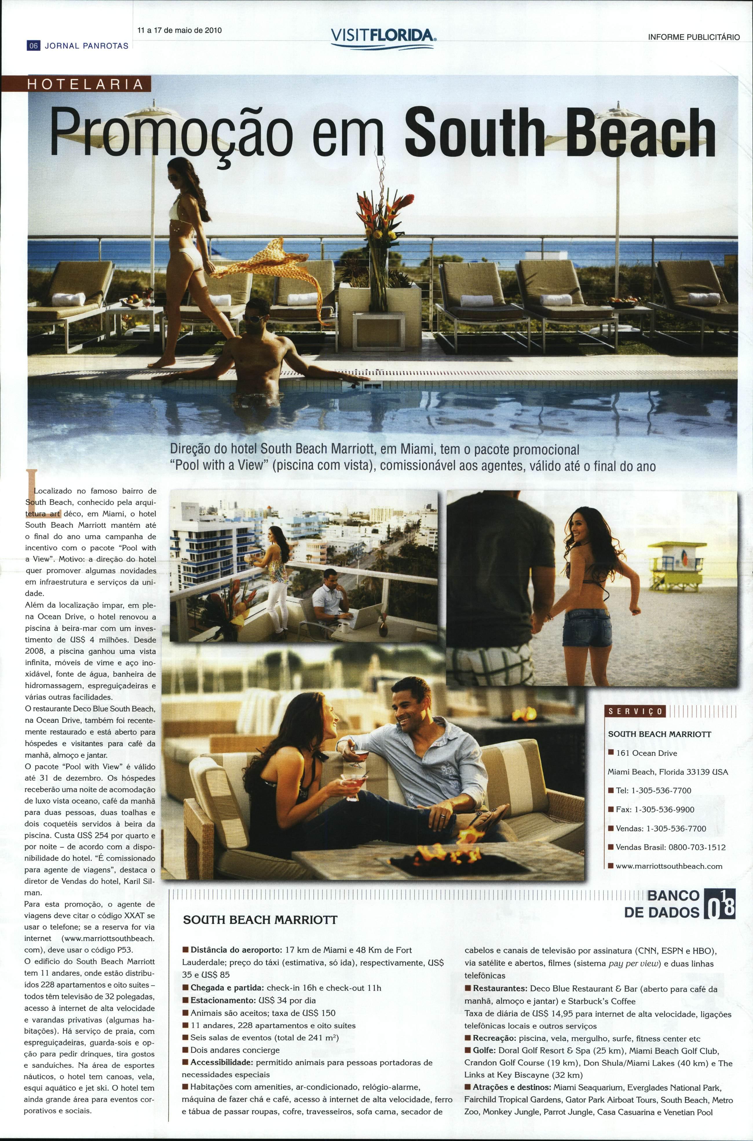 Direção do hotel South Beach Marriott, em IVIiami, temo pacote promocional "Pool with a View" (piscina com vista), comissionável aosagentes, válido atéo final doano